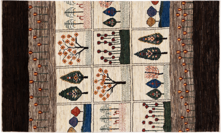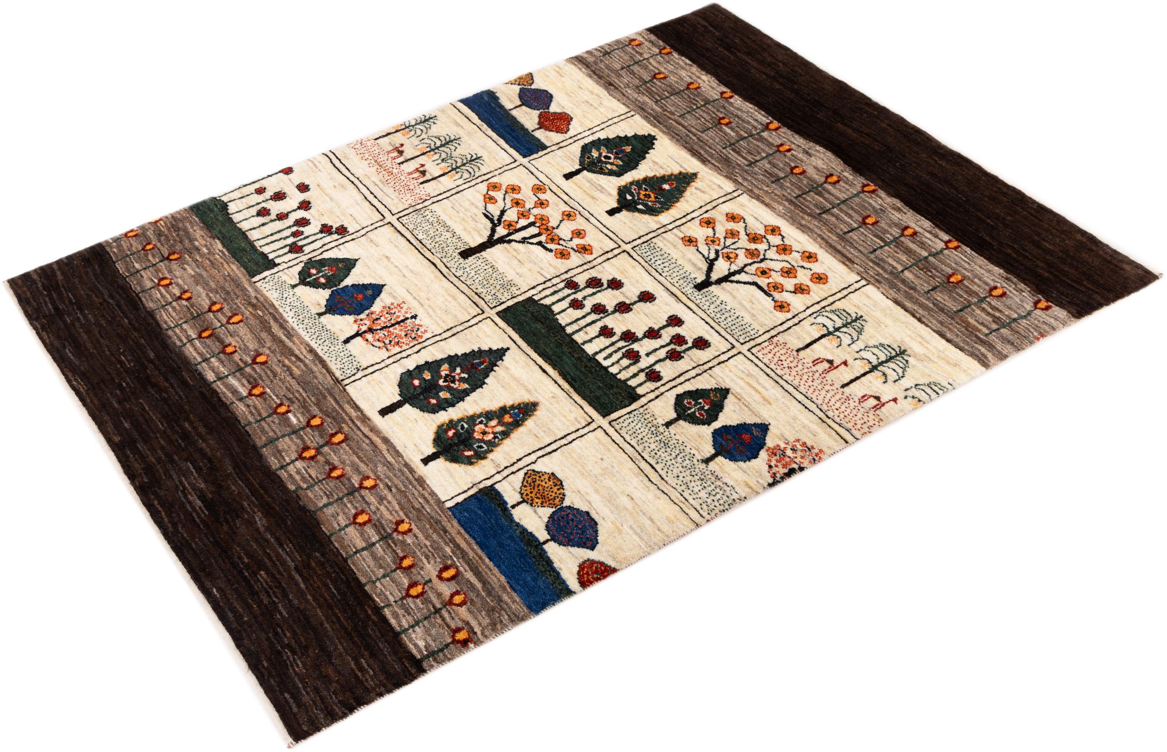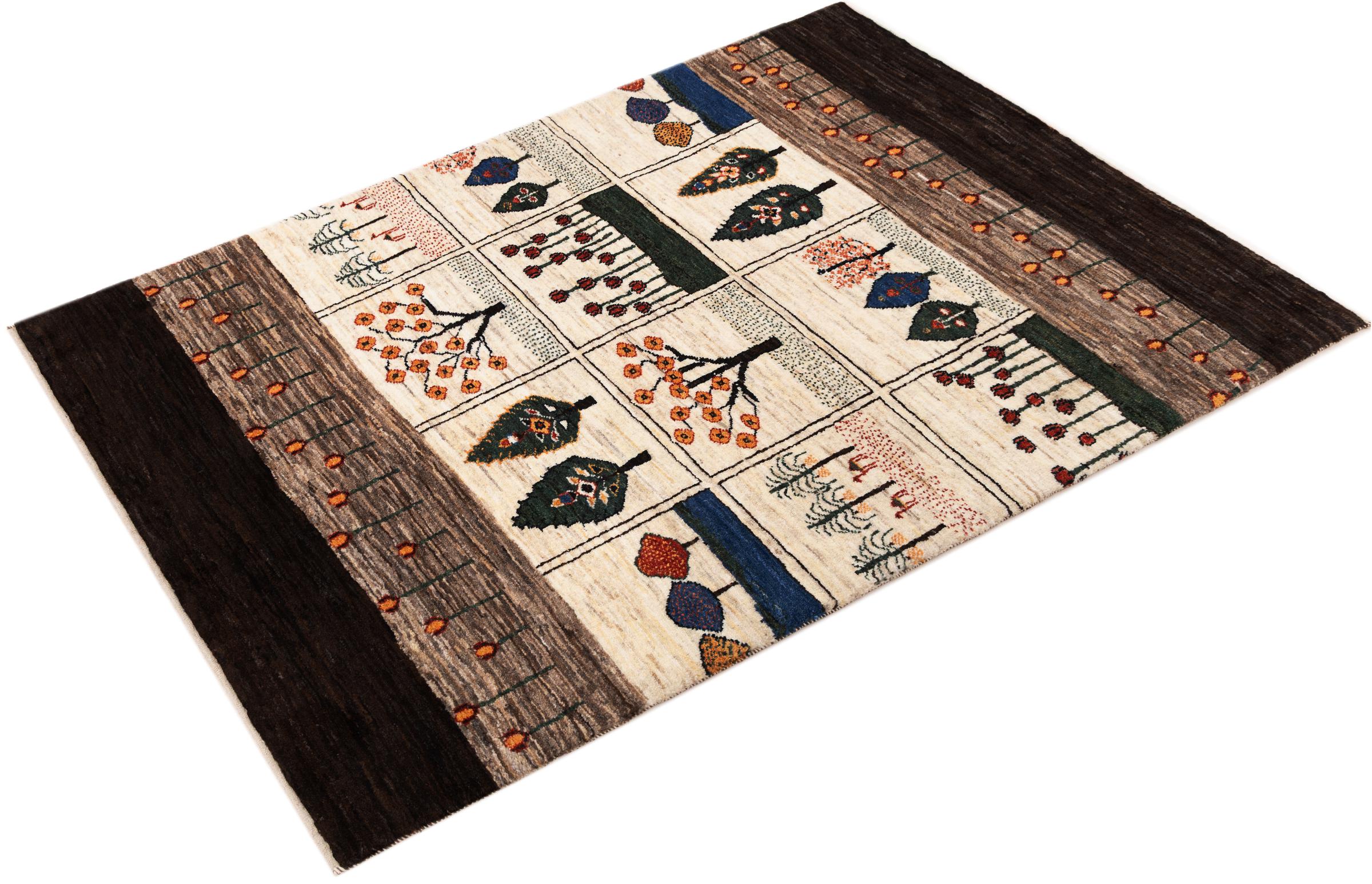 Este belo tapete é um Gabbeh persa e por isso pertence aos tapetes Gabbeh da mais alta qualidade. Os tapetes são atados por nómadas ou semi-nómadas no Irão, de acordo com o artesanato tradicional. Os simples motivos e padrões são, na sua maioria, inspirados pelo ambiente imediato dos nómadas. Por exemplo, camelos, árvores ou arbustos podem ser encontrados nos tapetes tradicionais. Os tapetes Gabbeh persa são feitos de lã proveniente de rebanhos de ovinos criados localmente. Por conseguinte, a lã ainda é, na sua maioria, fiada à mão. Assim, cada um destes tapetes orientais corporiza um carácter único de cultura secular.