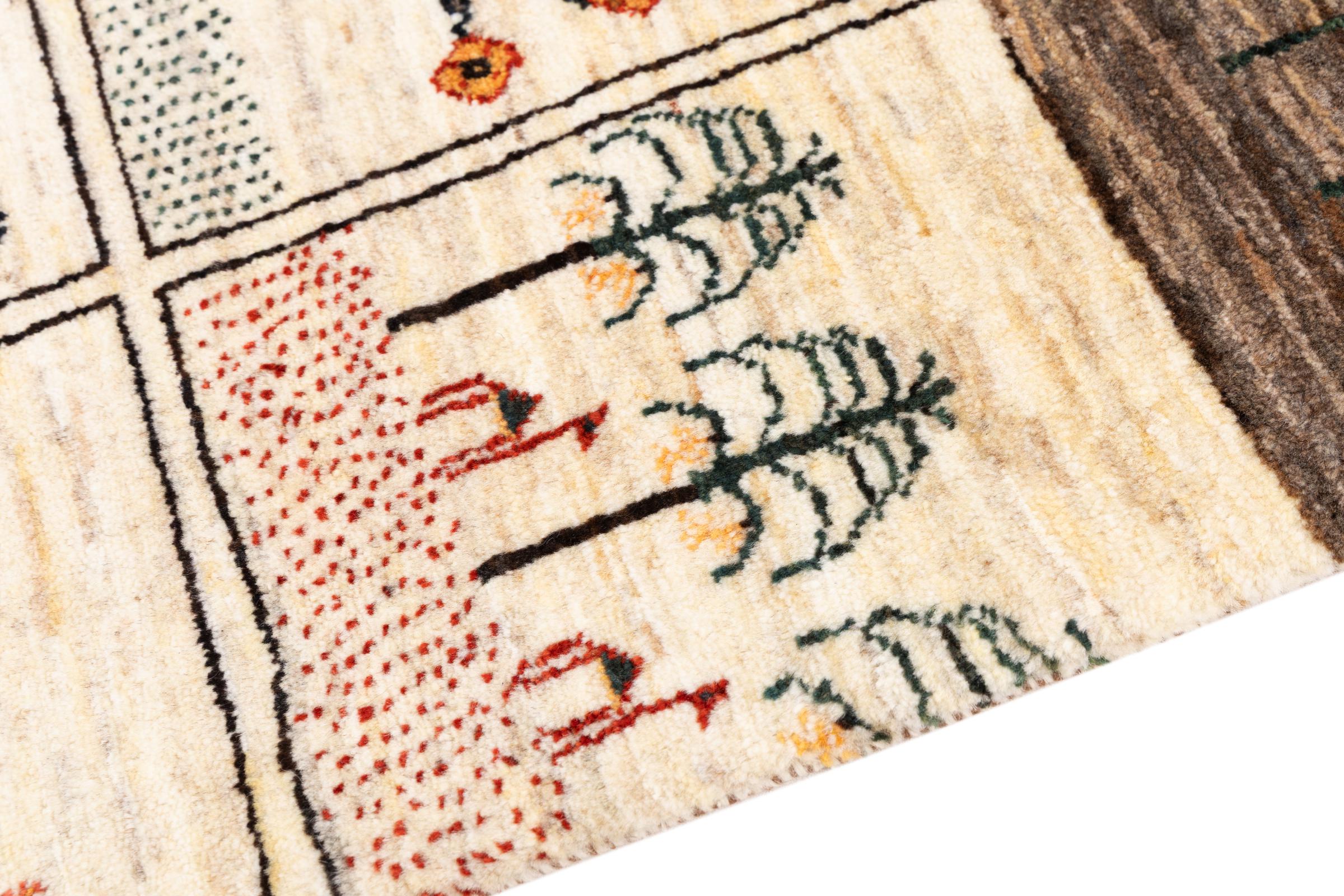Este Gabbeh Kashkuli foi feito à mão por semi-nómadas no sudoeste do Irão. Graças à tradição persa, oferece uma excelente qualidade. Os motivos deste tipo são geralmente mantidos simples e não parecem demasiado sobrecarregados.
