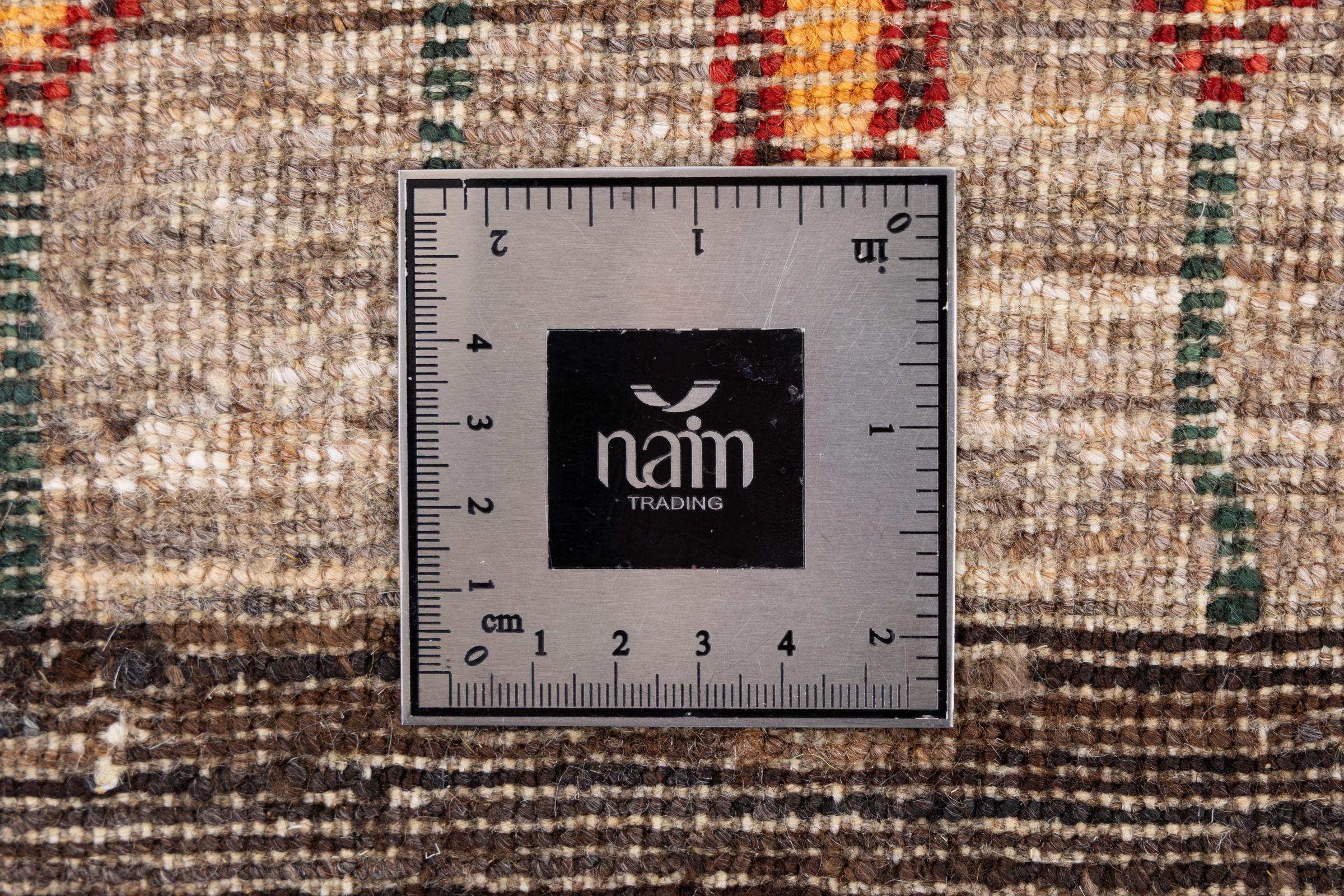Este tapete é feito de lã de ovelha fiada à mão, da mais alta qualidade. Especialmente no Irão (antiga Pérsia), Afeganistão e Paquistão, a lã ainda é fiada à mão antes do início do nó do tapete. A lã tem provado ser um material natural e extremamente resistente ao longo dos séculos. Entre outras coisas, tem propriedades repelentes de impurezas e isolantes térmicos. Ao mesmo tempo, a lã é incomparavelmente macia e tem um brilho natural.