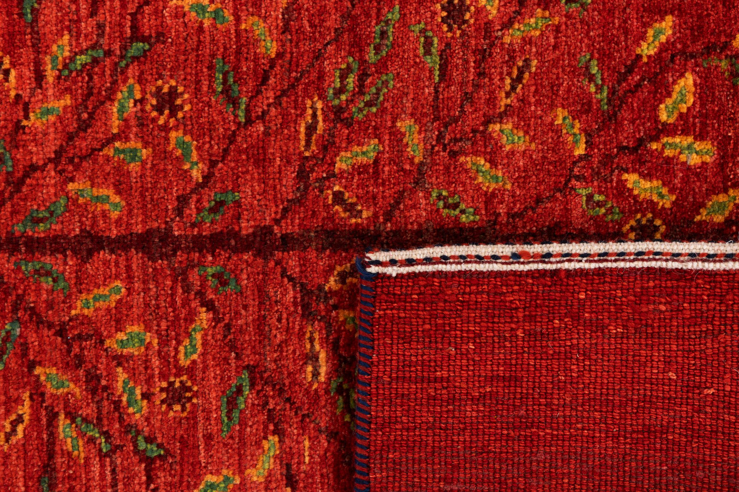 Este tapete é feito de lã de ovelha fiada à mão, da mais alta qualidade. Especialmente no Irão (antiga Pérsia), Afeganistão e Paquistão, a lã ainda é fiada à mão antes do início do nó do tapete. A lã tem provado ser um material natural e extremamente resistente ao longo dos séculos. Entre outras coisas, tem propriedades repelentes de impurezas e isolantes térmicos. Ao mesmo tempo, a lã é incomparavelmente macia e tem um brilho natural.