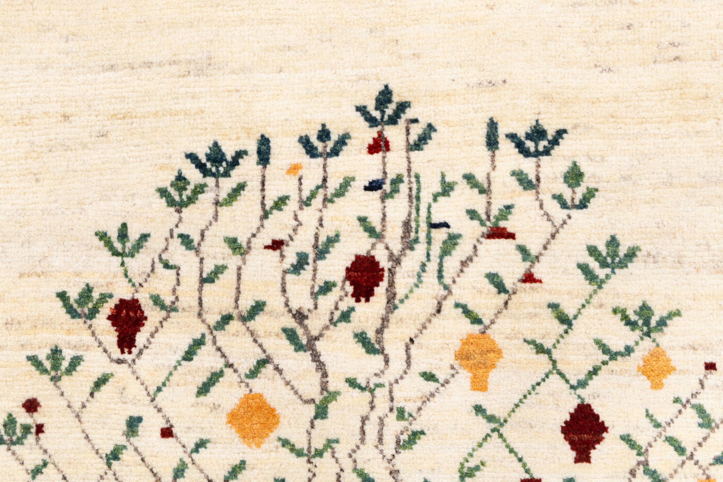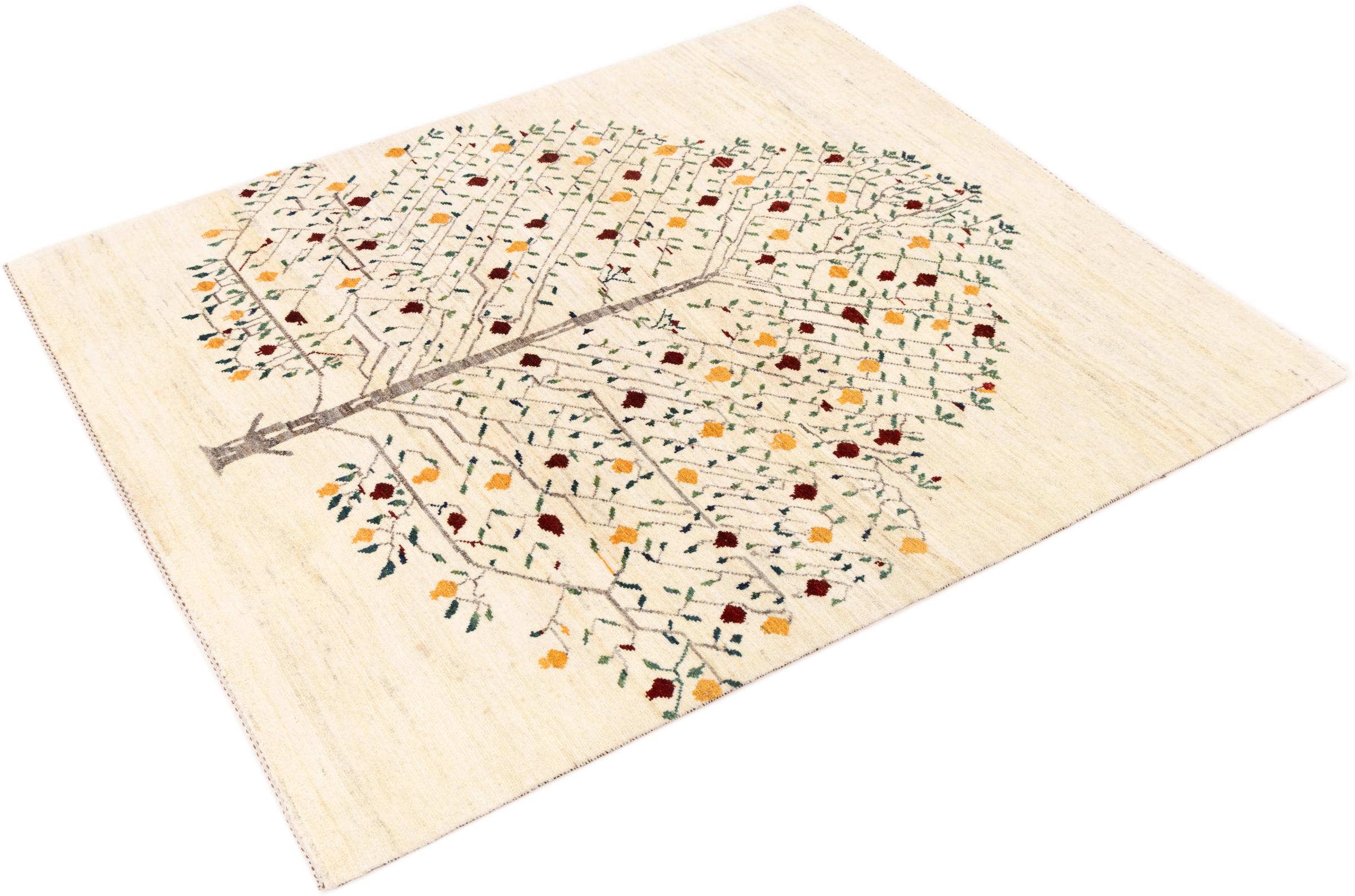 Este belo tapete é um Gabbeh persa e por isso pertence aos tapetes Gabbeh da mais alta qualidade. Os tapetes são atados por nómadas ou semi-nómadas no Irão, de acordo com o artesanato tradicional. Os simples motivos e padrões são, na sua maioria, inspirados pelo ambiente imediato dos nómadas. Por exemplo, camelos, árvores ou arbustos podem ser encontrados nos tapetes tradicionais. Os tapetes Gabbeh persa são feitos de lã proveniente de rebanhos de ovinos criados localmente. Por conseguinte, a lã ainda é, na sua maioria, fiada à mão. Assim, cada um destes tapetes orientais corporiza um carácter único de cultura secular.