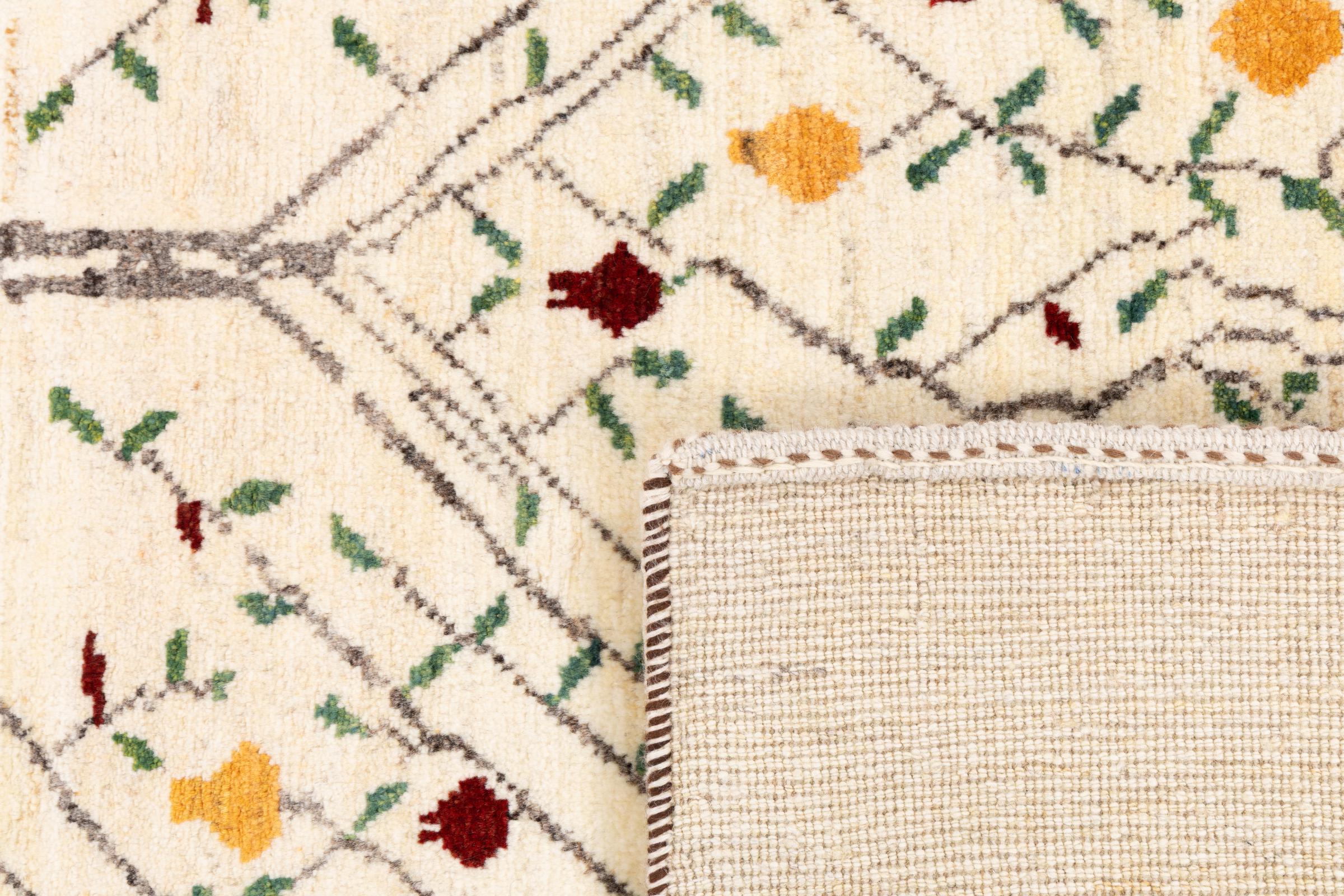 Este tapete é feito de lã de ovelha fiada à mão, da mais alta qualidade. Especialmente no Irão (antiga Pérsia), Afeganistão e Paquistão, a lã ainda é fiada à mão antes do início do nó do tapete. A lã tem provado ser um material natural e extremamente resistente ao longo dos séculos. Entre outras coisas, tem propriedades repelentes de impurezas e isolantes térmicos. Ao mesmo tempo, a lã é incomparavelmente macia e tem um brilho natural.