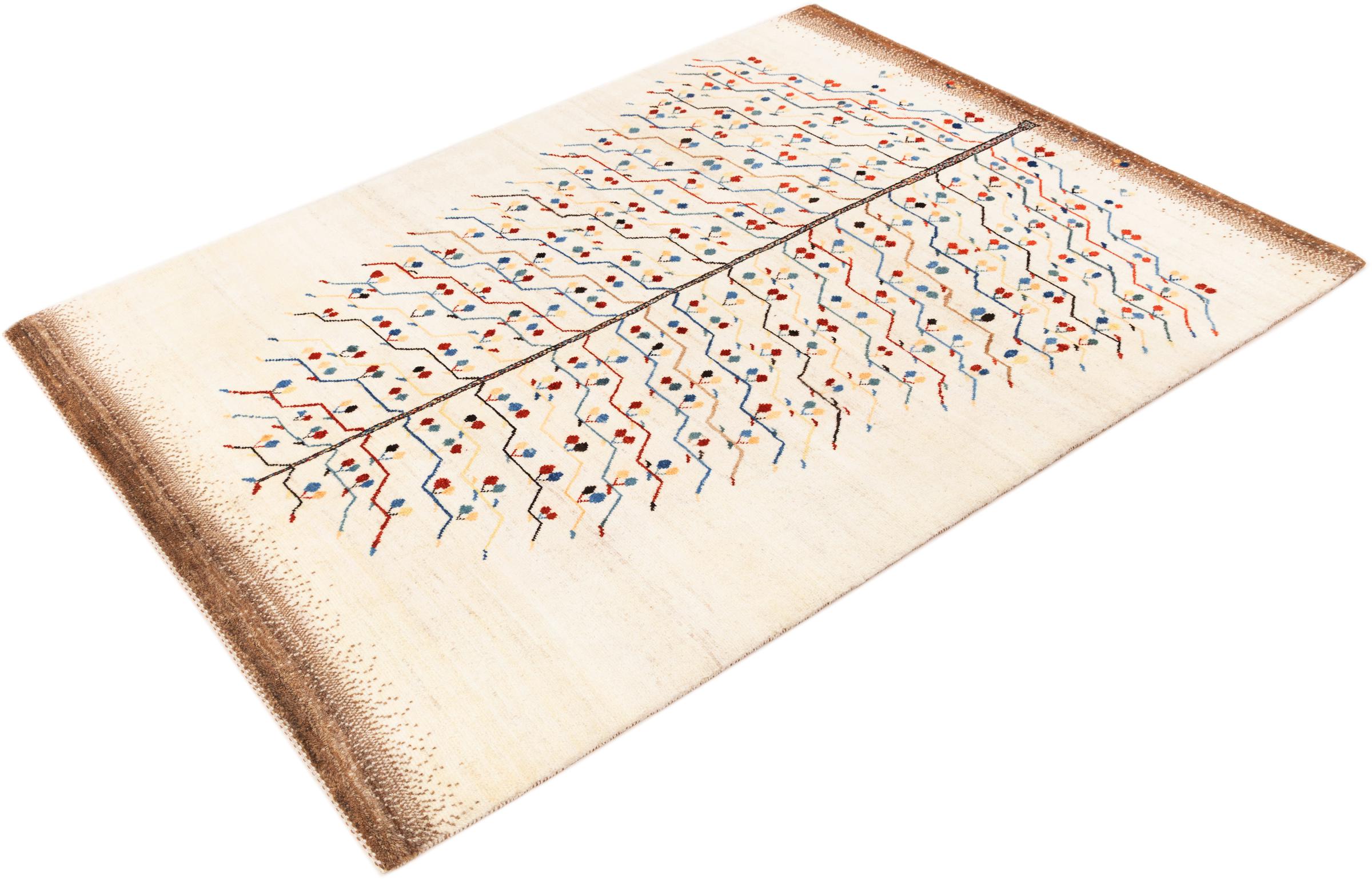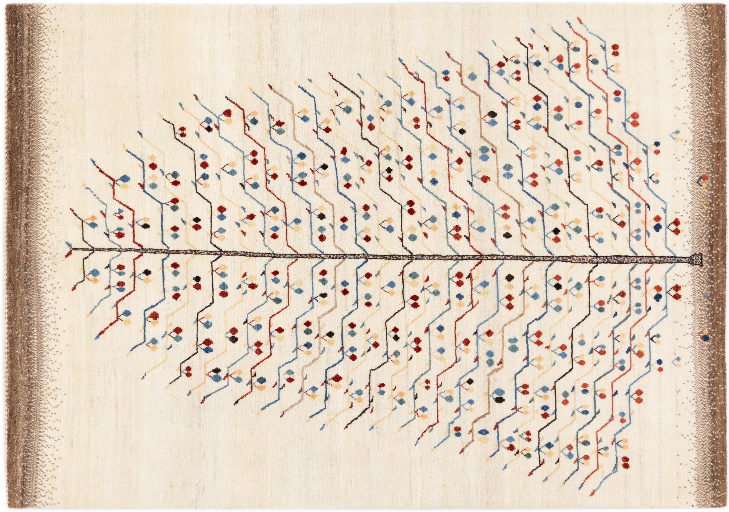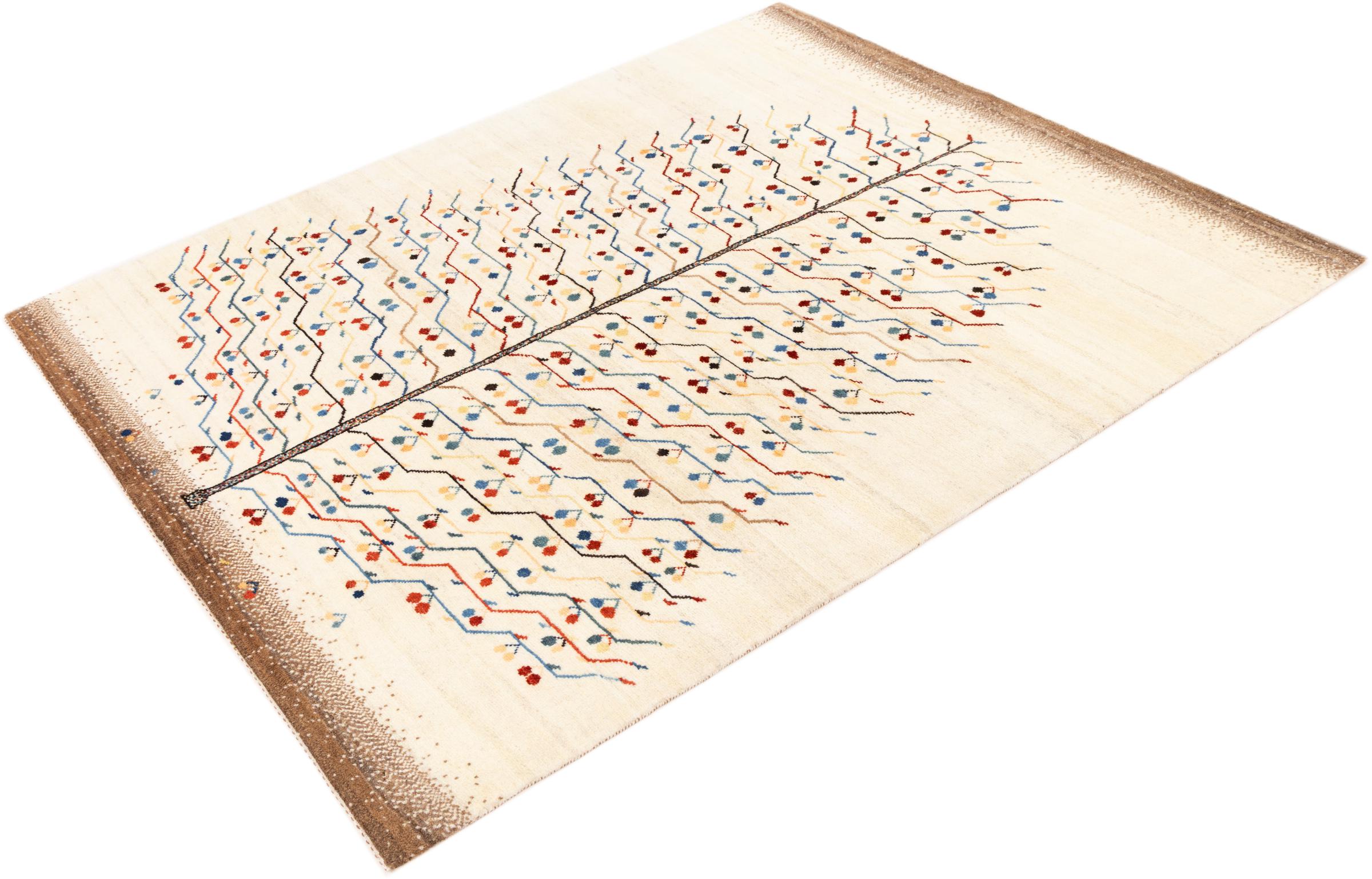 Este belo tapete é um Gabbeh persa e por isso pertence aos tapetes Gabbeh da mais alta qualidade. Os tapetes são atados por nómadas ou semi-nómadas no Irão, de acordo com o artesanato tradicional. Os simples motivos e padrões são, na sua maioria, inspirados pelo ambiente imediato dos nómadas. Por exemplo, camelos, árvores ou arbustos podem ser encontrados nos tapetes tradicionais. Os tapetes Gabbeh persa são feitos de lã proveniente de rebanhos de ovinos criados localmente. Por conseguinte, a lã ainda é, na sua maioria, fiada à mão. Assim, cada um destes tapetes orientais corporiza um carácter único de cultura secular.