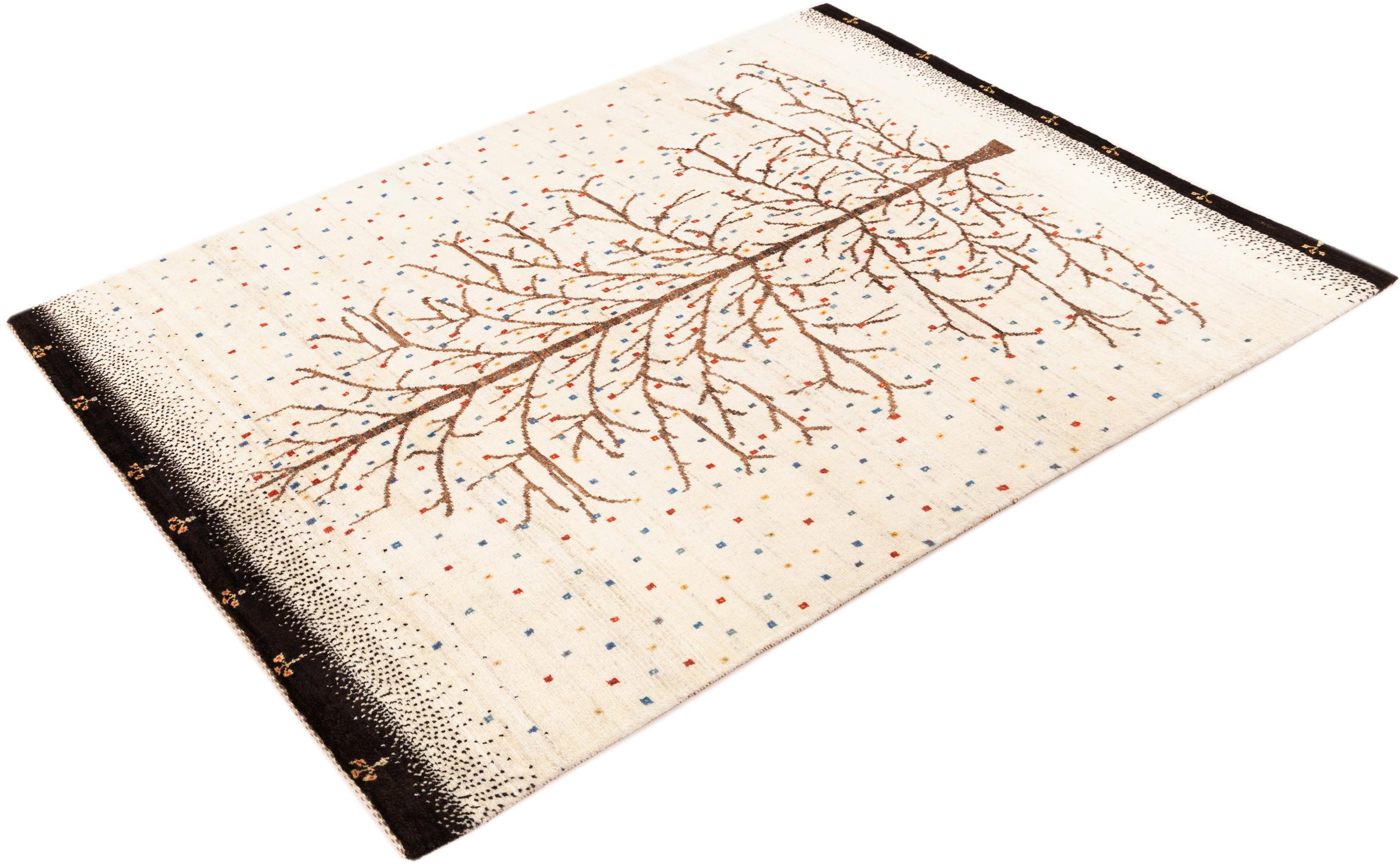 Este belo tapete é um Gabbeh persa e por isso pertence aos tapetes Gabbeh da mais alta qualidade. Os tapetes são atados por nómadas ou semi-nómadas no Irão, de acordo com o artesanato tradicional. Os simples motivos e padrões são, na sua maioria, inspirados pelo ambiente imediato dos nómadas. Por exemplo, camelos, árvores ou arbustos podem ser encontrados nos tapetes tradicionais. Os tapetes Gabbeh persa são feitos de lã proveniente de rebanhos de ovinos criados localmente. Por conseguinte, a lã ainda é, na sua maioria, fiada à mão. Assim, cada um destes tapetes orientais corporiza um carácter único de cultura secular.
