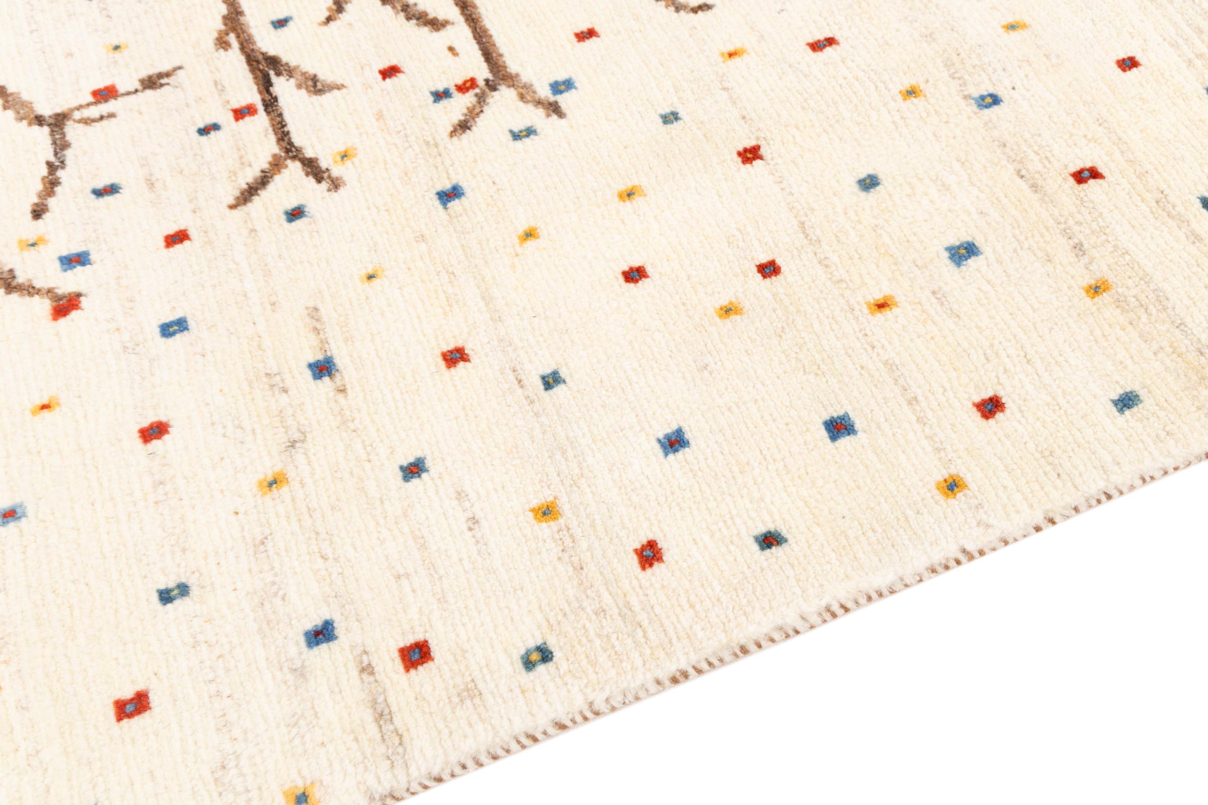 Este Gabbeh Kashkuli foi feito à mão por semi-nómadas no sudoeste do Irão. Graças à tradição persa, oferece uma excelente qualidade. Os motivos deste tipo são geralmente mantidos simples e não parecem demasiado sobrecarregados.