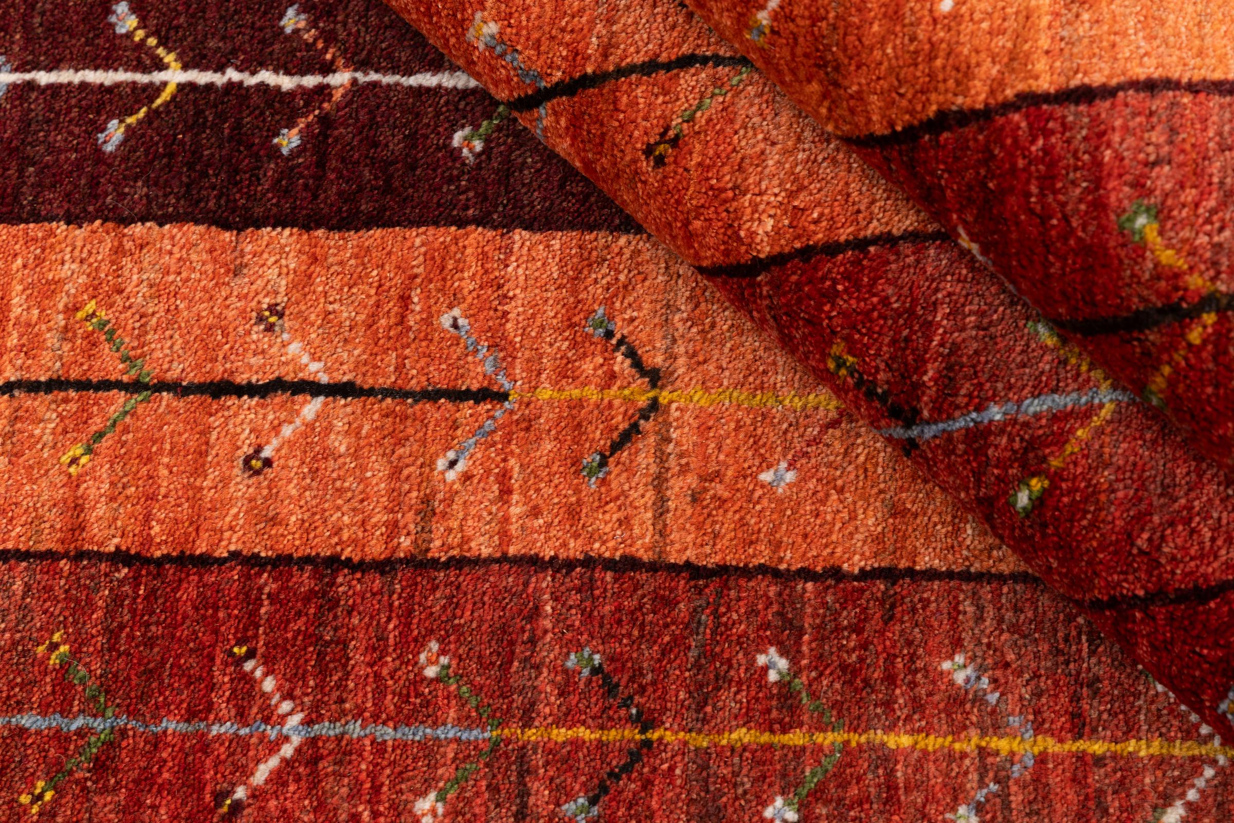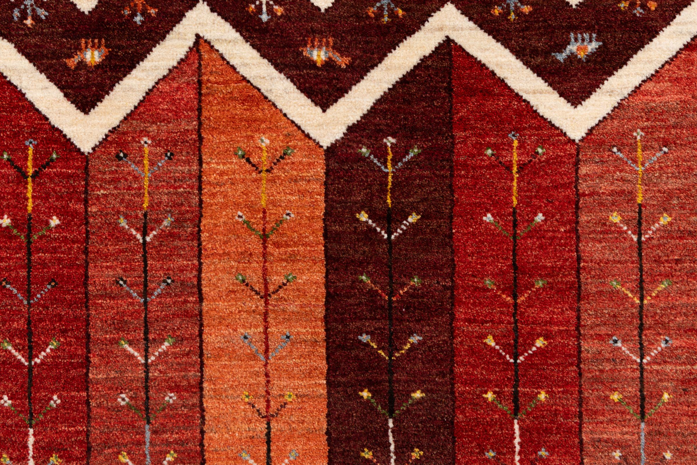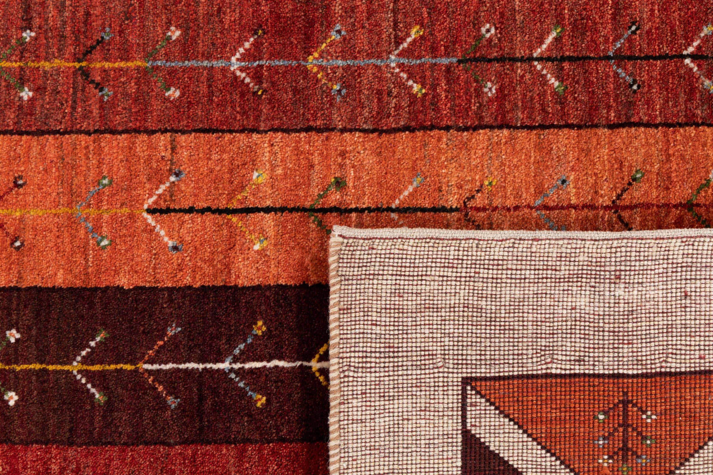 Este Gabbeh Kashkuli foi feito à mão por semi-nómadas no sudoeste do Irão. Graças à tradição persa, oferece uma excelente qualidade. Os motivos deste tipo são geralmente mantidos simples e não parecem demasiado sobrecarregados.