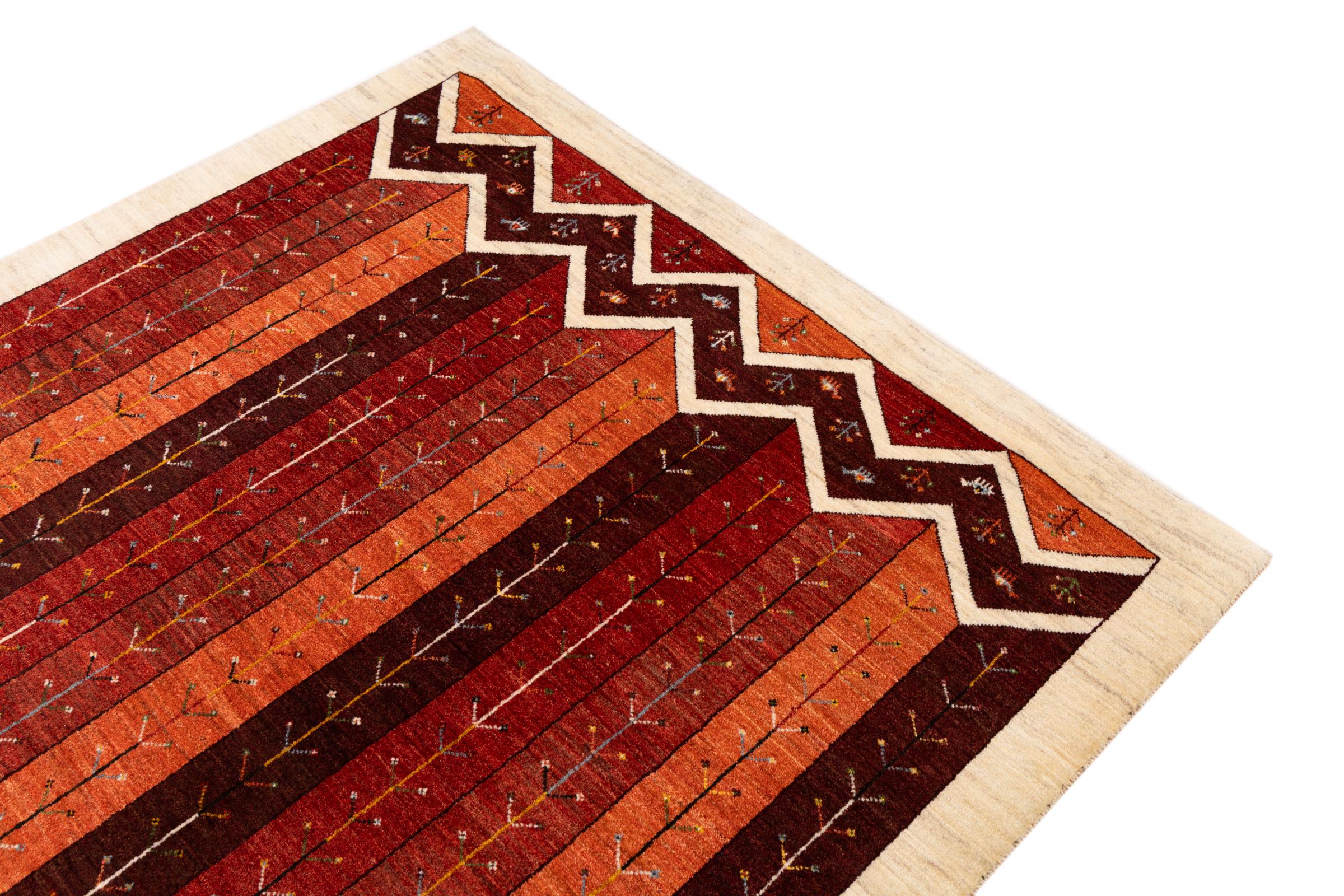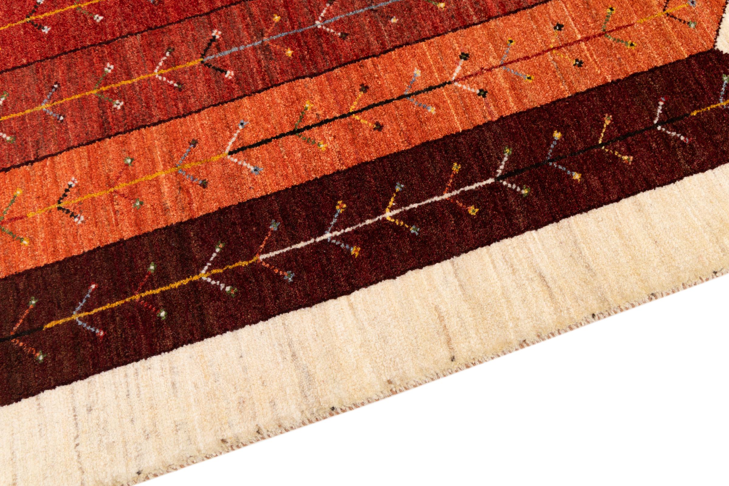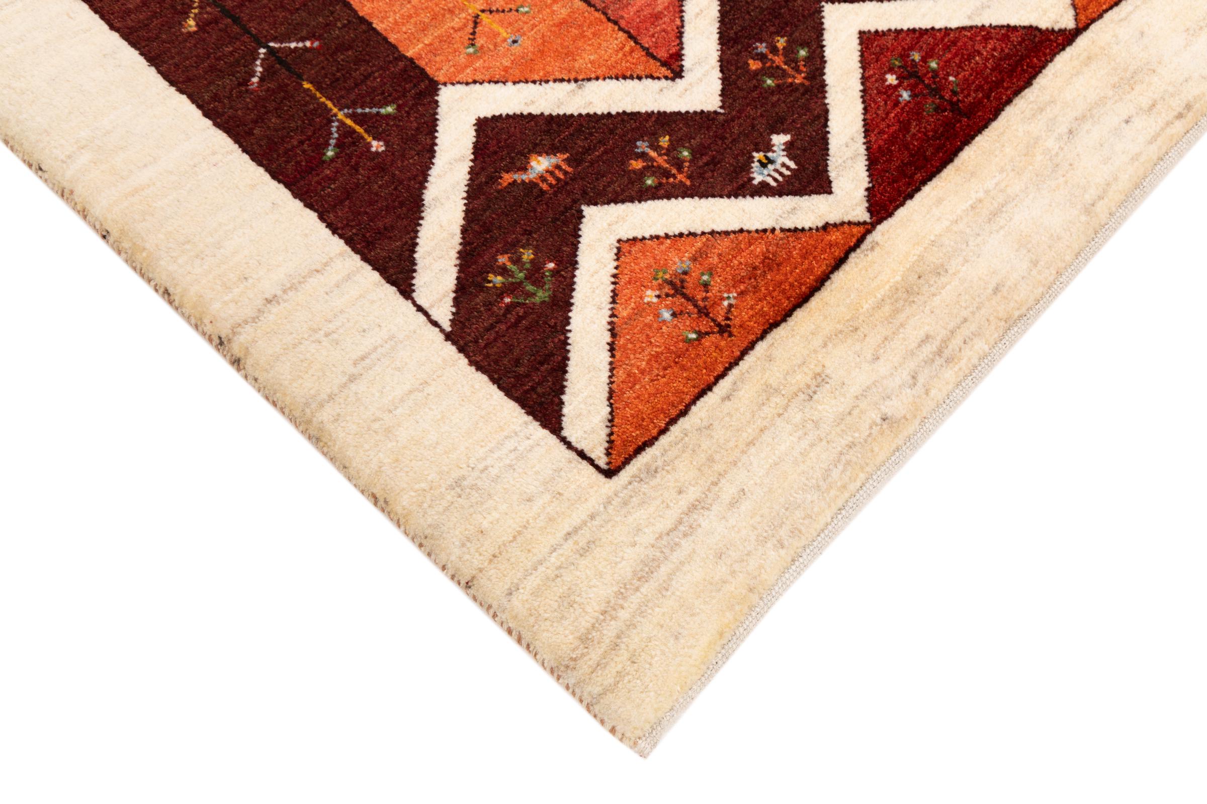 Este Gabbeh Kashkuli foi feito à mão por semi-nómadas no sudoeste do Irão. Graças à tradição persa, oferece uma excelente qualidade. Os motivos deste tipo são geralmente mantidos simples e não parecem demasiado sobrecarregados.
