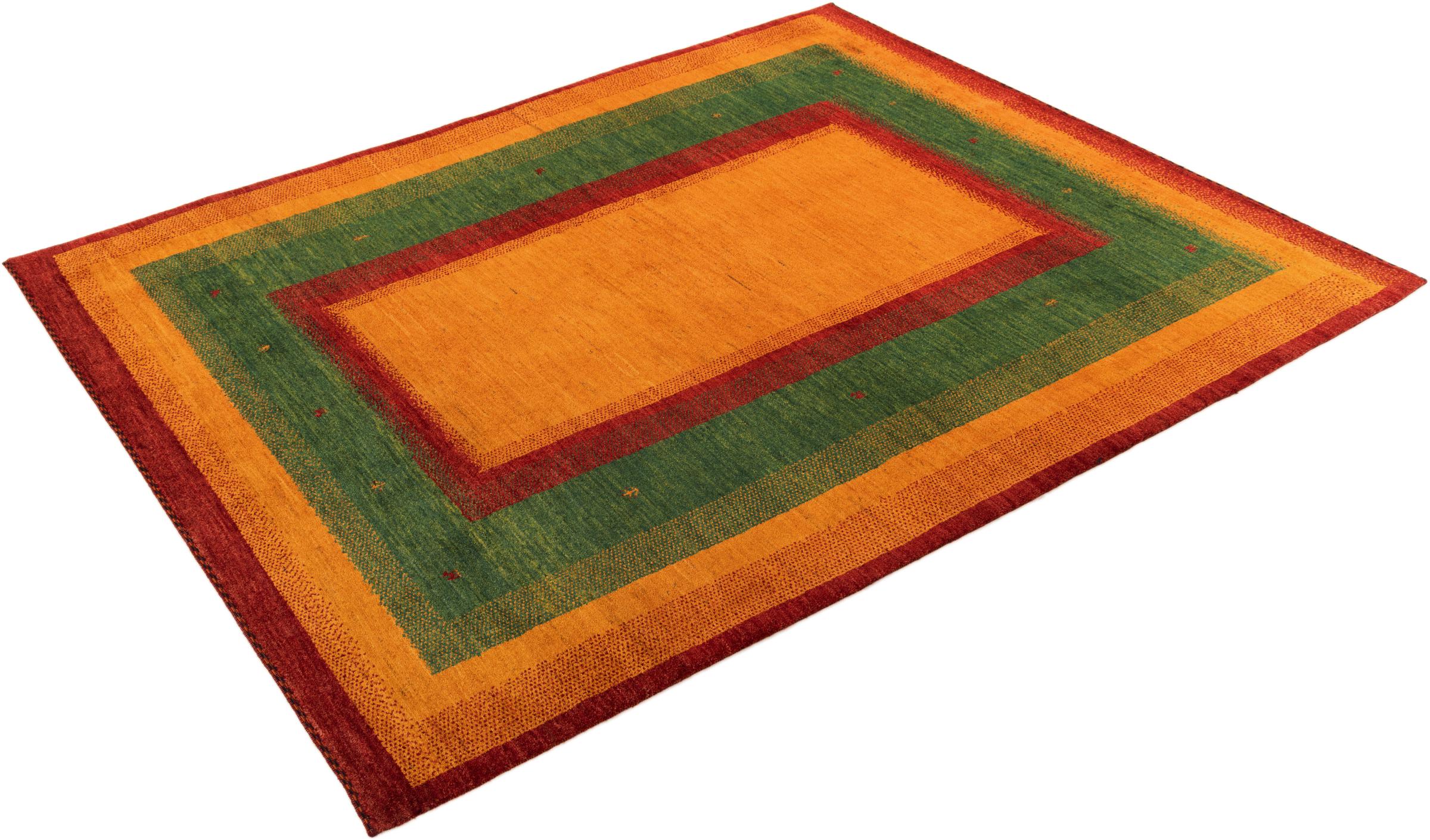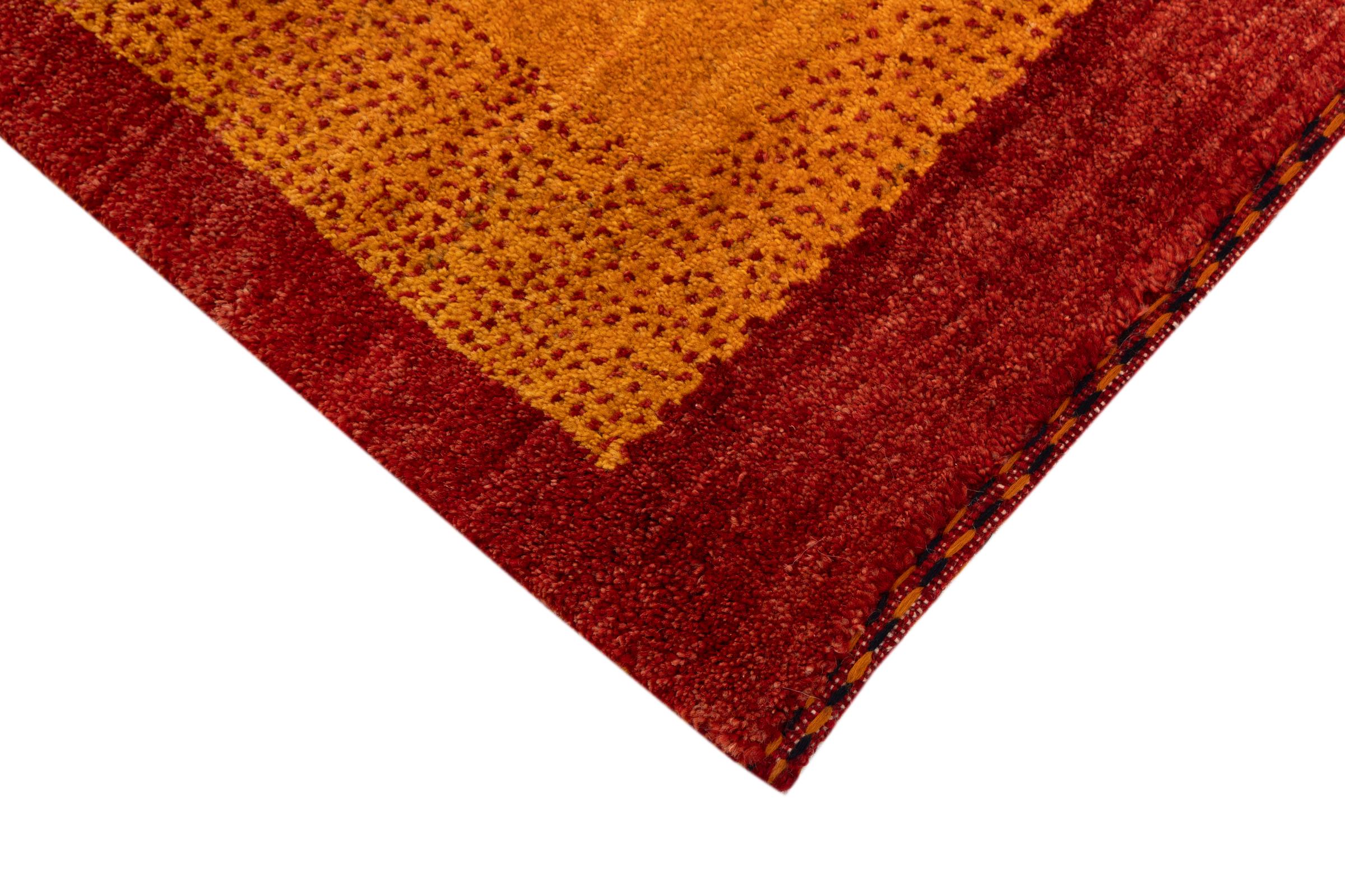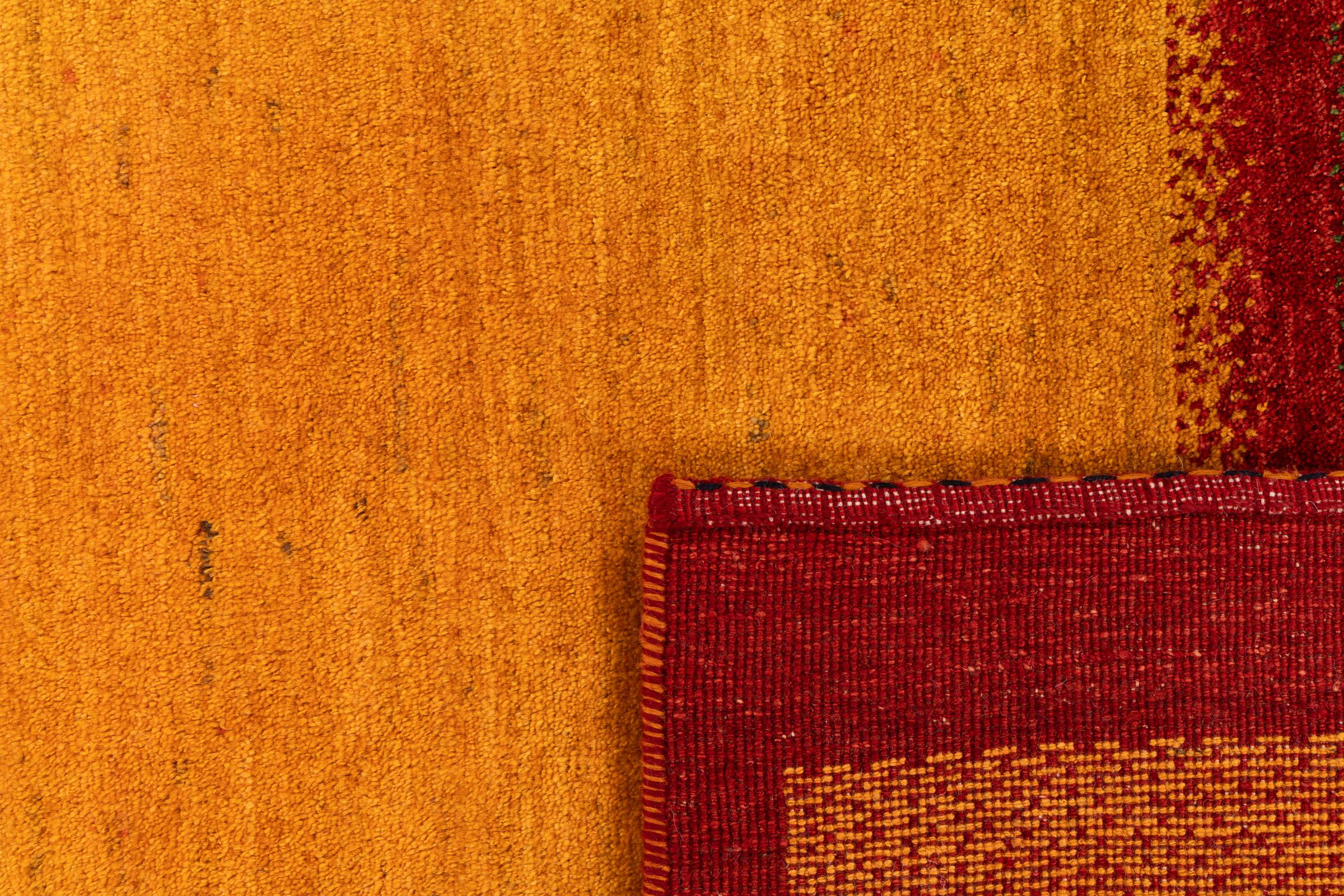 Este belo tapete é um Gabbeh persa e por isso pertence aos tapetes Gabbeh da mais alta qualidade. Os tapetes são atados por nómadas ou semi-nómadas no Irão, de acordo com o artesanato tradicional. Os simples motivos e padrões são, na sua maioria, inspirados pelo ambiente imediato dos nómadas. Por exemplo, camelos, árvores ou arbustos podem ser encontrados nos tapetes tradicionais. Os tapetes Gabbeh persa são feitos de lã proveniente de rebanhos de ovinos criados localmente. Por conseguinte, a lã ainda é, na sua maioria, fiada à mão. Assim, cada um destes tapetes orientais corporiza um carácter único de cultura secular.