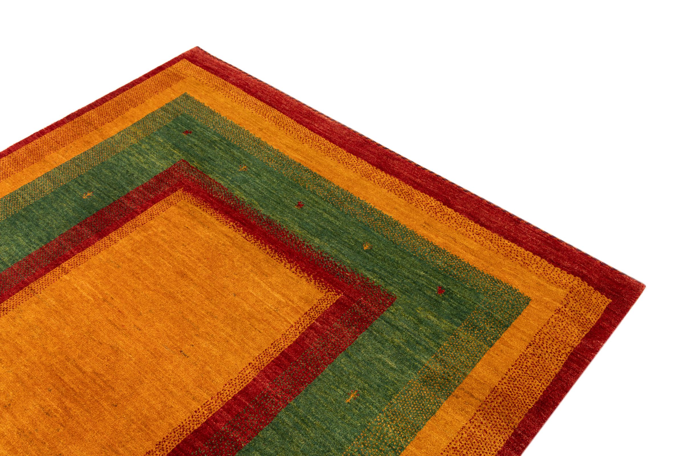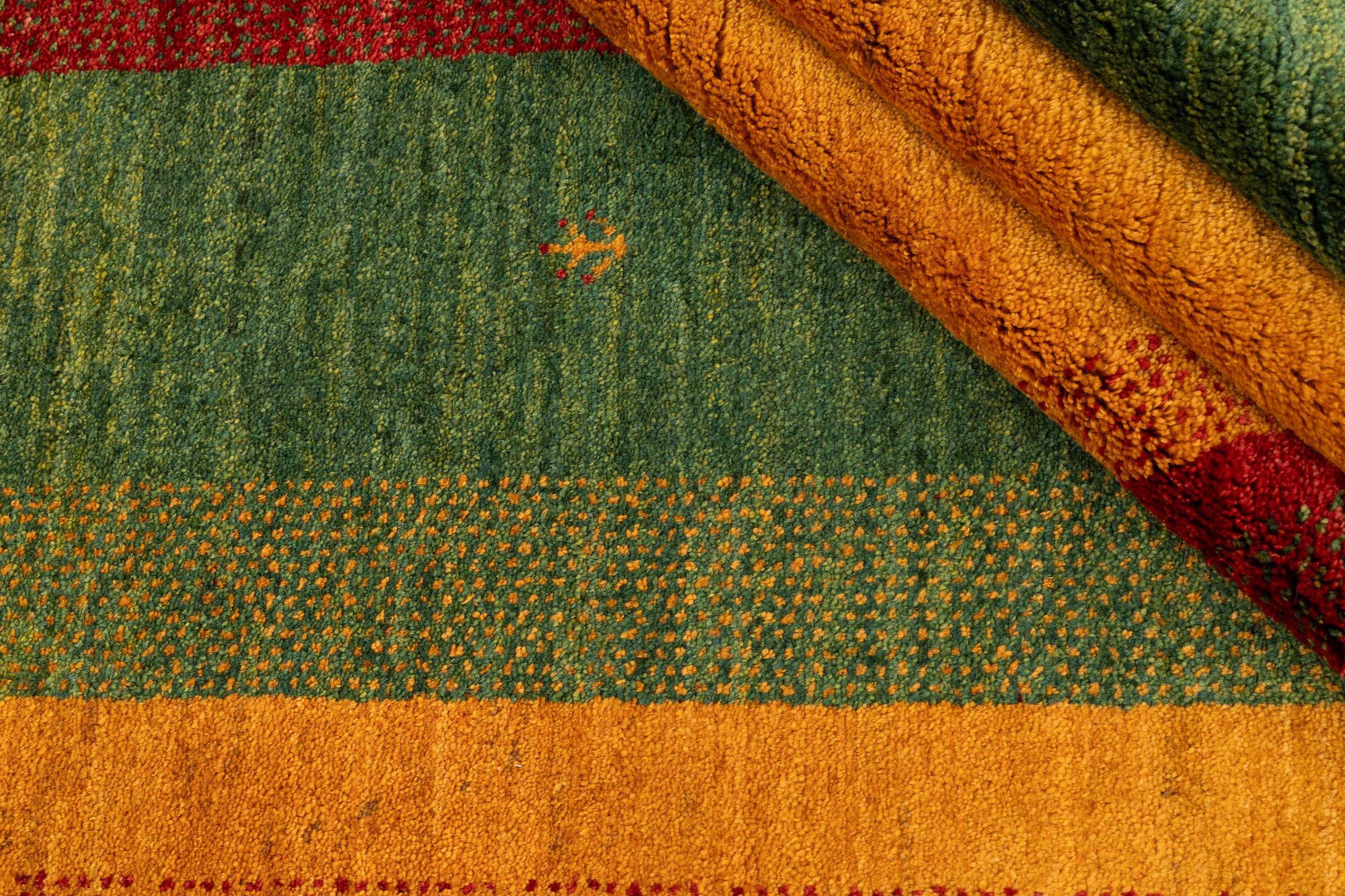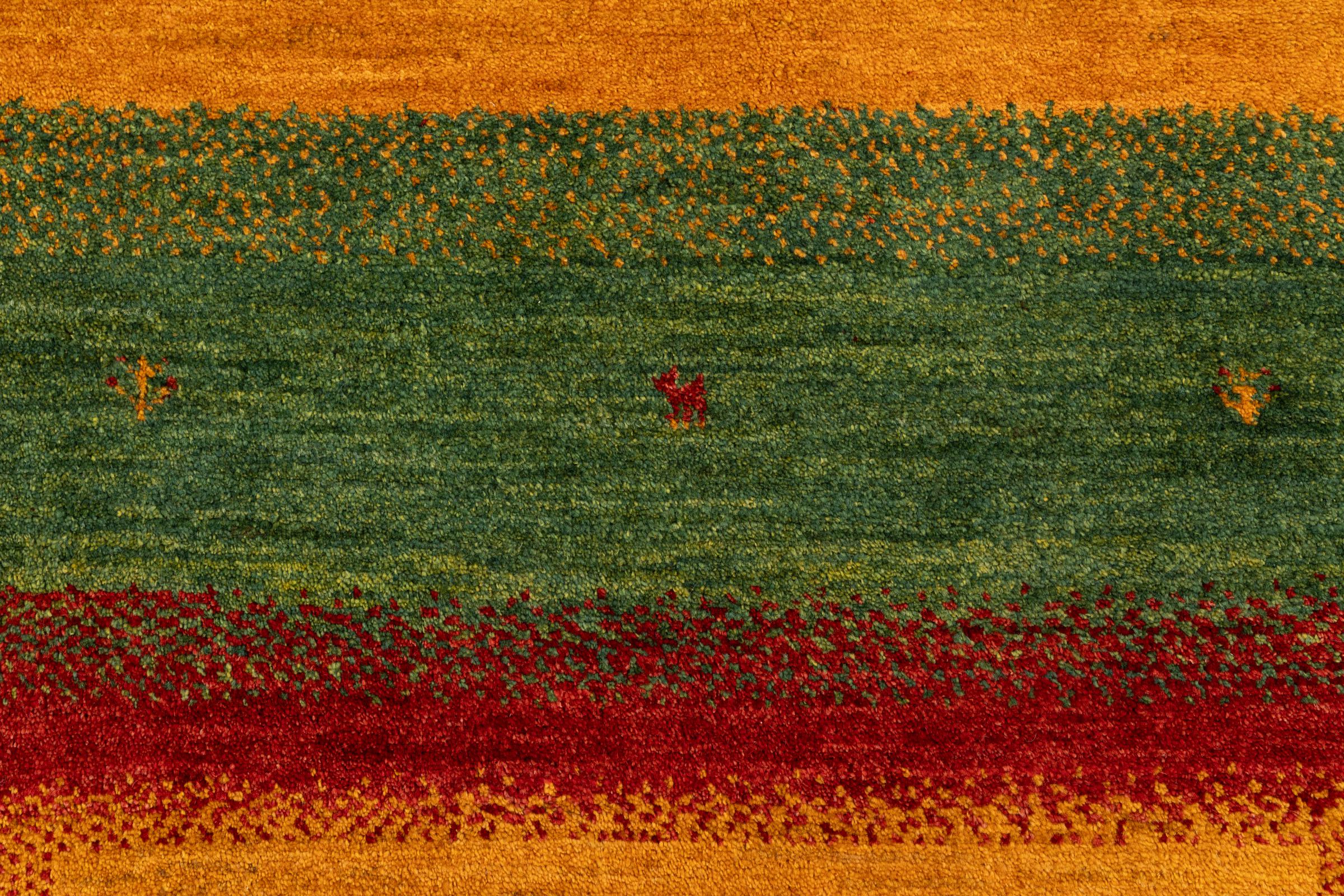 Este Gabbeh Kashkuli foi feito à mão por semi-nómadas no sudoeste do Irão. Graças à tradição persa, oferece uma excelente qualidade. Os motivos deste tipo são geralmente mantidos simples e não parecem demasiado sobrecarregados.