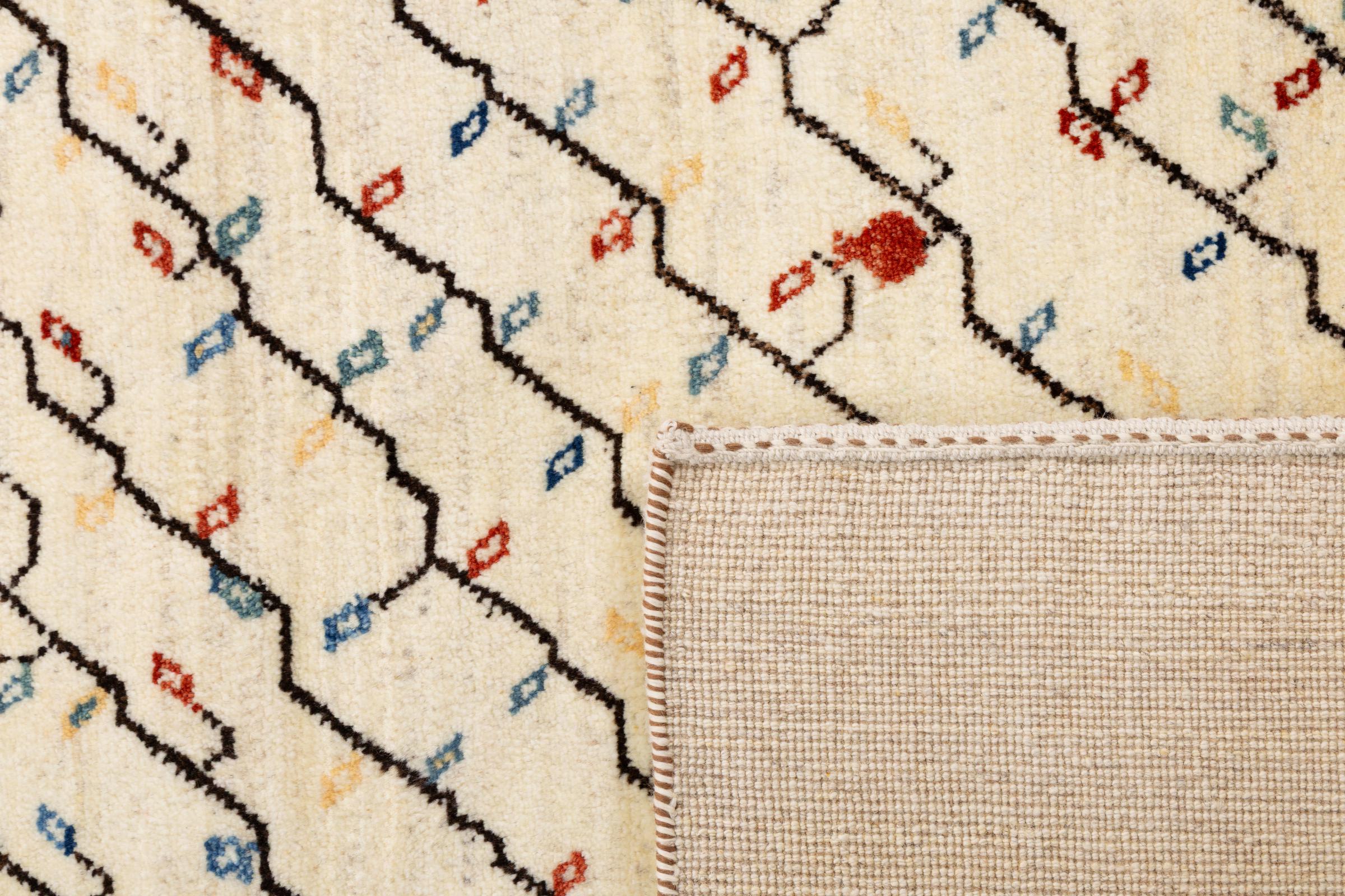 Este Gabbeh Kashkuli foi feito à mão por semi-nómadas no sudoeste do Irão. Graças à tradição persa, oferece uma excelente qualidade. Os motivos deste tipo são geralmente mantidos simples e não parecem demasiado sobrecarregados.