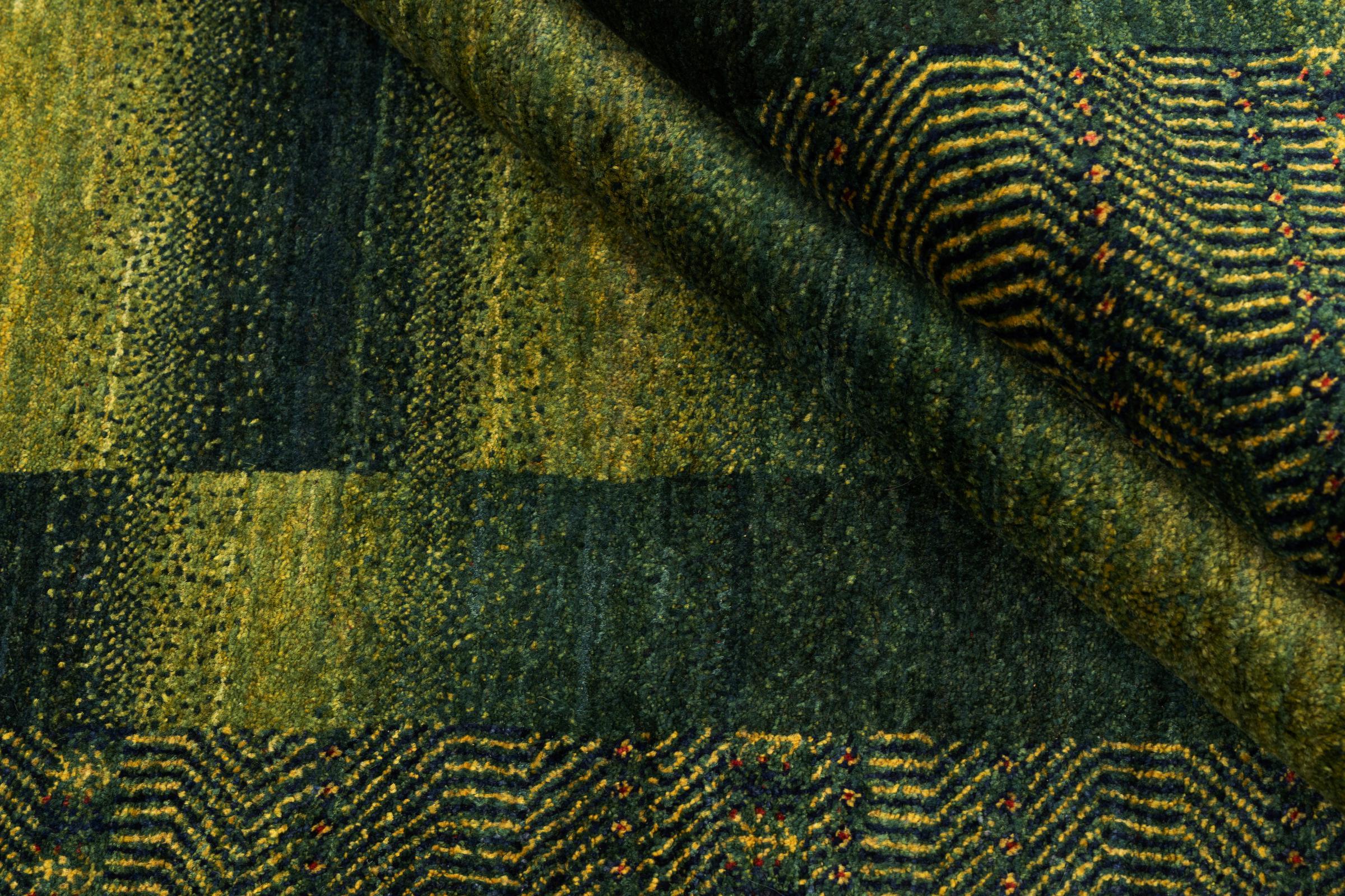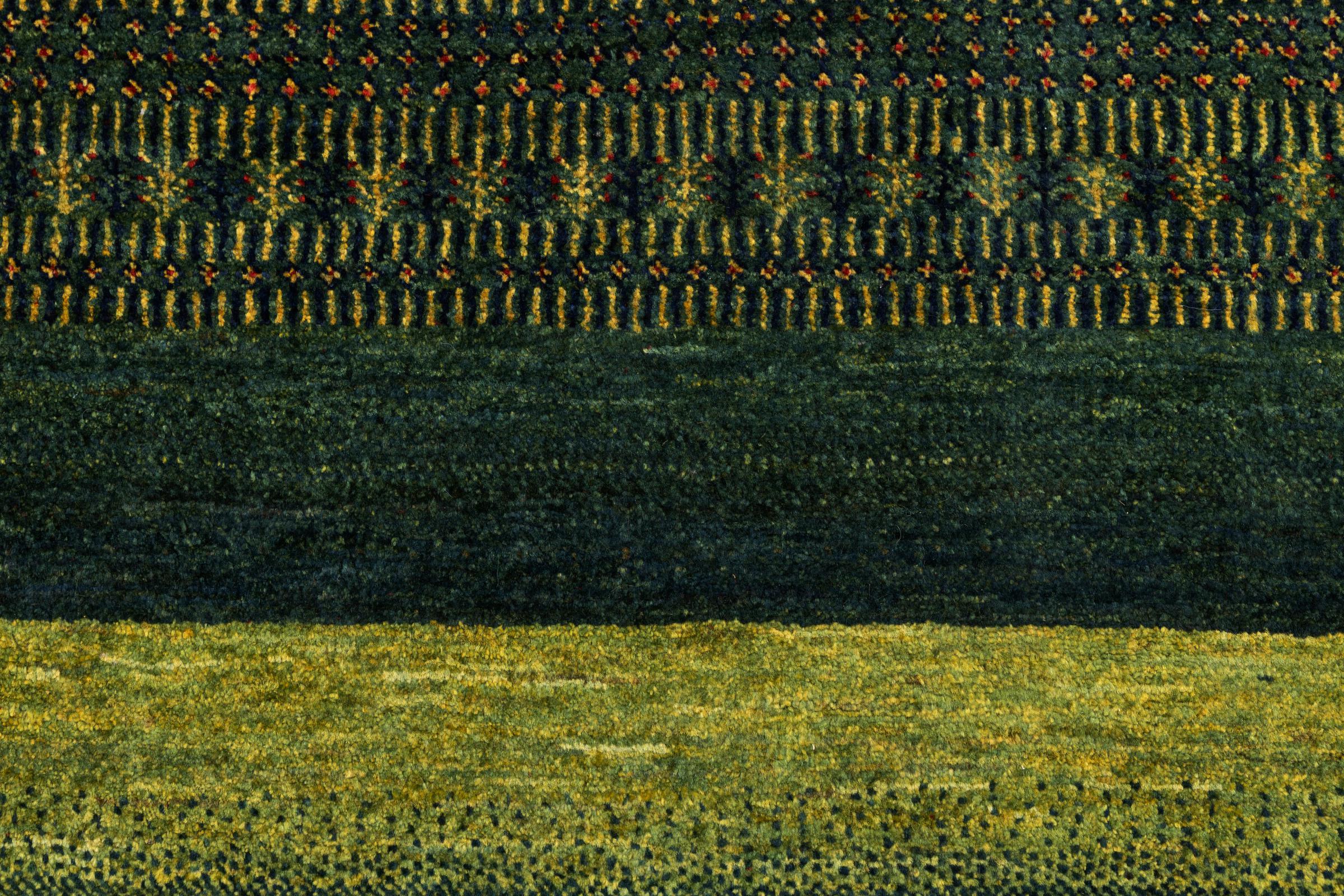Um refinamento dos já conhecidos tapetes Gabbeh: É este Gabbeh Loribaft persa. Com a sua trama mais fina e o seu belo design, sabe como impressionar. Foi feito à mão por Loren, no sul da Pérsia, com a melhor lã de ovelha fiada à mão. Apenas são utilizados corantes vegetais puros para tingir a lã. Com este tapete, você obtém o mais alto padrão de um tapete Gabbeh para sua casa.