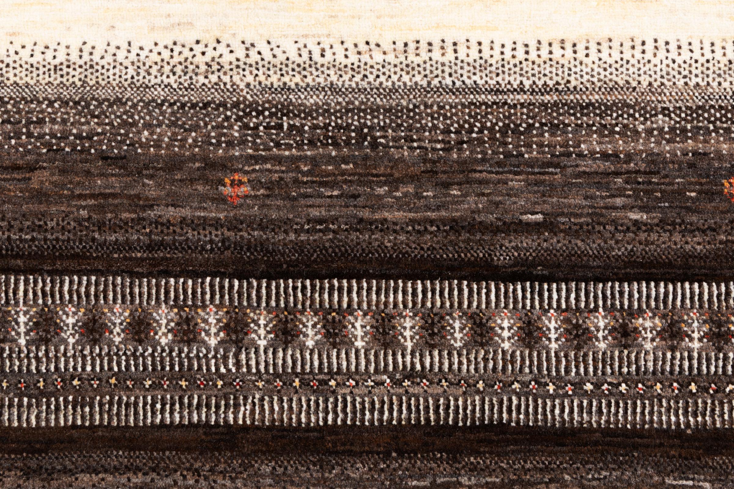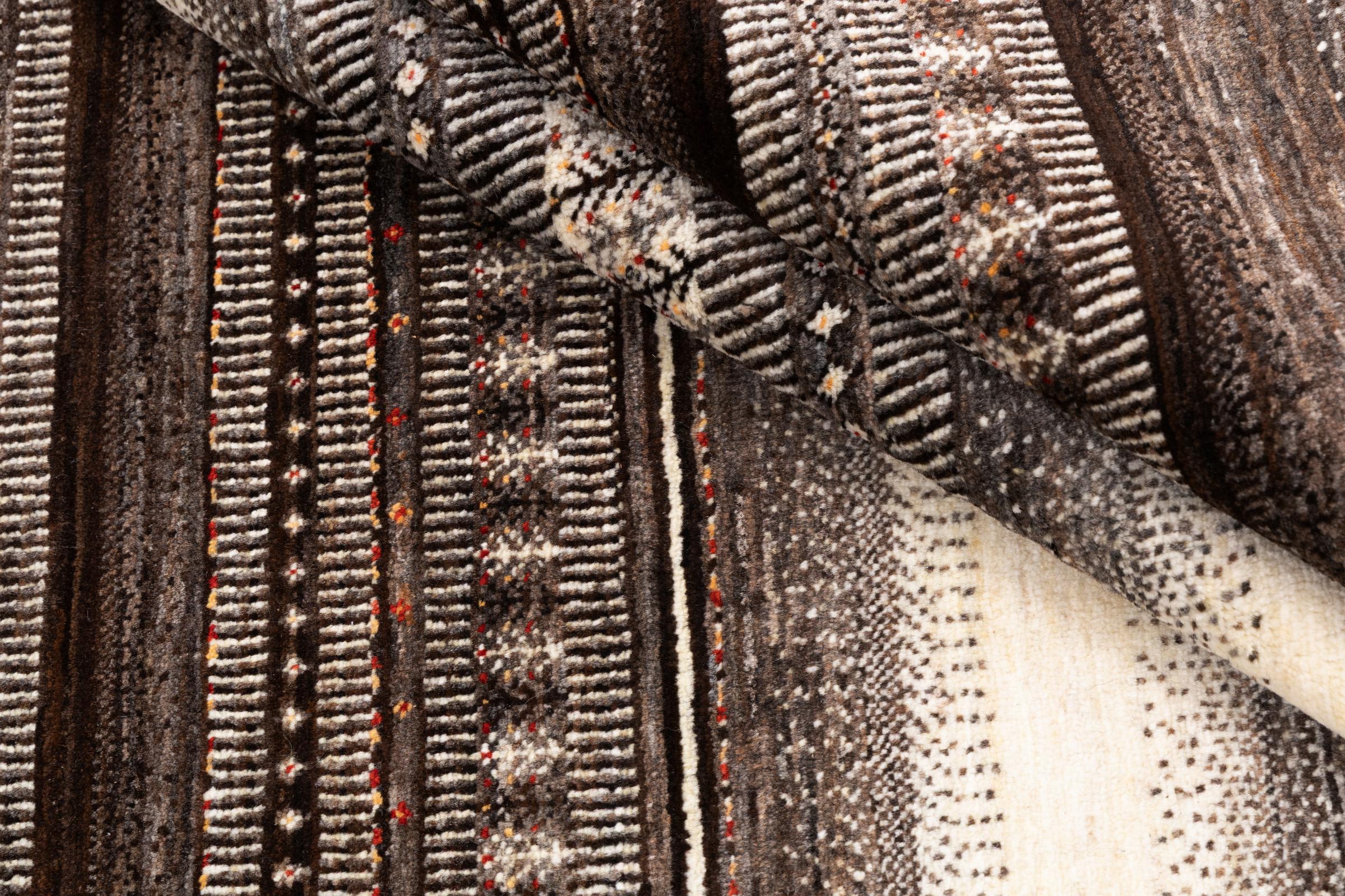 Um refinamento dos já conhecidos tapetes Gabbeh: É este Gabbeh Loribaft persa. Com a sua trama mais fina e o seu belo design, sabe como impressionar. Foi feito à mão por Loren, no sul da Pérsia, com a melhor lã de ovelha fiada à mão. Apenas são utilizados corantes vegetais puros para tingir a lã. Com este tapete, você obtém o mais alto padrão de um tapete Gabbeh para sua casa.