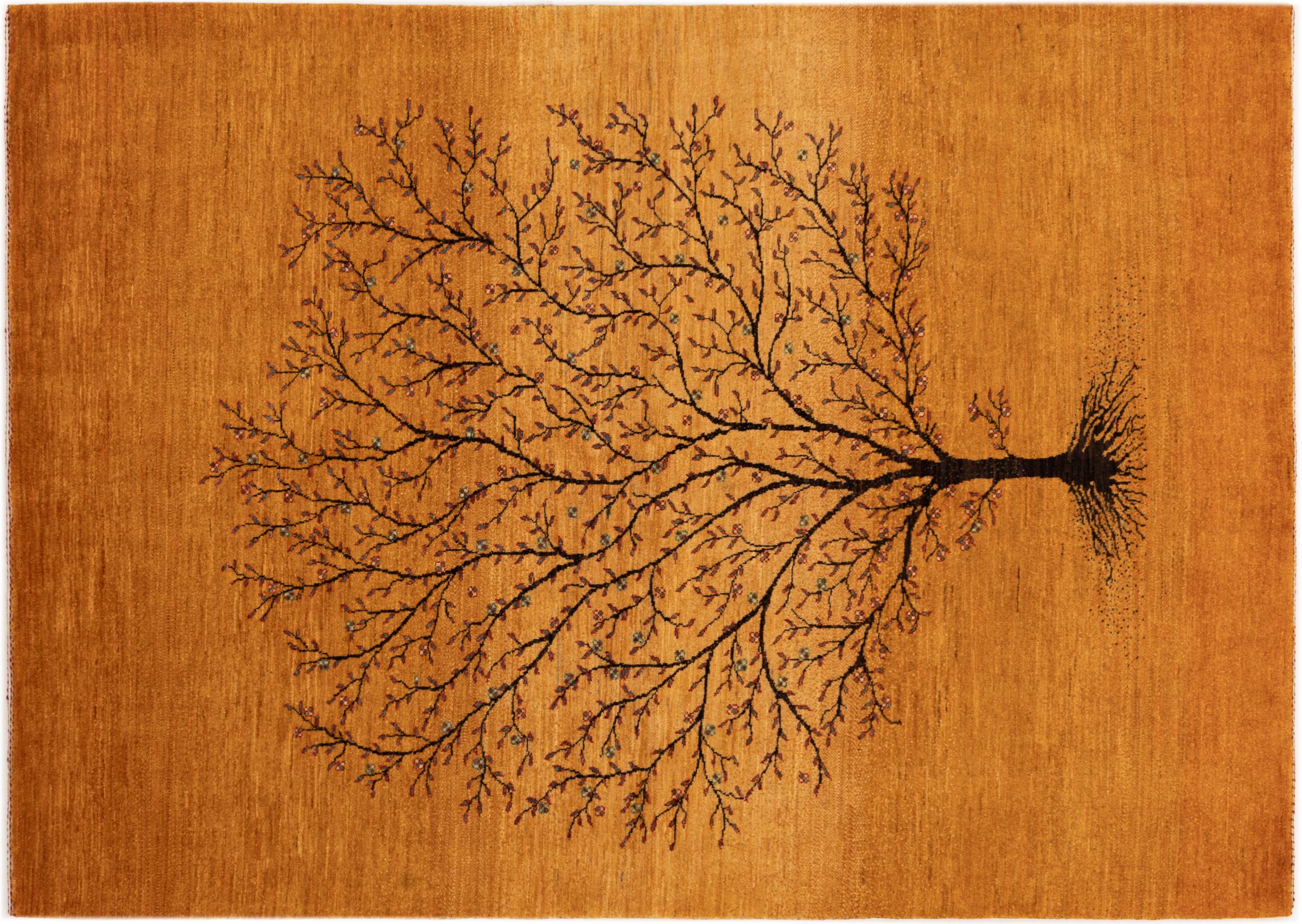 Este belo tapete é um Gabbeh persa e por isso pertence aos tapetes Gabbeh da mais alta qualidade. Os tapetes são atados por nómadas ou semi-nómadas no Irão, de acordo com o artesanato tradicional. Os simples motivos e padrões são, na sua maioria, inspirados pelo ambiente imediato dos nómadas. Por exemplo, camelos, árvores ou arbustos podem ser encontrados nos tapetes tradicionais. Os tapetes Gabbeh persa são feitos de lã proveniente de rebanhos de ovinos criados localmente. Por conseguinte, a lã ainda é, na sua maioria, fiada à mão. Assim, cada um destes tapetes orientais corporiza um carácter único de cultura secular.