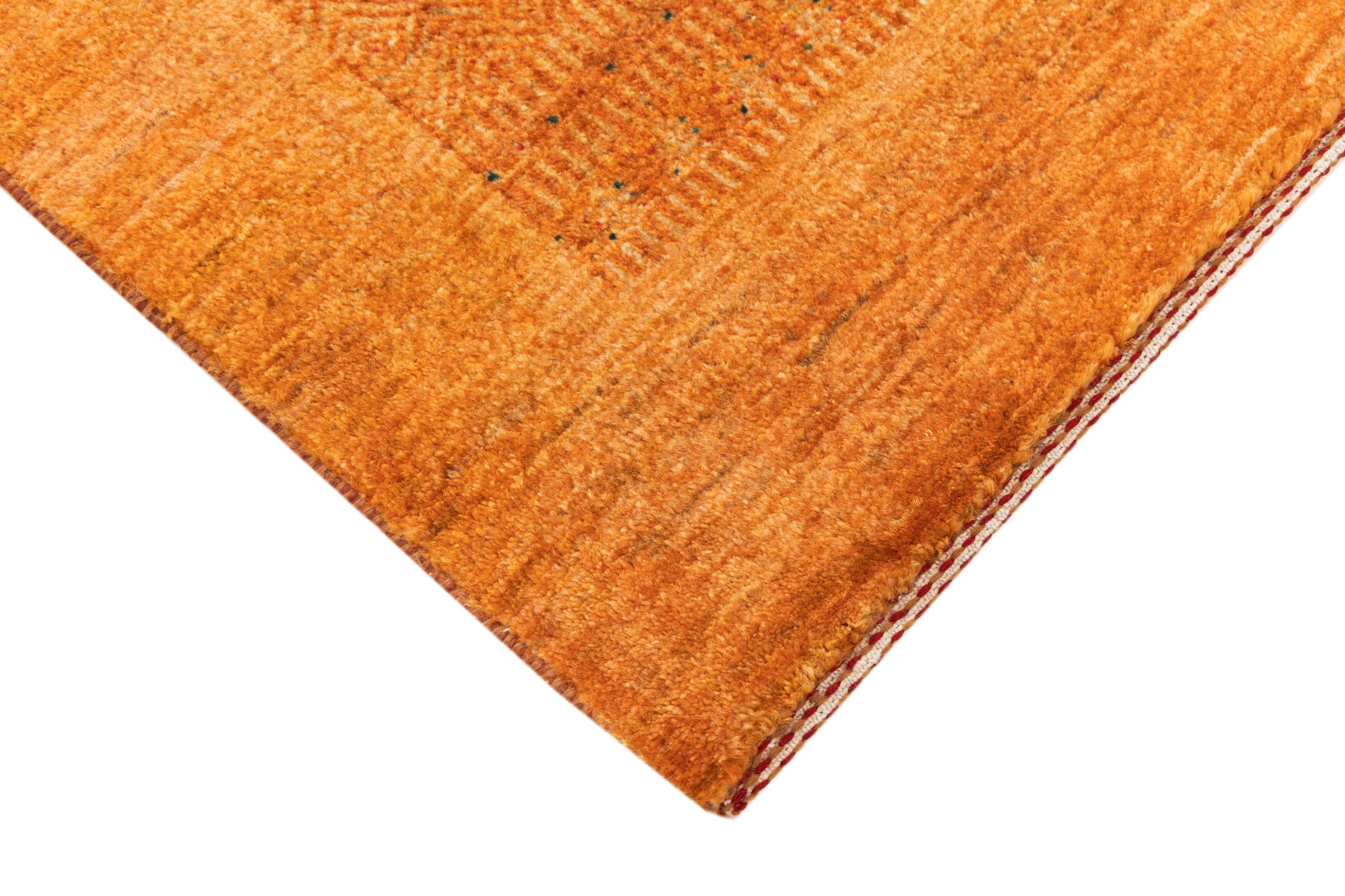 Este belo tapete é um Gabbeh persa e por isso pertence aos tapetes Gabbeh da mais alta qualidade. Os tapetes são atados por nómadas ou semi-nómadas no Irão, de acordo com o artesanato tradicional. Os simples motivos e padrões são, na sua maioria, inspirados pelo ambiente imediato dos nómadas. Por exemplo, camelos, árvores ou arbustos podem ser encontrados nos tapetes tradicionais. Os tapetes Gabbeh persa são feitos de lã proveniente de rebanhos de ovinos criados localmente. Por conseguinte, a lã ainda é, na sua maioria, fiada à mão. Assim, cada um destes tapetes orientais corporiza um carácter único de cultura secular.