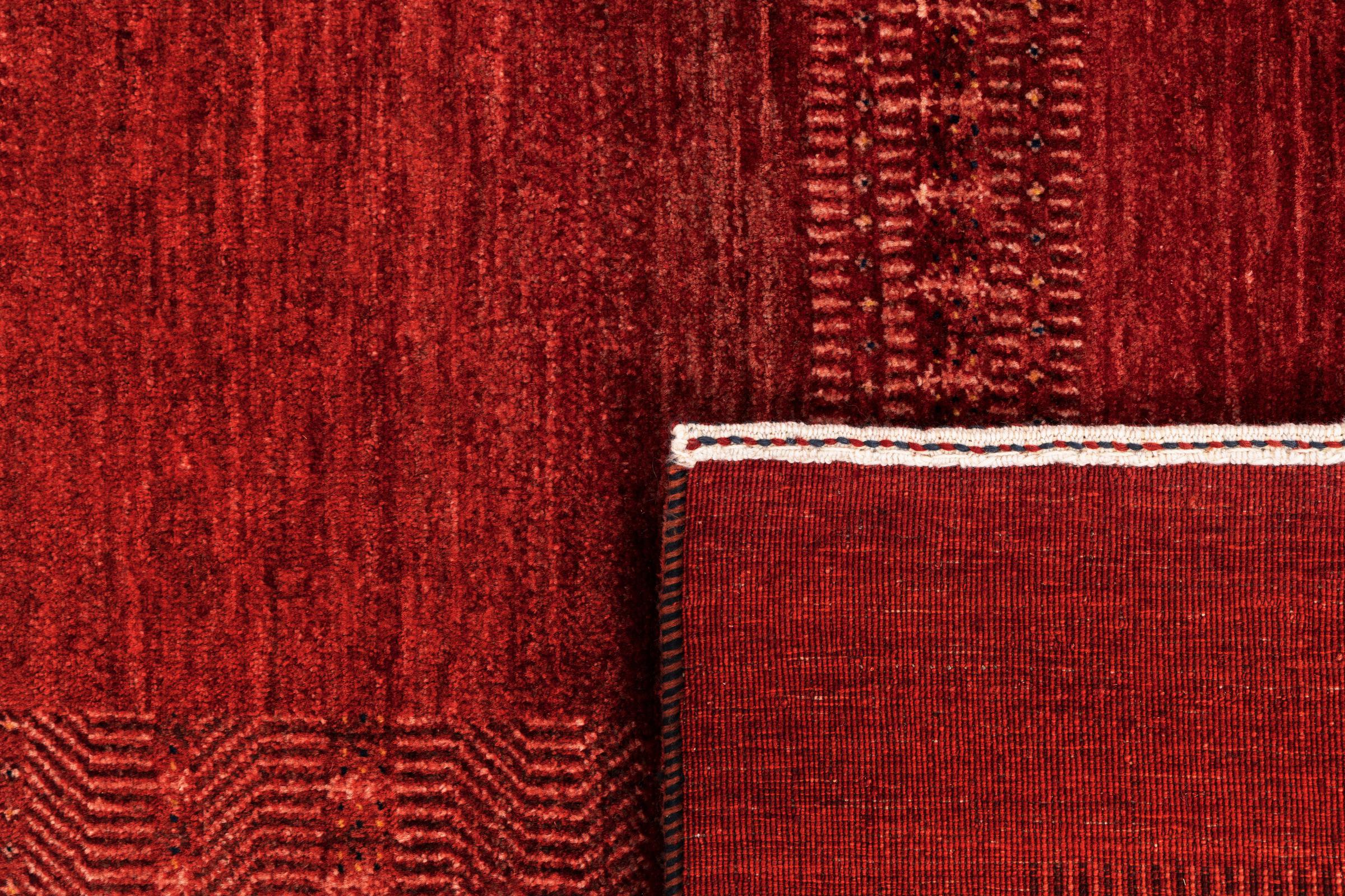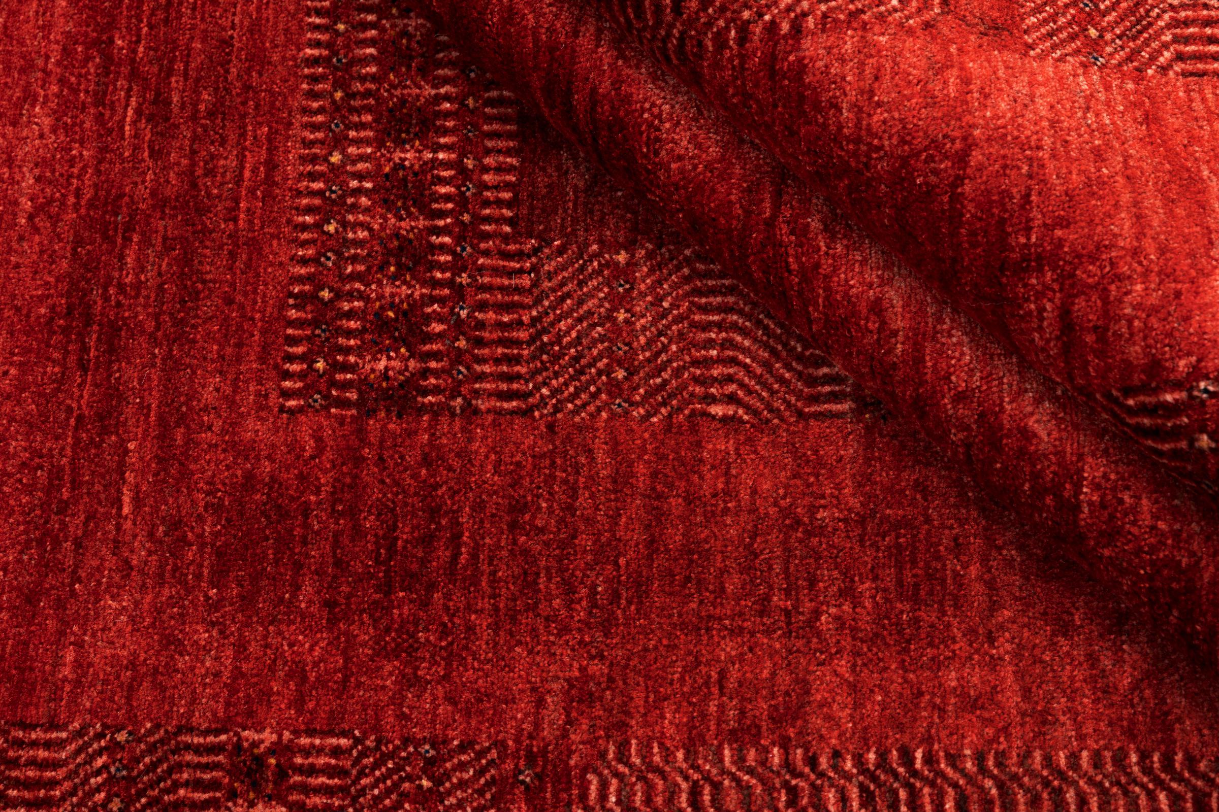Um refinamento dos já conhecidos tapetes Gabbeh: É este Gabbeh Loribaft persa. Com a sua trama mais fina e o seu belo design, sabe como impressionar. Foi feito à mão por Loren, no sul da Pérsia, com a melhor lã de ovelha fiada à mão. Apenas são utilizados corantes vegetais puros para tingir a lã. Com este tapete, você obtém o mais alto padrão de um tapete Gabbeh para sua casa.