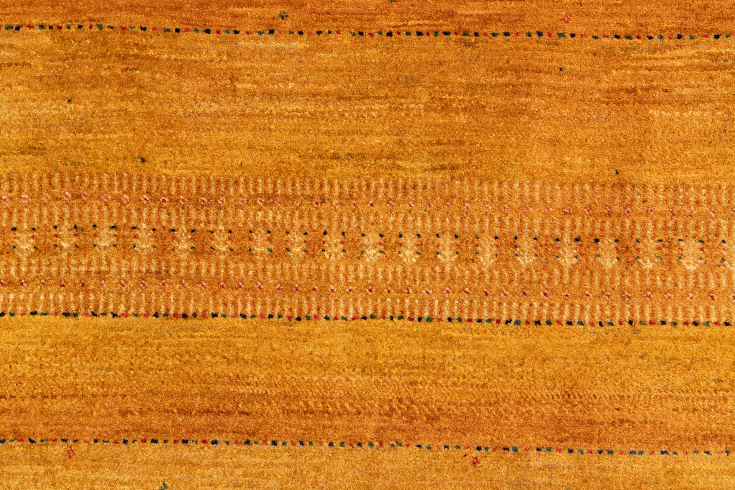 Um refinamento dos já conhecidos tapetes Gabbeh: É este Gabbeh Loribaft persa. Com a sua trama mais fina e o seu belo design, sabe como impressionar. Foi feito à mão por Loren, no sul da Pérsia, com a melhor lã de ovelha fiada à mão. Apenas são utilizados corantes vegetais puros para tingir a lã. Com este tapete, você obtém o mais alto padrão de um tapete Gabbeh para sua casa.
