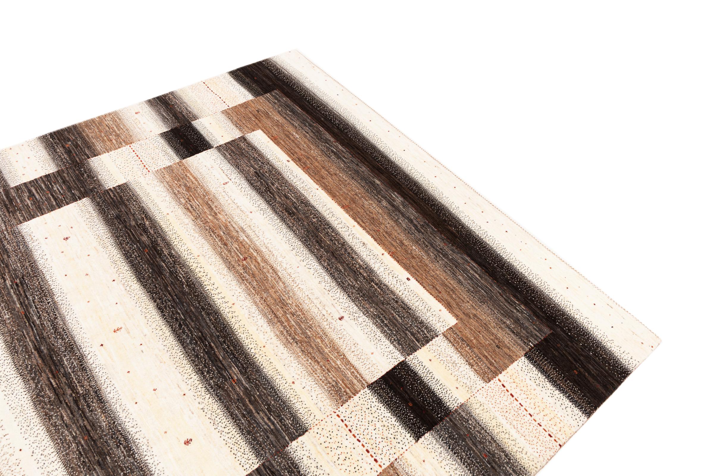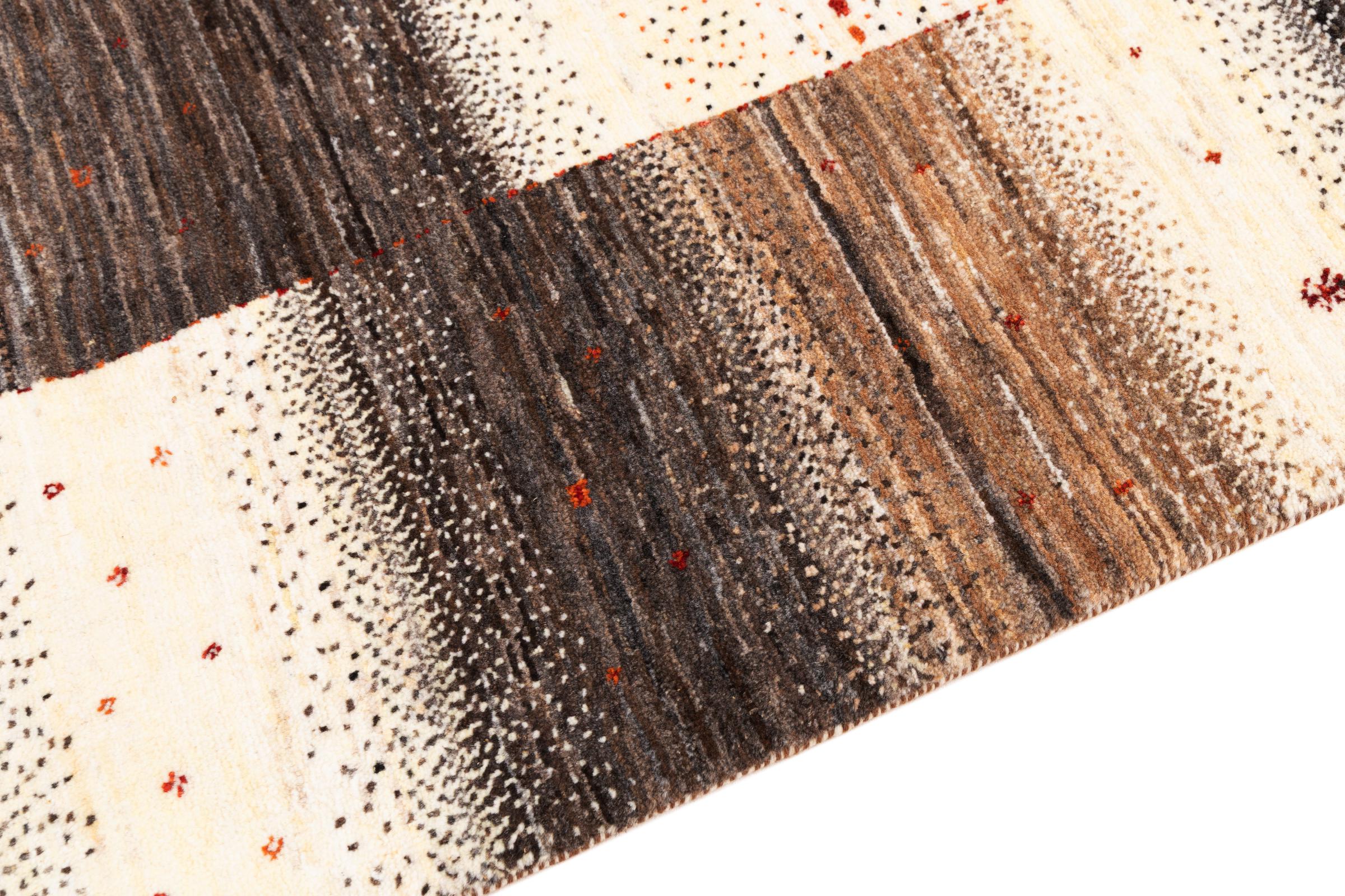 Um refinamento dos já conhecidos tapetes Gabbeh: É este Gabbeh Loribaft persa. Com a sua trama mais fina e o seu belo design, sabe como impressionar. Foi feito à mão por Loren, no sul da Pérsia, com a melhor lã de ovelha fiada à mão. Apenas são utilizados corantes vegetais puros para tingir a lã. Com este tapete, você obtém o mais alto padrão de um tapete Gabbeh para sua casa.