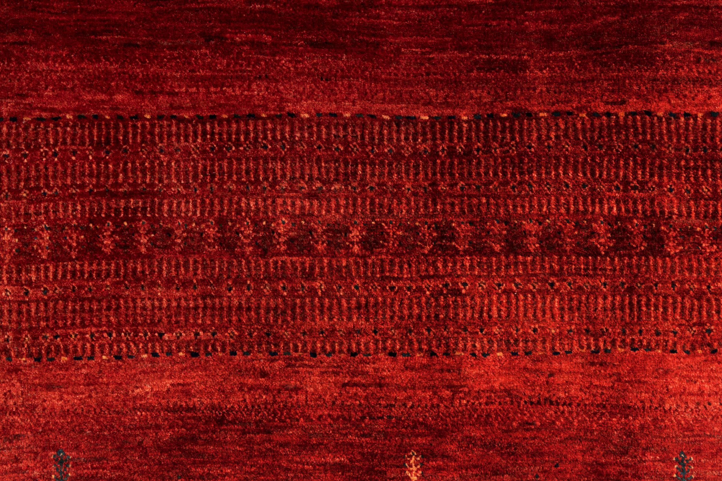 Um refinamento dos já conhecidos tapetes Gabbeh: É este Gabbeh Loribaft persa. Com a sua trama mais fina e o seu belo design, sabe como impressionar. Foi feito à mão por Loren, no sul da Pérsia, com a melhor lã de ovelha fiada à mão. Apenas são utilizados corantes vegetais puros para tingir a lã. Com este tapete, você obtém o mais alto padrão de um tapete Gabbeh para sua casa.