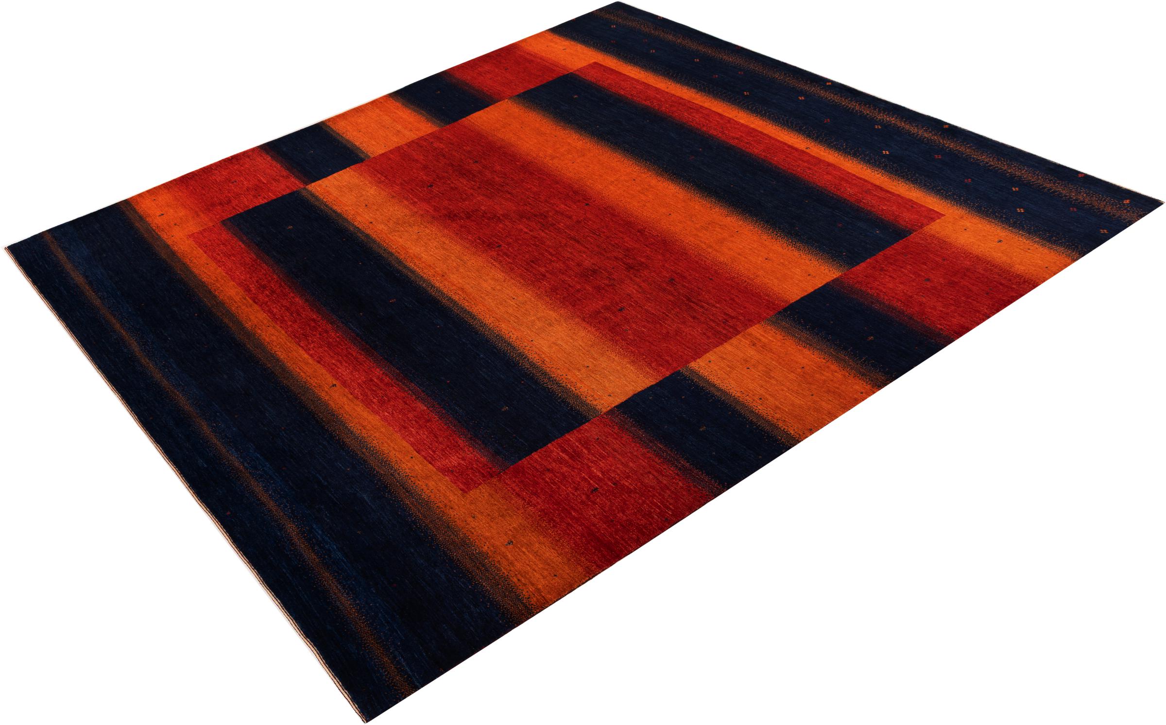 Este belo tapete é um Gabbeh persa e por isso pertence aos tapetes Gabbeh da mais alta qualidade. Os tapetes são atados por nómadas ou semi-nómadas no Irão, de acordo com o artesanato tradicional. Os simples motivos e padrões são, na sua maioria, inspirados pelo ambiente imediato dos nómadas. Por exemplo, camelos, árvores ou arbustos podem ser encontrados nos tapetes tradicionais. Os tapetes Gabbeh persa são feitos de lã proveniente de rebanhos de ovinos criados localmente. Por conseguinte, a lã ainda é, na sua maioria, fiada à mão. Assim, cada um destes tapetes orientais corporiza um carácter único de cultura secular.