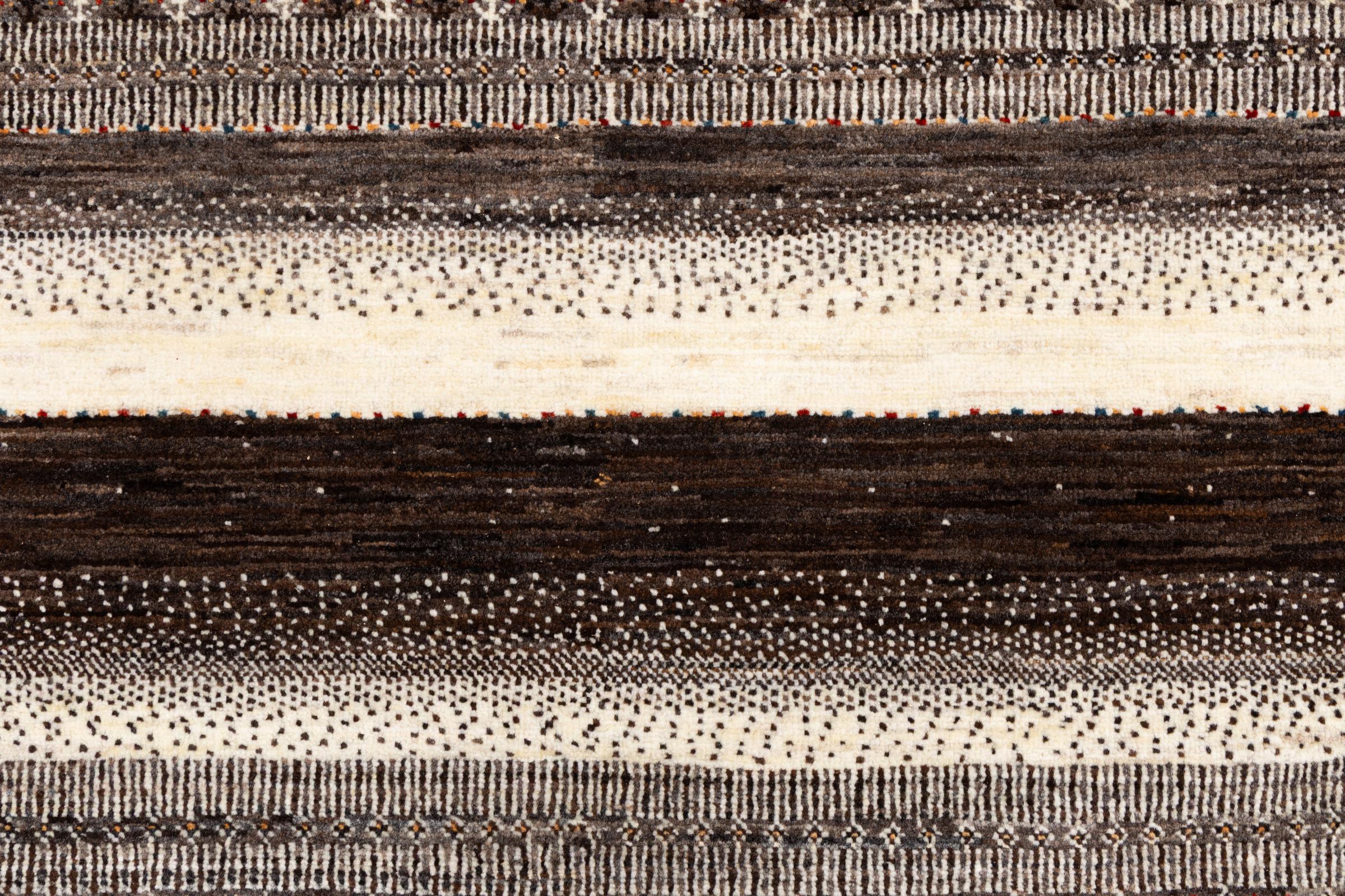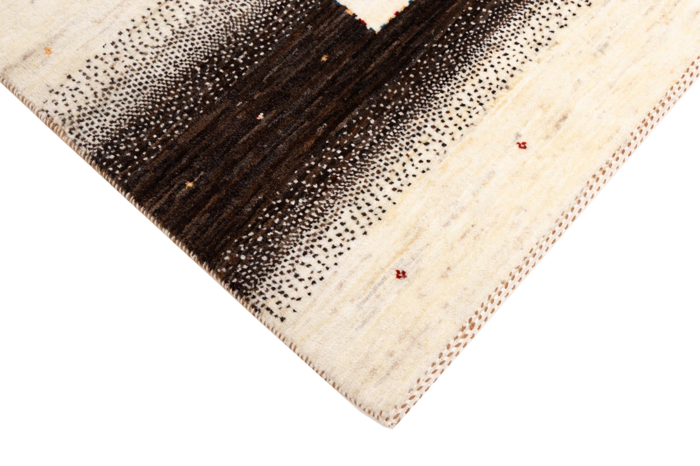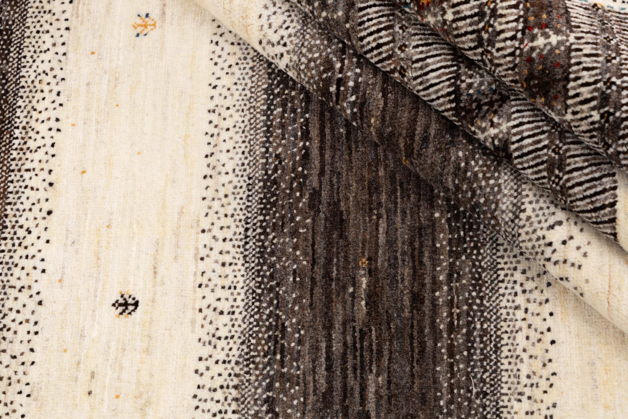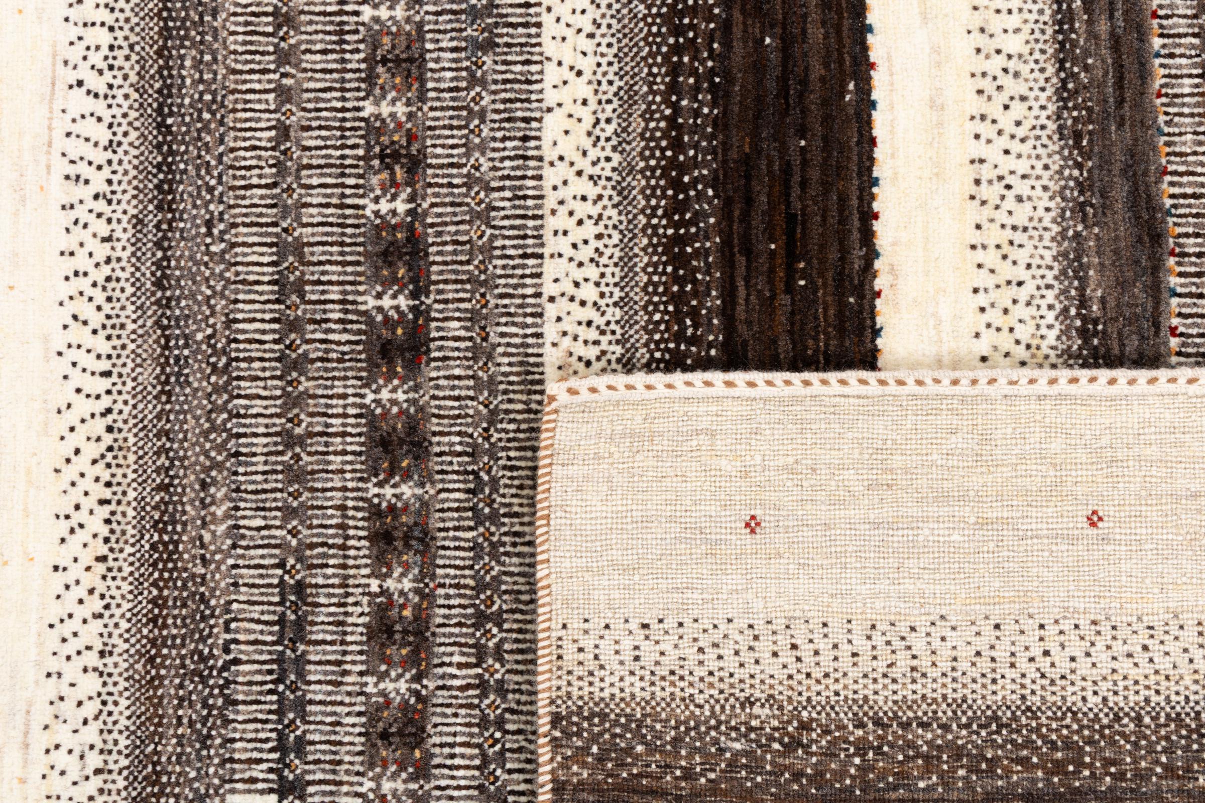 Um refinamento dos já conhecidos tapetes Gabbeh: É este Gabbeh Loribaft persa. Com a sua trama mais fina e o seu belo design, sabe como impressionar. Foi feito à mão por Loren, no sul da Pérsia, com a melhor lã de ovelha fiada à mão. Apenas são utilizados corantes vegetais puros para tingir a lã. Com este tapete, você obtém o mais alto padrão de um tapete Gabbeh para sua casa.