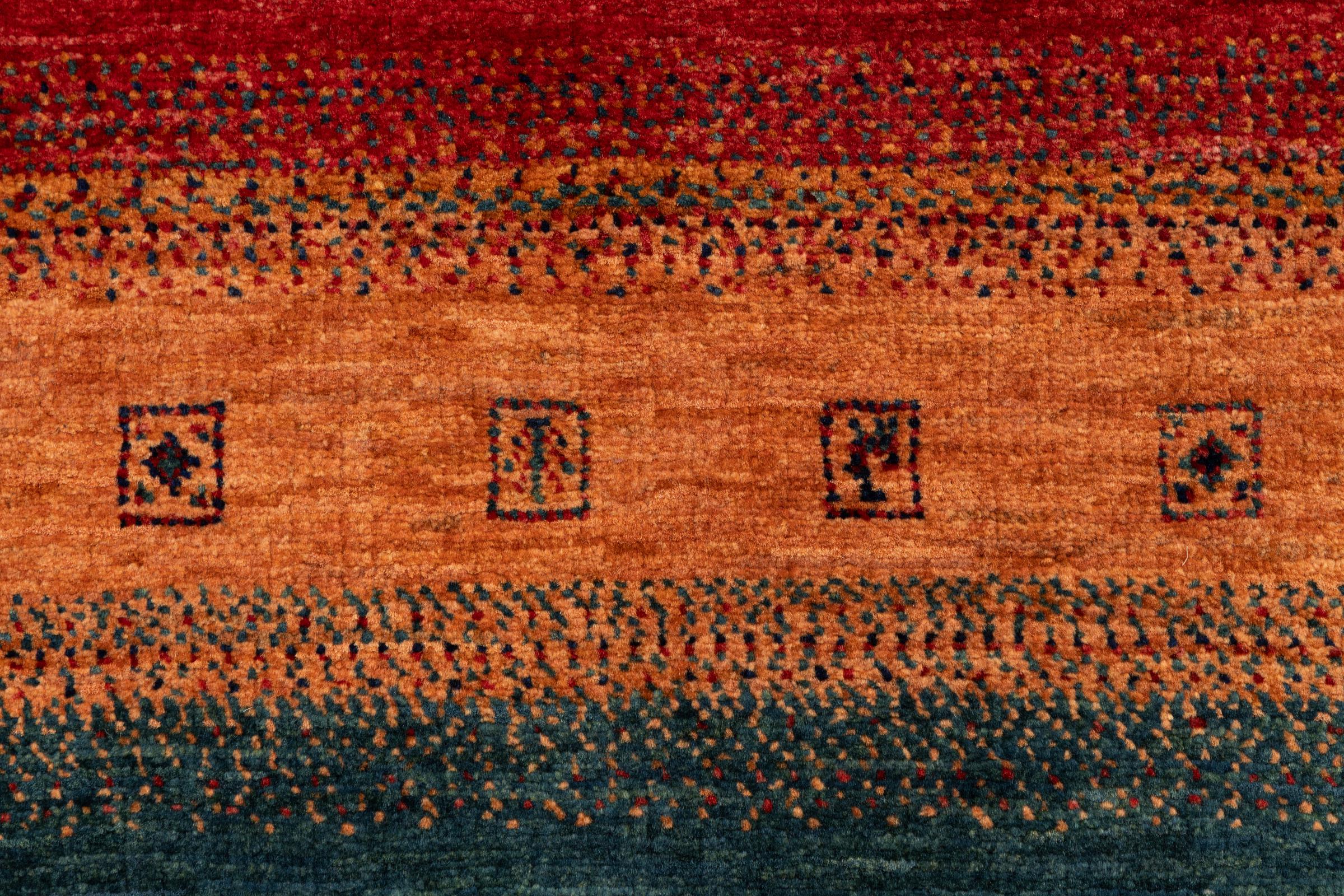 Um refinamento dos já conhecidos tapetes Gabbeh: É este Gabbeh Loribaft persa. Com a sua trama mais fina e o seu belo design, sabe como impressionar. Foi feito à mão por Loren, no sul da Pérsia, com a melhor lã de ovelha fiada à mão. Apenas são utilizados corantes vegetais puros para tingir a lã. Com este tapete, você obtém o mais alto padrão de um tapete Gabbeh para sua casa.