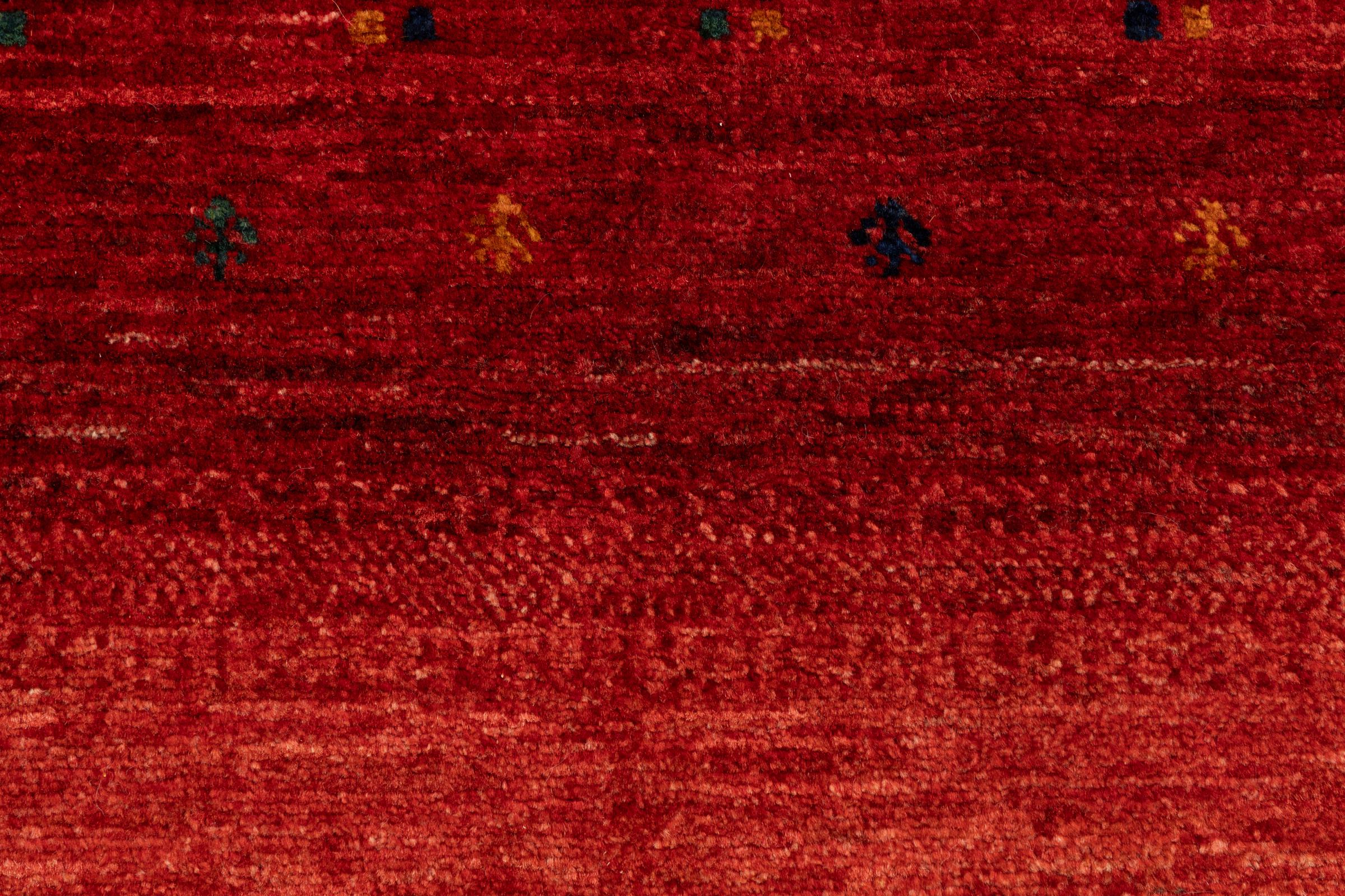Um refinamento dos já conhecidos tapetes Gabbeh: É este Gabbeh Loribaft persa. Com a sua trama mais fina e o seu belo design, sabe como impressionar. Foi feito à mão por Loren, no sul da Pérsia, com a melhor lã de ovelha fiada à mão. Apenas são utilizados corantes vegetais puros para tingir a lã. Com este tapete, você obtém o mais alto padrão de um tapete Gabbeh para sua casa.