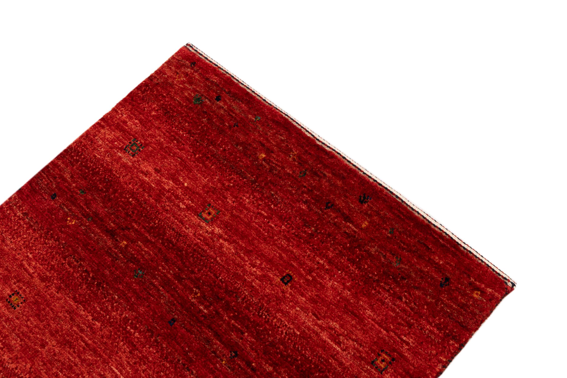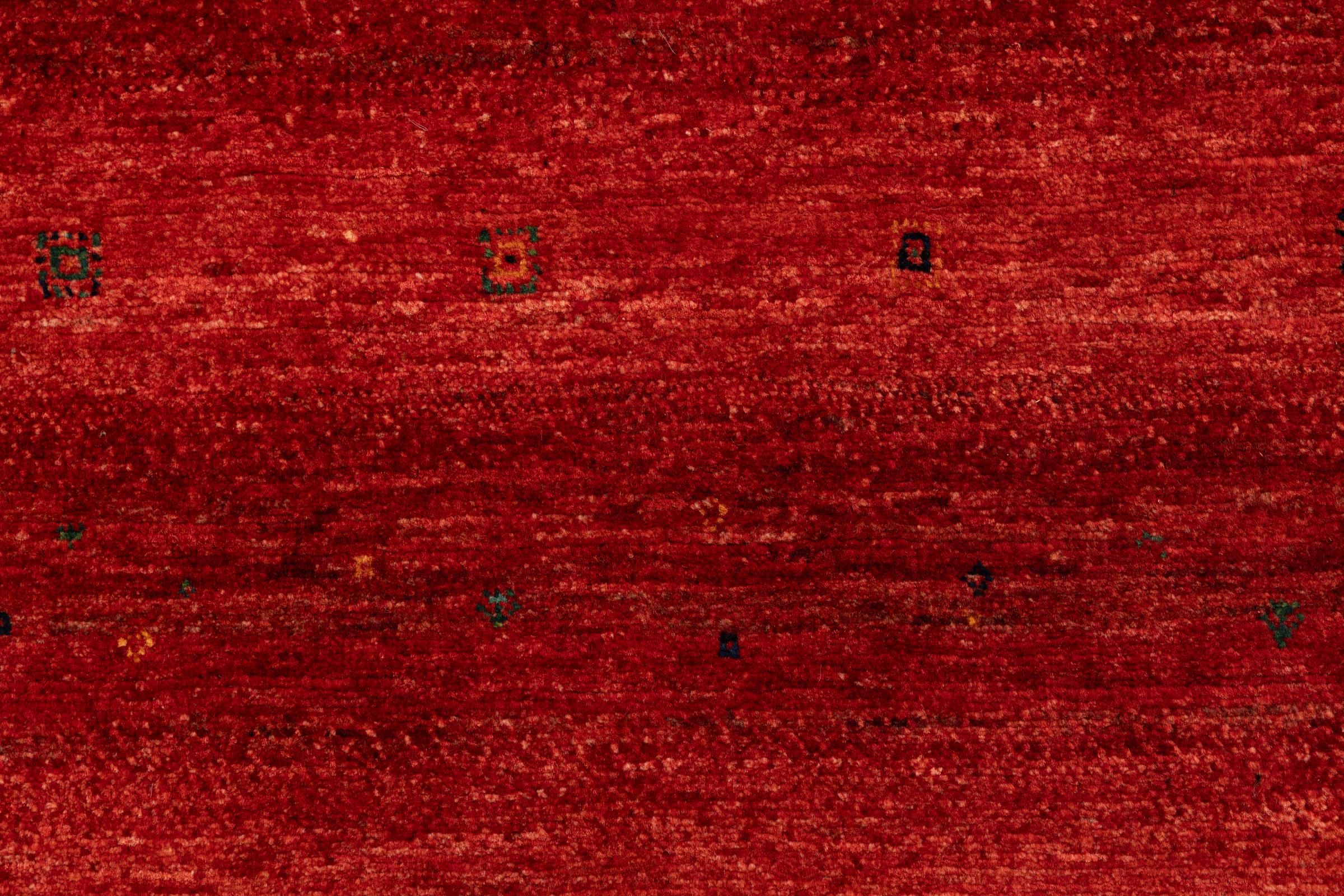 Um refinamento dos já conhecidos tapetes Gabbeh: É este Gabbeh Loribaft persa. Com a sua trama mais fina e o seu belo design, sabe como impressionar. Foi feito à mão por Loren, no sul da Pérsia, com a melhor lã de ovelha fiada à mão. Apenas são utilizados corantes vegetais puros para tingir a lã. Com este tapete, você obtém o mais alto padrão de um tapete Gabbeh para sua casa.