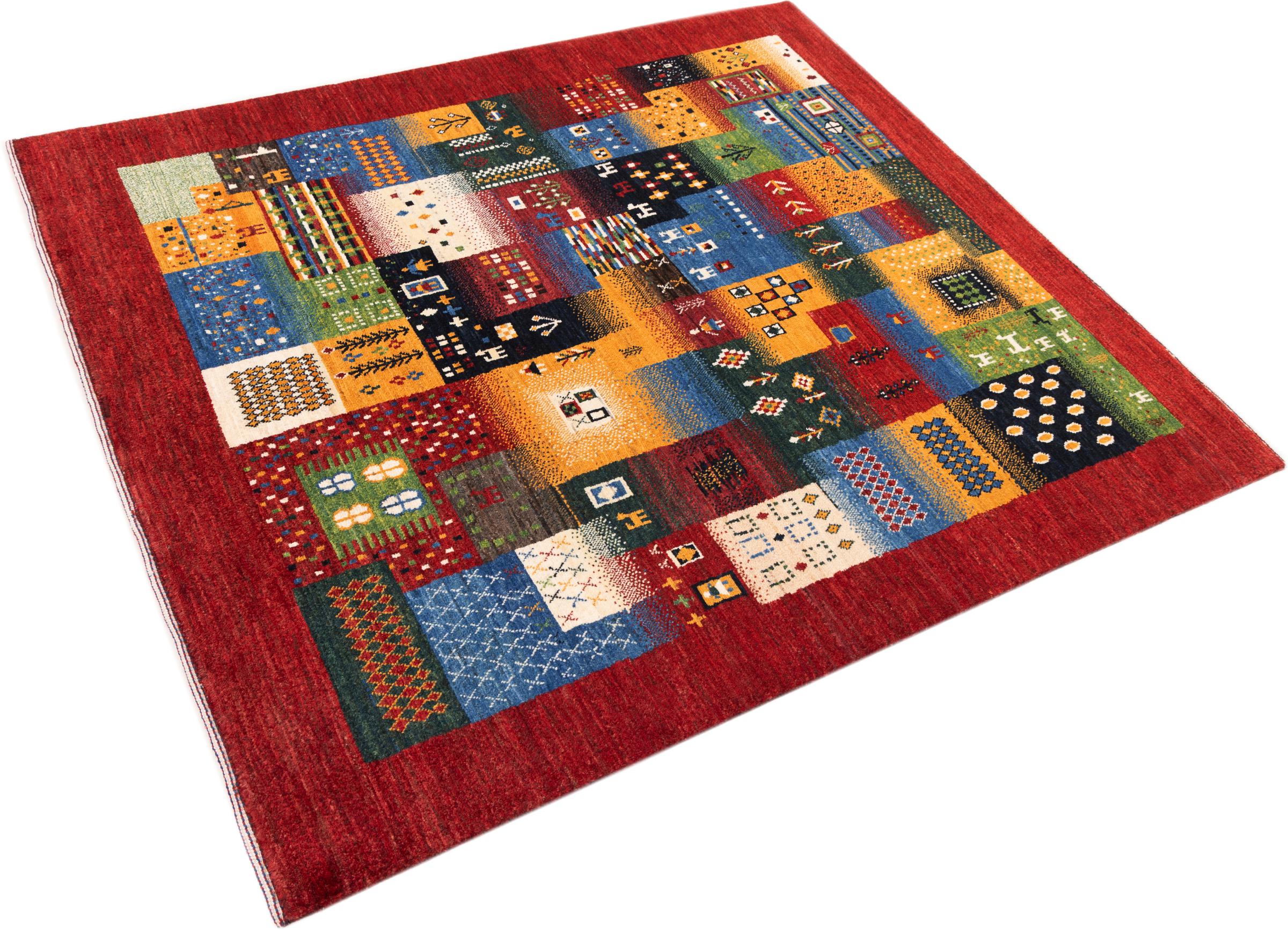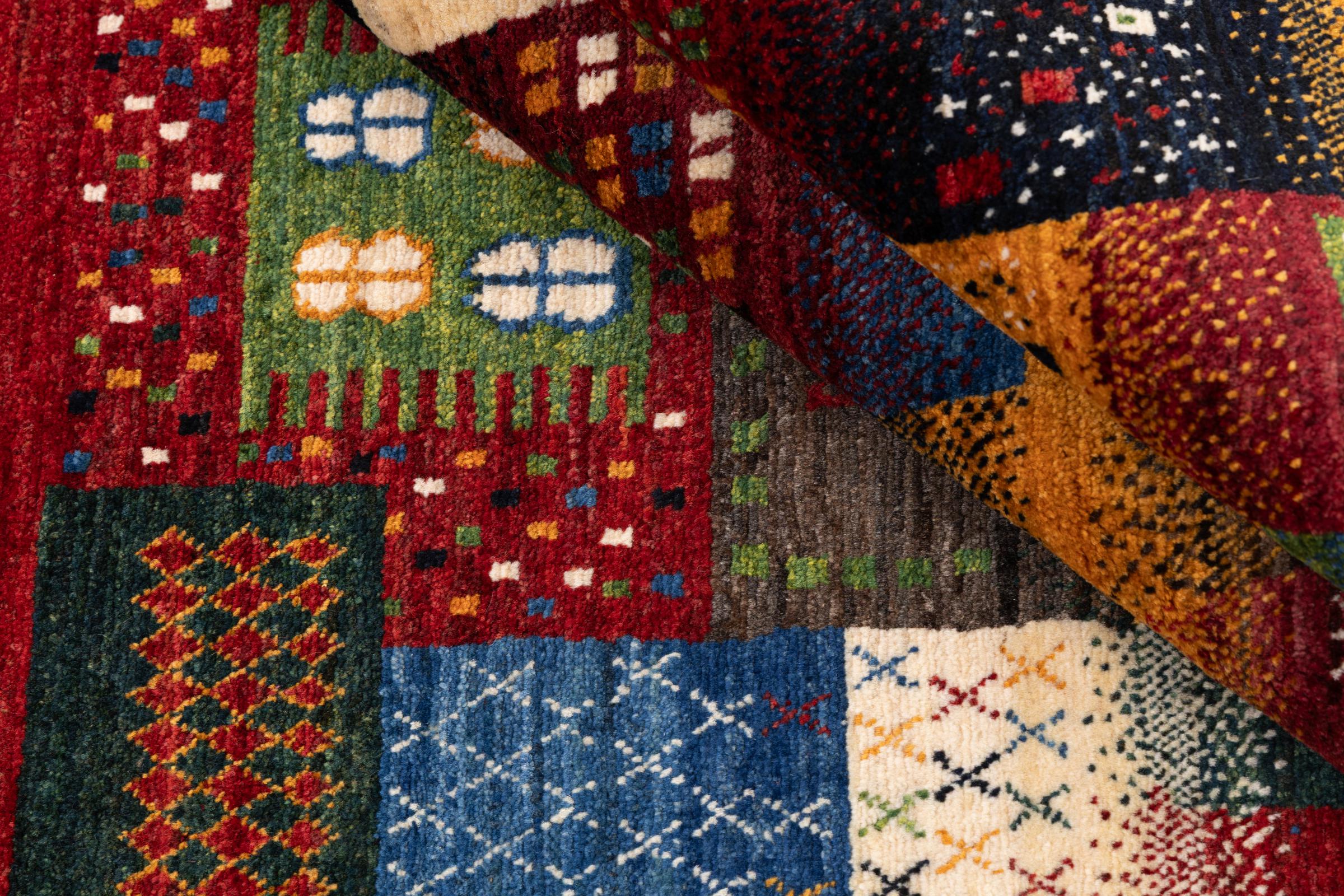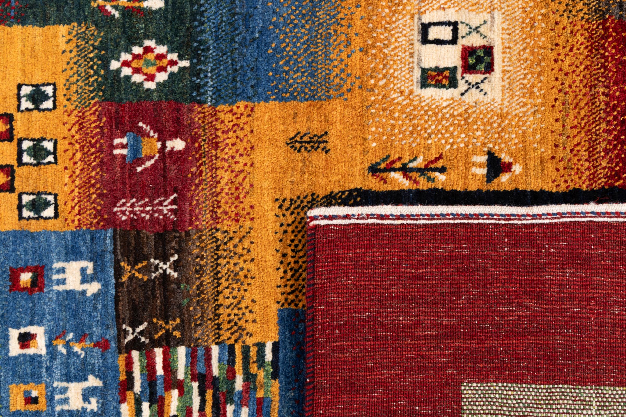 Um refinamento dos já conhecidos tapetes Gabbeh: É este Gabbeh Loribaft persa. Com a sua trama mais fina e o seu belo design, sabe como impressionar. Foi feito à mão por Loren, no sul da Pérsia, com a melhor lã de ovelha fiada à mão. Apenas são utilizados corantes vegetais puros para tingir a lã. Com este tapete, você obtém o mais alto padrão de um tapete Gabbeh para sua casa.