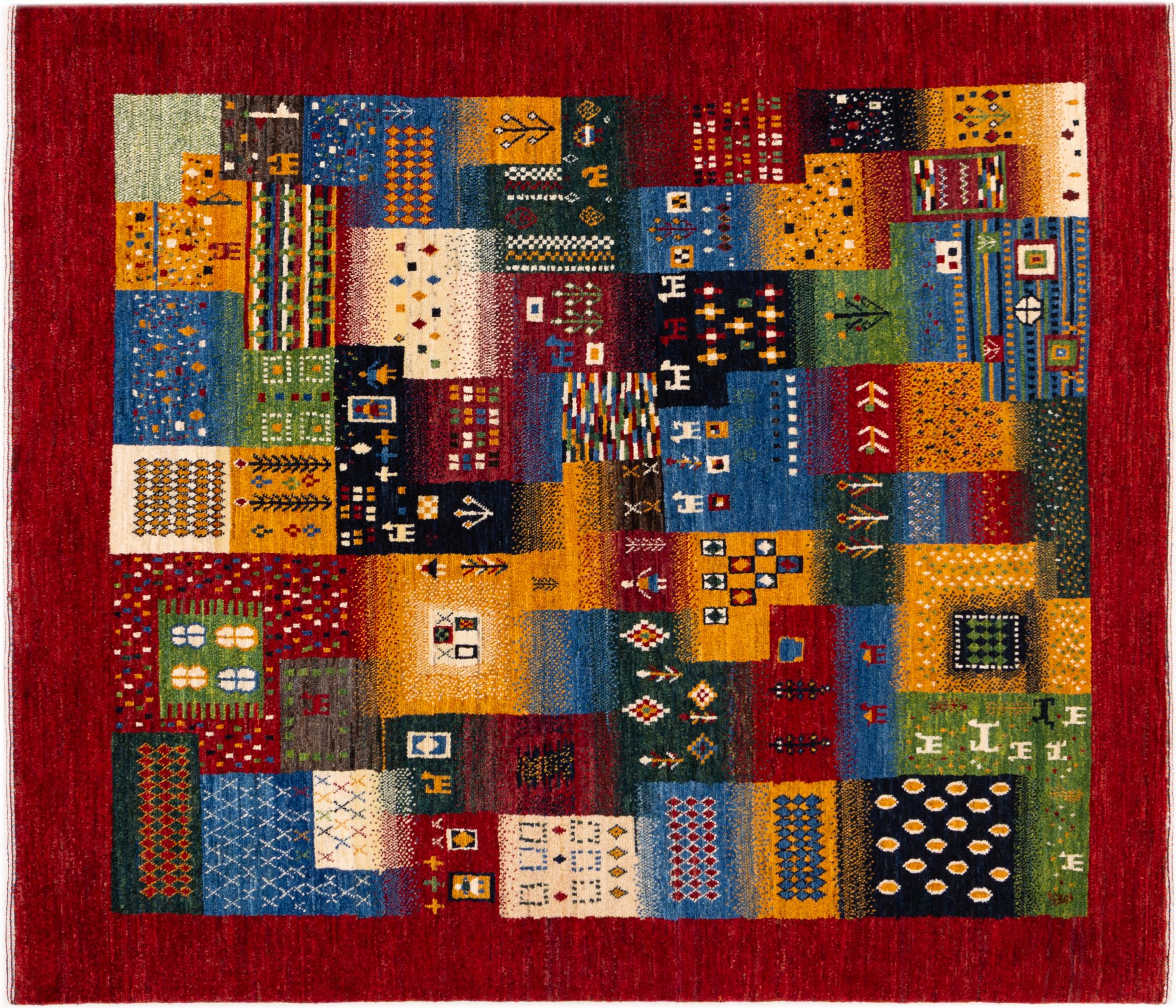 Este belo tapete é um Gabbeh persa e por isso pertence aos tapetes Gabbeh da mais alta qualidade. Os tapetes são atados por nómadas ou semi-nómadas no Irão, de acordo com o artesanato tradicional. Os simples motivos e padrões são, na sua maioria, inspirados pelo ambiente imediato dos nómadas. Por exemplo, camelos, árvores ou arbustos podem ser encontrados nos tapetes tradicionais. Os tapetes Gabbeh persa são feitos de lã proveniente de rebanhos de ovinos criados localmente. Por conseguinte, a lã ainda é, na sua maioria, fiada à mão. Assim, cada um destes tapetes orientais corporiza um carácter único de cultura secular.