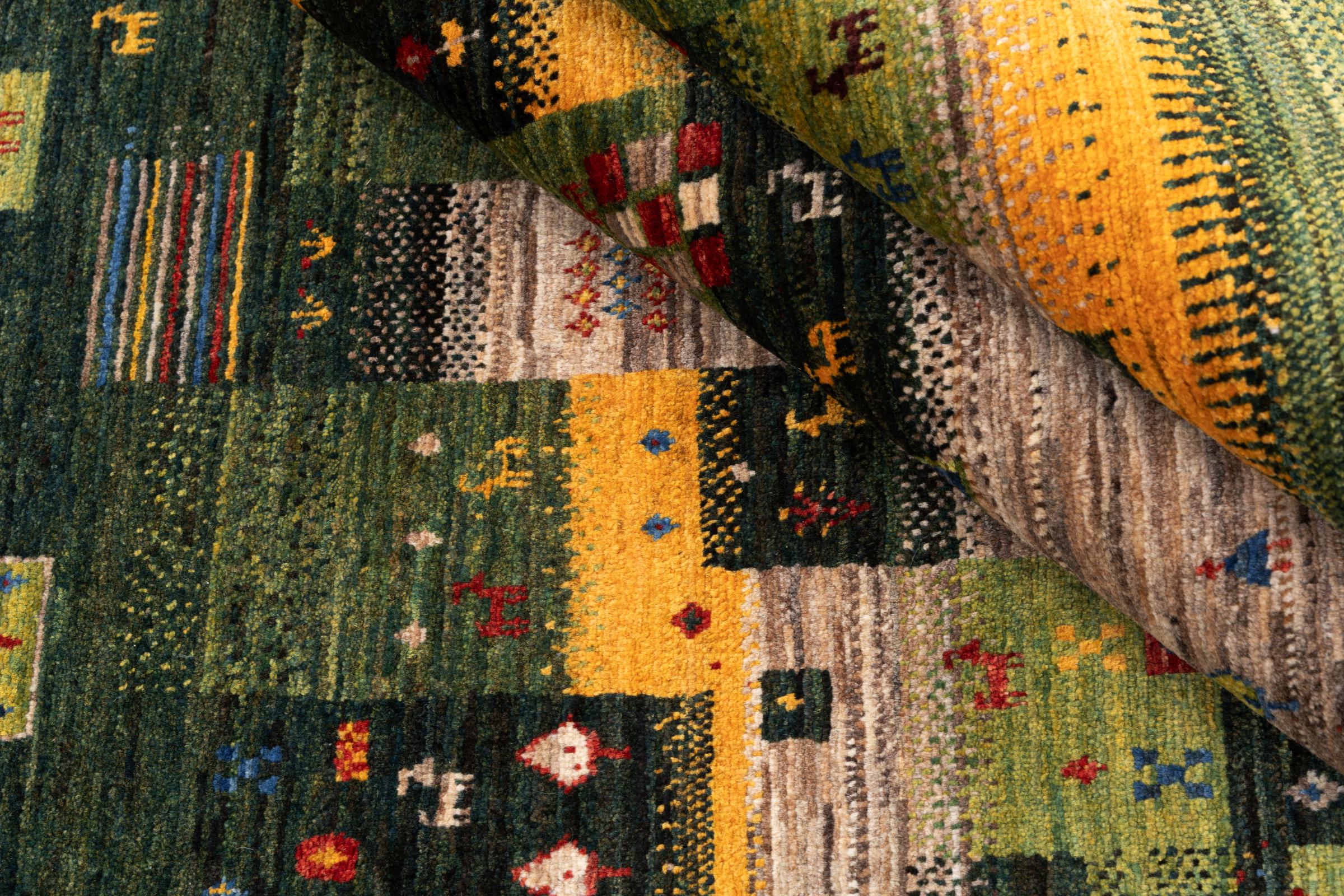 Um refinamento dos já conhecidos tapetes Gabbeh: É este Gabbeh Loribaft persa. Com a sua trama mais fina e o seu belo design, sabe como impressionar. Foi feito à mão por Loren, no sul da Pérsia, com a melhor lã de ovelha fiada à mão. Apenas são utilizados corantes vegetais puros para tingir a lã. Com este tapete, você obtém o mais alto padrão de um tapete Gabbeh para sua casa.