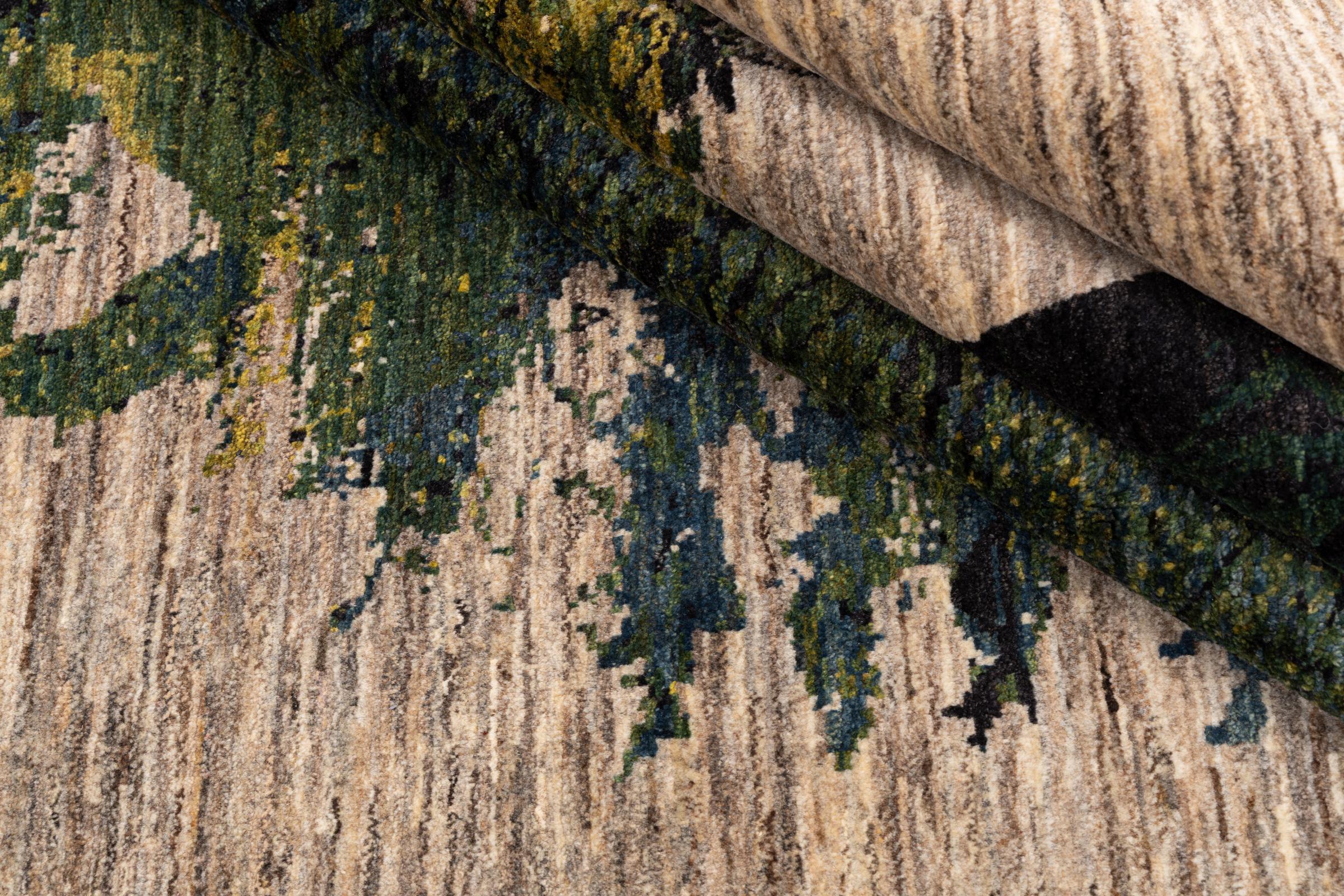 Este tapete é feito de lã de ovelha fiada à mão, da mais alta qualidade. Especialmente no Irão (antiga Pérsia), Afeganistão e Paquistão, a lã ainda é fiada à mão antes do início do nó do tapete. A lã tem provado ser um material natural e extremamente resistente ao longo dos séculos. Entre outras coisas, tem propriedades repelentes de impurezas e isolantes térmicos. Ao mesmo tempo, a lã é incomparavelmente macia e tem um brilho natural.