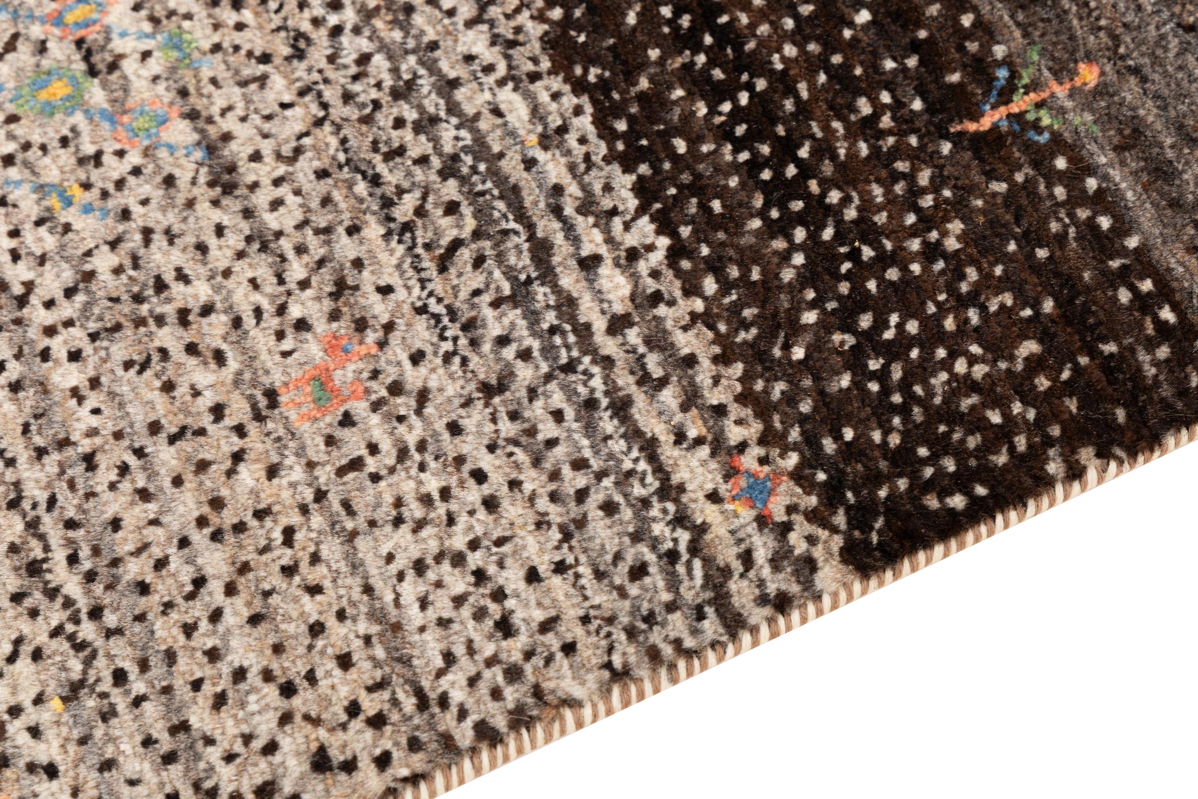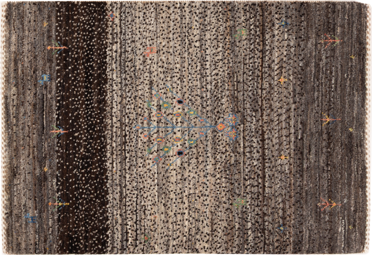 Este belo tapete é um Gabbeh persa e por isso pertence aos tapetes Gabbeh da mais alta qualidade. Os tapetes são atados por nómadas ou semi-nómadas no Irão, de acordo com o artesanato tradicional. Os simples motivos e padrões são, na sua maioria, inspirados pelo ambiente imediato dos nómadas. Por exemplo, camelos, árvores ou arbustos podem ser encontrados nos tapetes tradicionais. Os tapetes Gabbeh persa são feitos de lã proveniente de rebanhos de ovinos criados localmente. Por conseguinte, a lã ainda é, na sua maioria, fiada à mão. Assim, cada um destes tapetes orientais corporiza um carácter único de cultura secular.