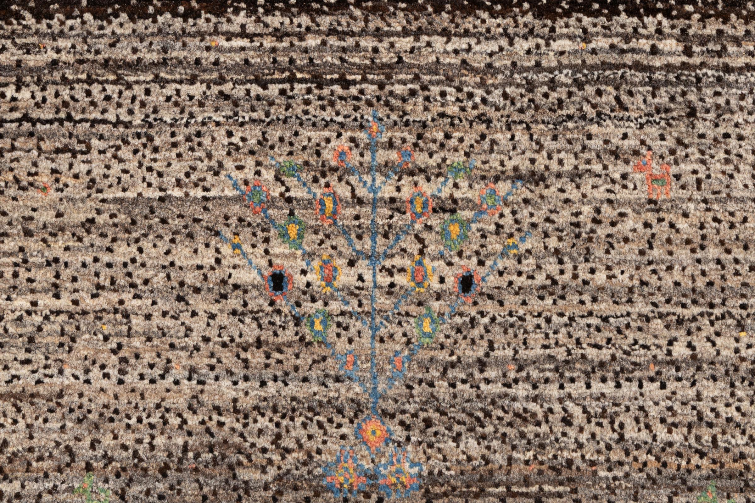 Um refinamento dos já conhecidos tapetes Gabbeh: É este Gabbeh Loribaft persa. Com a sua trama mais fina e o seu belo design, sabe como impressionar. Foi feito à mão por Loren, no sul da Pérsia, com a melhor lã de ovelha fiada à mão. Apenas são utilizados corantes vegetais puros para tingir a lã. Com este tapete, você obtém o mais alto padrão de um tapete Gabbeh para sua casa.