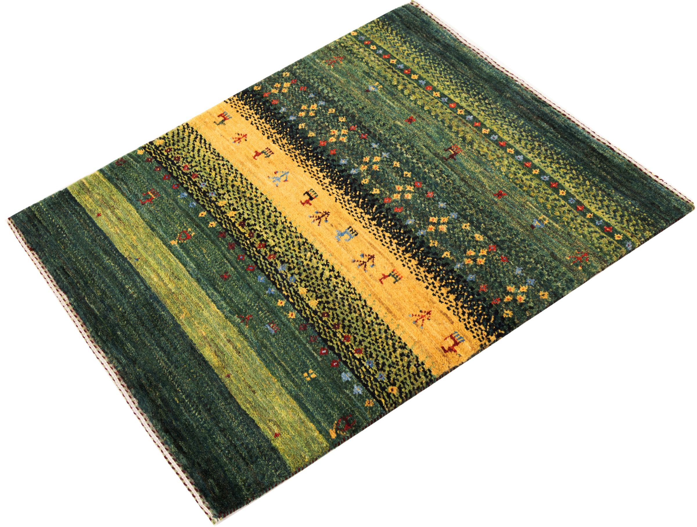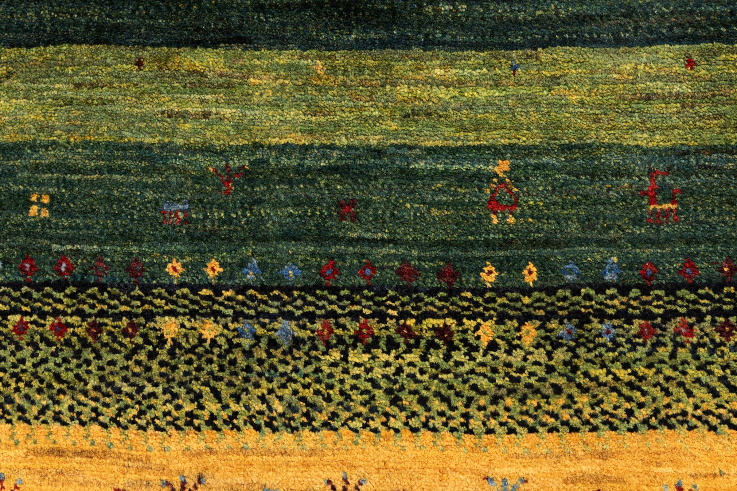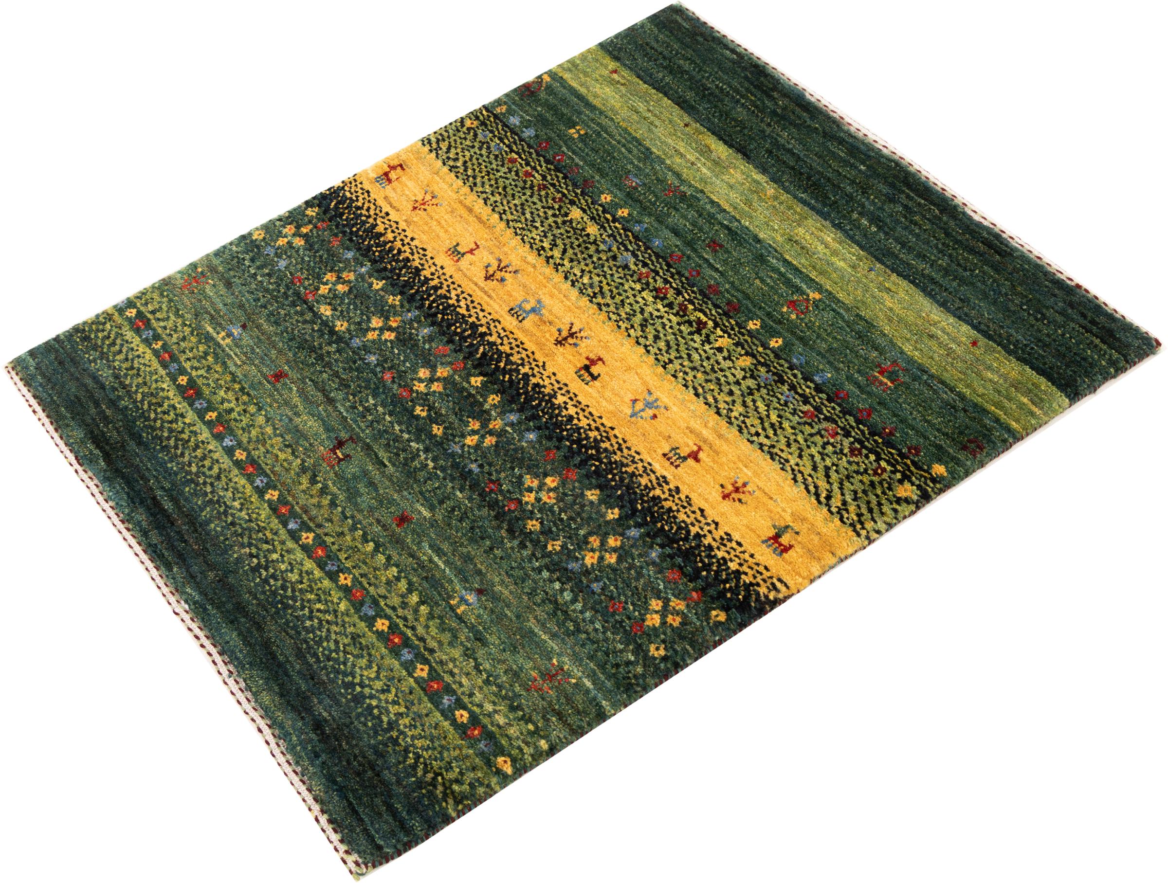 Um refinamento dos já conhecidos tapetes Gabbeh: É este Gabbeh Loribaft persa. Com a sua trama mais fina e o seu belo design, sabe como impressionar. Foi feito à mão por Loren, no sul da Pérsia, com a melhor lã de ovelha fiada à mão. Apenas são utilizados corantes vegetais puros para tingir a lã. Com este tapete, você obtém o mais alto padrão de um tapete Gabbeh para sua casa.