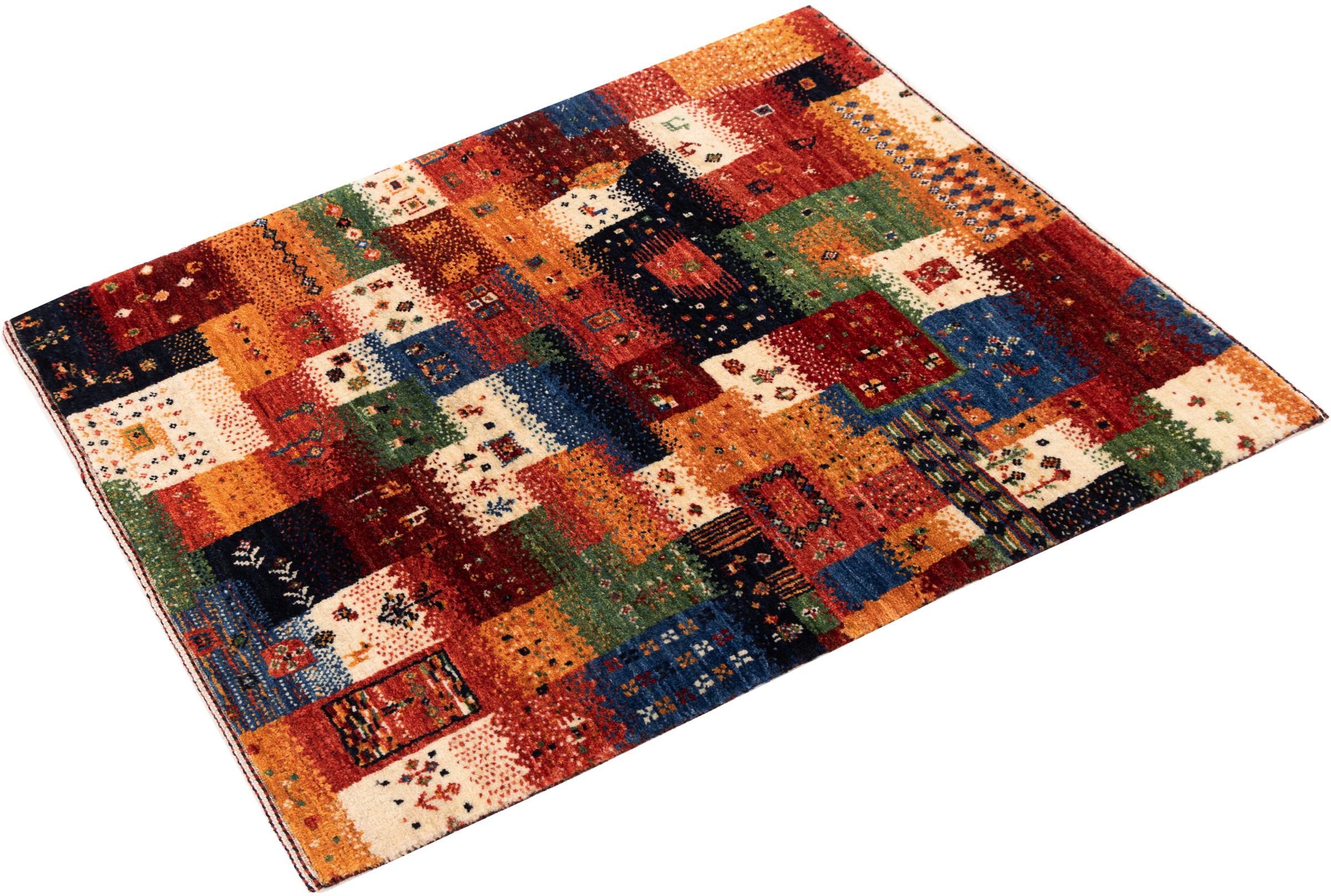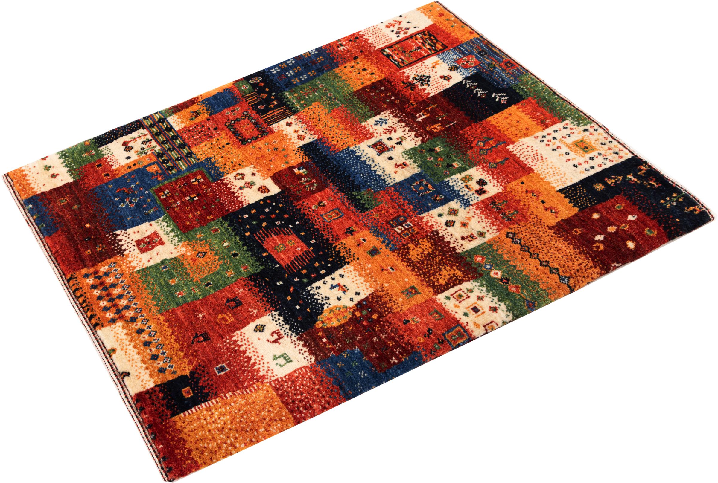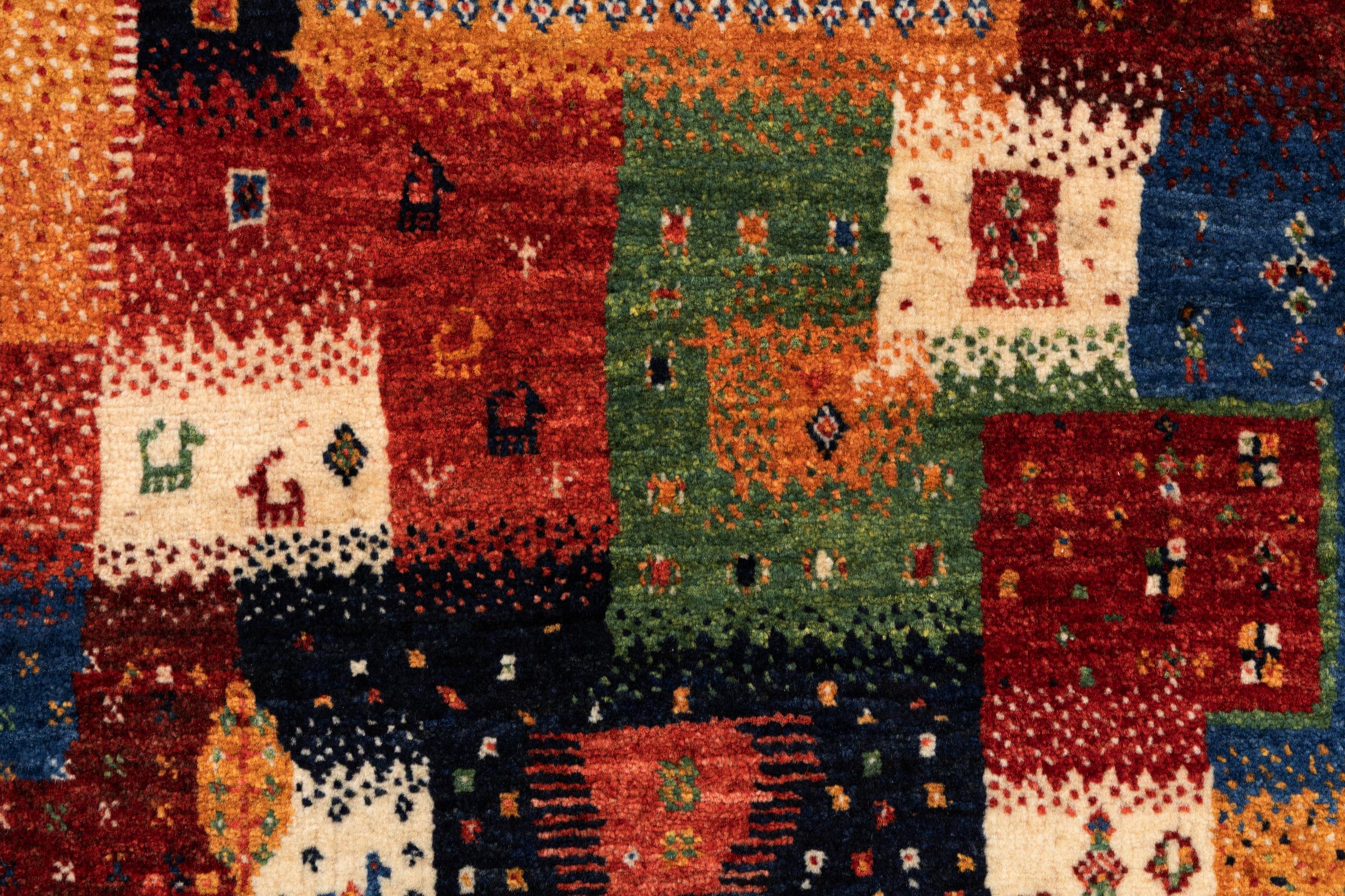 Este belo tapete é um Gabbeh persa e por isso pertence aos tapetes Gabbeh da mais alta qualidade. Os tapetes são atados por nómadas ou semi-nómadas no Irão, de acordo com o artesanato tradicional. Os simples motivos e padrões são, na sua maioria, inspirados pelo ambiente imediato dos nómadas. Por exemplo, camelos, árvores ou arbustos podem ser encontrados nos tapetes tradicionais. Os tapetes Gabbeh persa são feitos de lã proveniente de rebanhos de ovinos criados localmente. Por conseguinte, a lã ainda é, na sua maioria, fiada à mão. Assim, cada um destes tapetes orientais corporiza um carácter único de cultura secular.