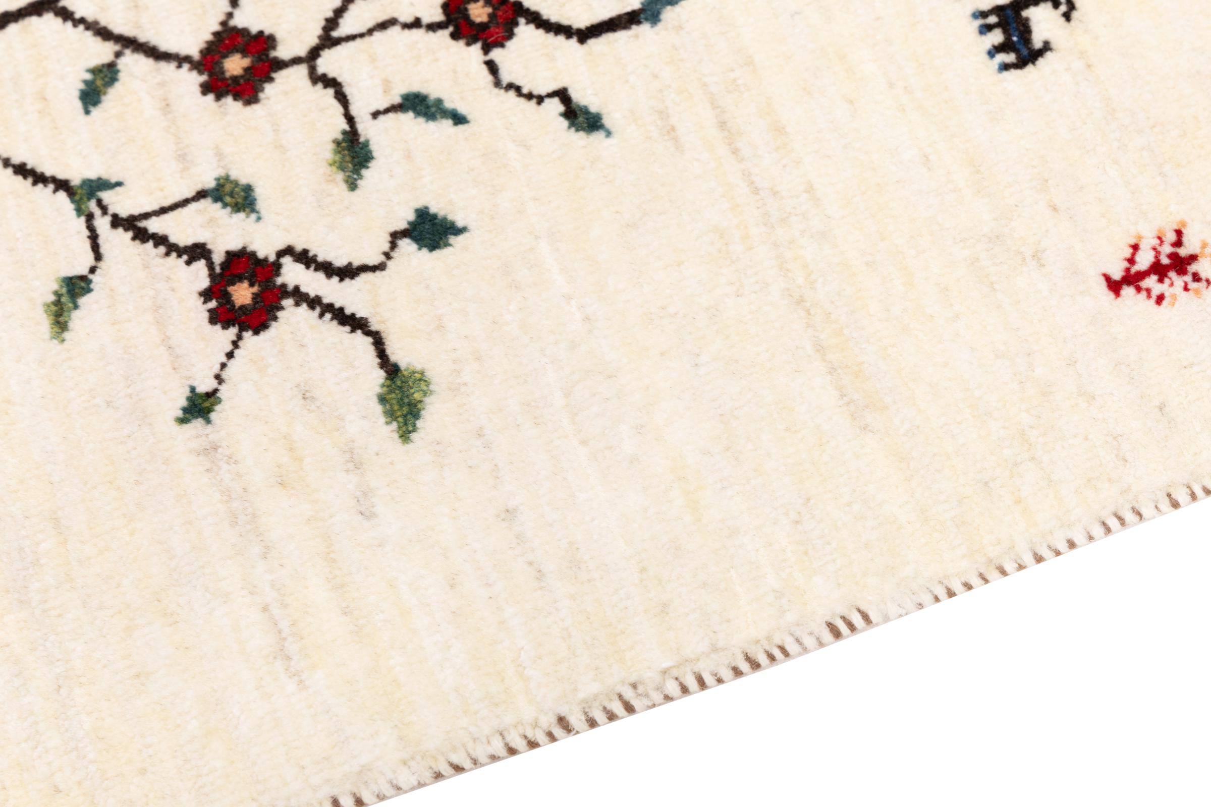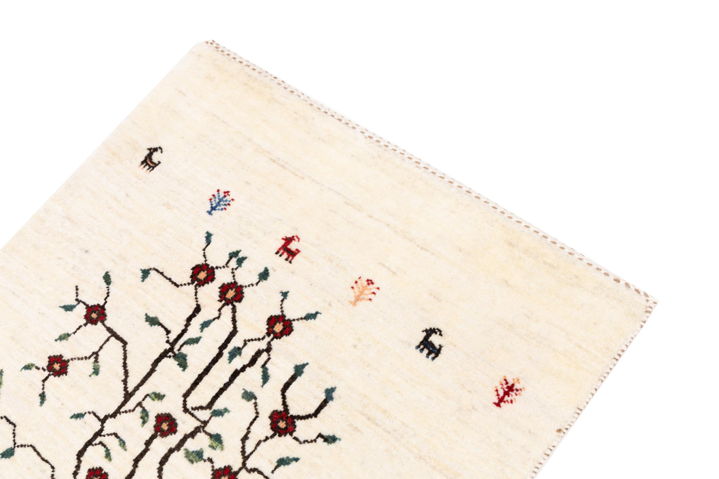 Um refinamento dos já conhecidos tapetes Gabbeh: É este Gabbeh Loribaft persa. Com a sua trama mais fina e o seu belo design, sabe como impressionar. Foi feito à mão por Loren, no sul da Pérsia, com a melhor lã de ovelha fiada à mão. Apenas são utilizados corantes vegetais puros para tingir a lã. Com este tapete, você obtém o mais alto padrão de um tapete Gabbeh para sua casa.