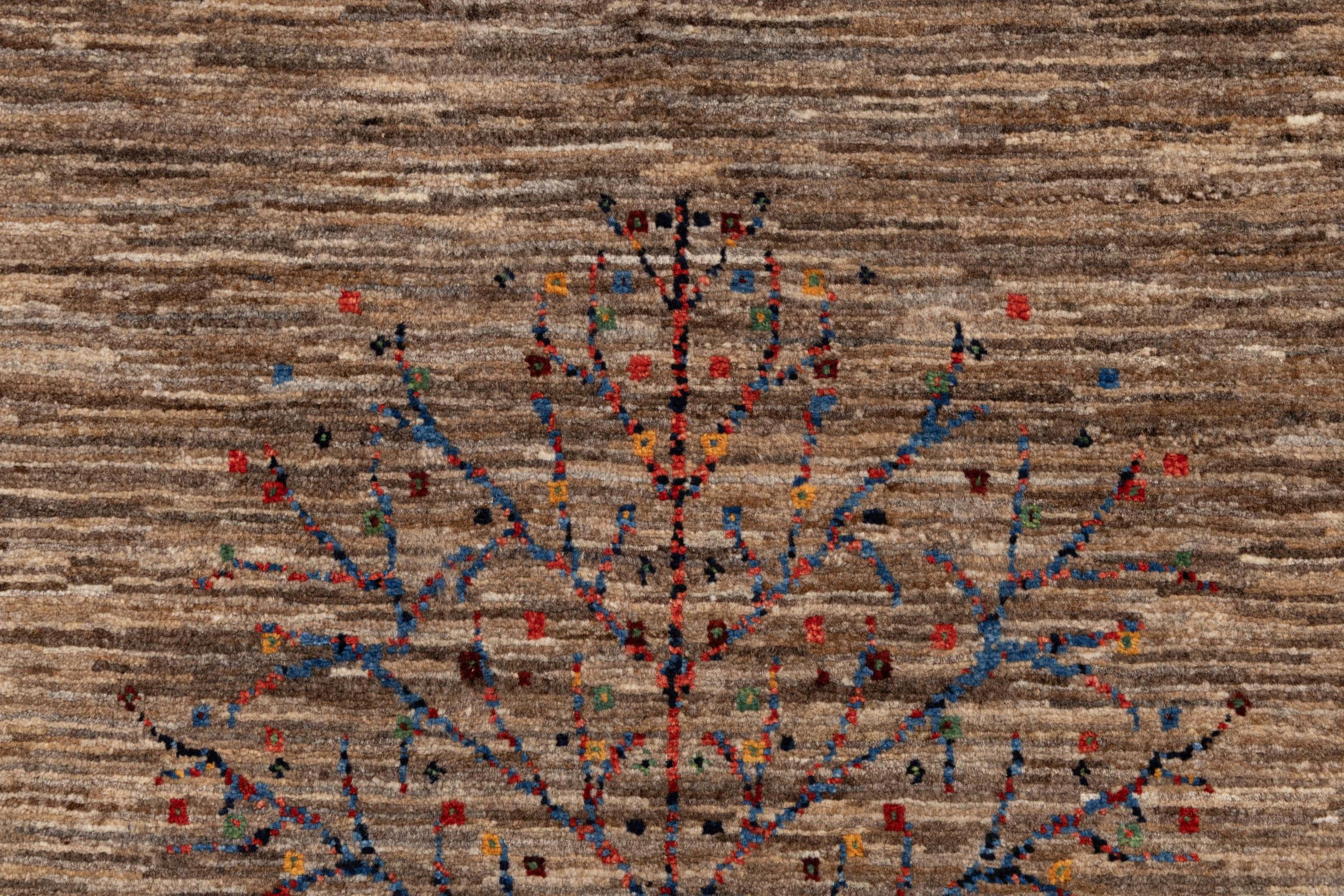 Um refinamento dos já conhecidos tapetes Gabbeh: É este Gabbeh Loribaft persa. Com a sua trama mais fina e o seu belo design, sabe como impressionar. Foi feito à mão por Loren, no sul da Pérsia, com a melhor lã de ovelha fiada à mão. Apenas são utilizados corantes vegetais puros para tingir a lã. Com este tapete, você obtém o mais alto padrão de um tapete Gabbeh para sua casa.