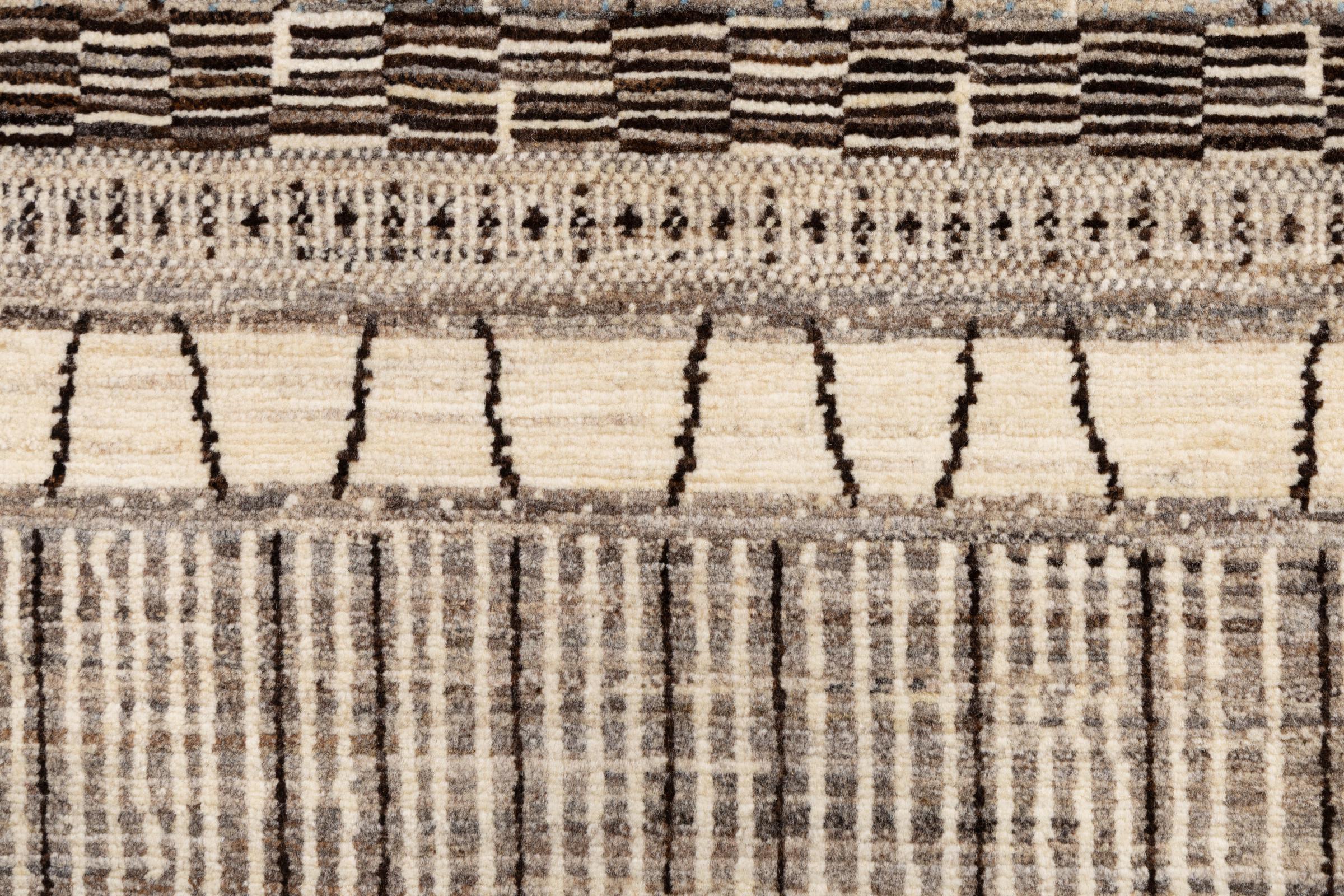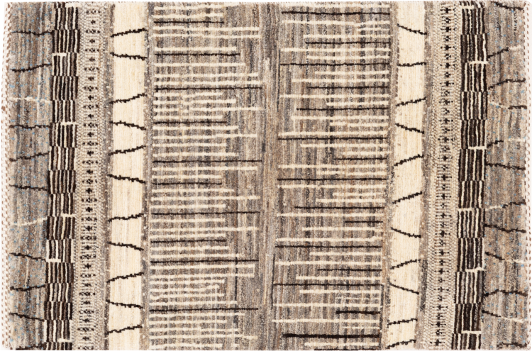 Este tapete é feito de lã de ovelha fiada à mão, da mais alta qualidade. Especialmente no Irão (antiga Pérsia), Afeganistão e Paquistão, a lã ainda é fiada à mão antes do início do nó do tapete. A lã tem provado ser um material natural e extremamente resistente ao longo dos séculos. Entre outras coisas, tem propriedades repelentes de impurezas e isolantes térmicos. Ao mesmo tempo, a lã é incomparavelmente macia e tem um brilho natural.