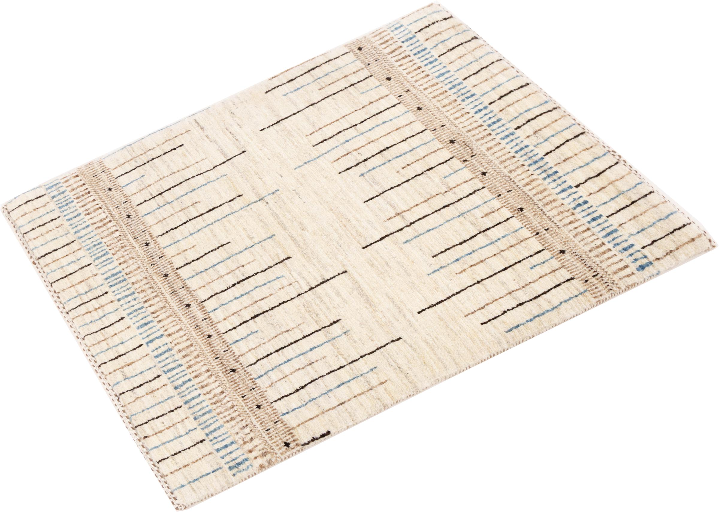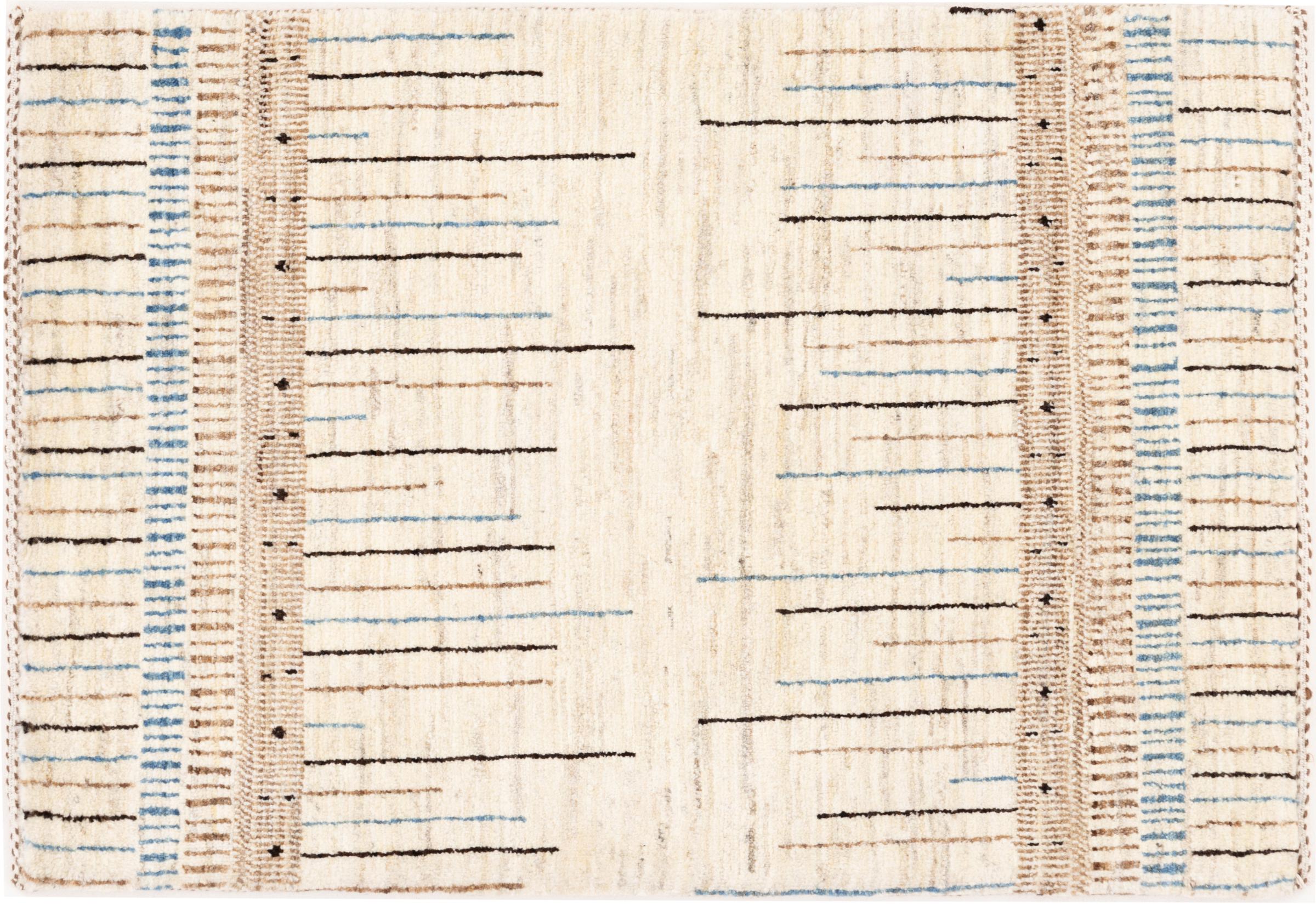 Um refinamento dos já conhecidos tapetes Gabbeh: É este Gabbeh Loribaft persa. Com a sua trama mais fina e o seu belo design, sabe como impressionar. Foi feito à mão por Loren, no sul da Pérsia, com a melhor lã de ovelha fiada à mão. Apenas são utilizados corantes vegetais puros para tingir a lã. Com este tapete, você obtém o mais alto padrão de um tapete Gabbeh para sua casa.