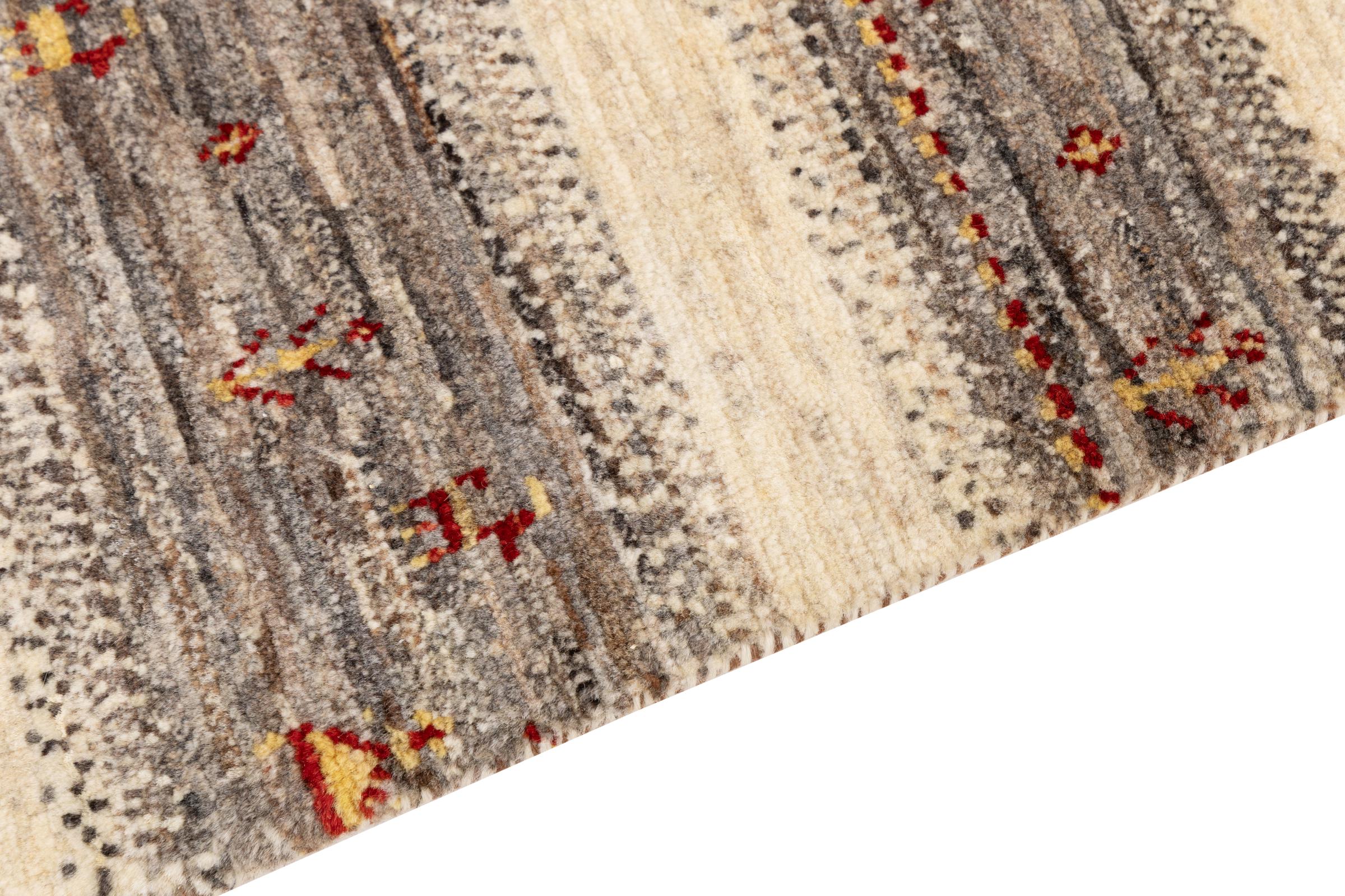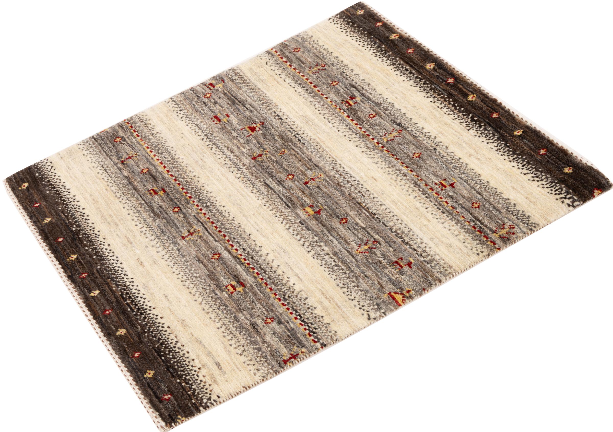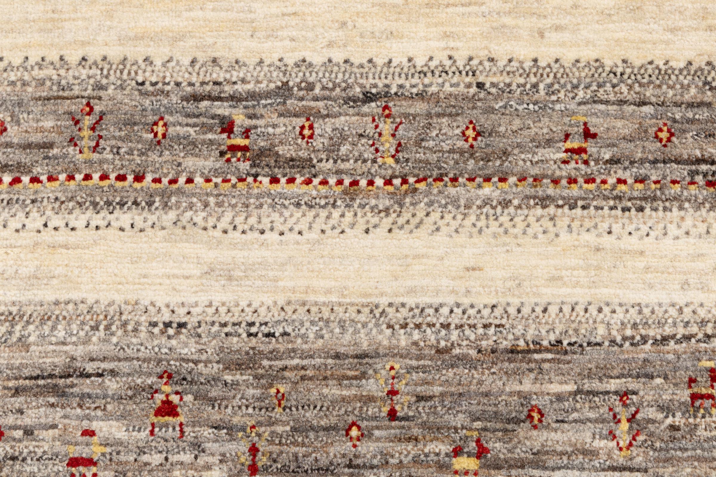 Um refinamento dos já conhecidos tapetes Gabbeh: É este Gabbeh Loribaft persa. Com a sua trama mais fina e o seu belo design, sabe como impressionar. Foi feito à mão por Loren, no sul da Pérsia, com a melhor lã de ovelha fiada à mão. Apenas são utilizados corantes vegetais puros para tingir a lã. Com este tapete, você obtém o mais alto padrão de um tapete Gabbeh para sua casa.