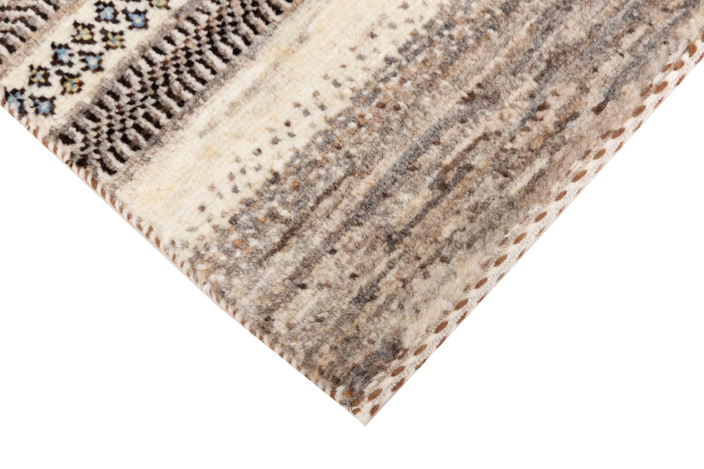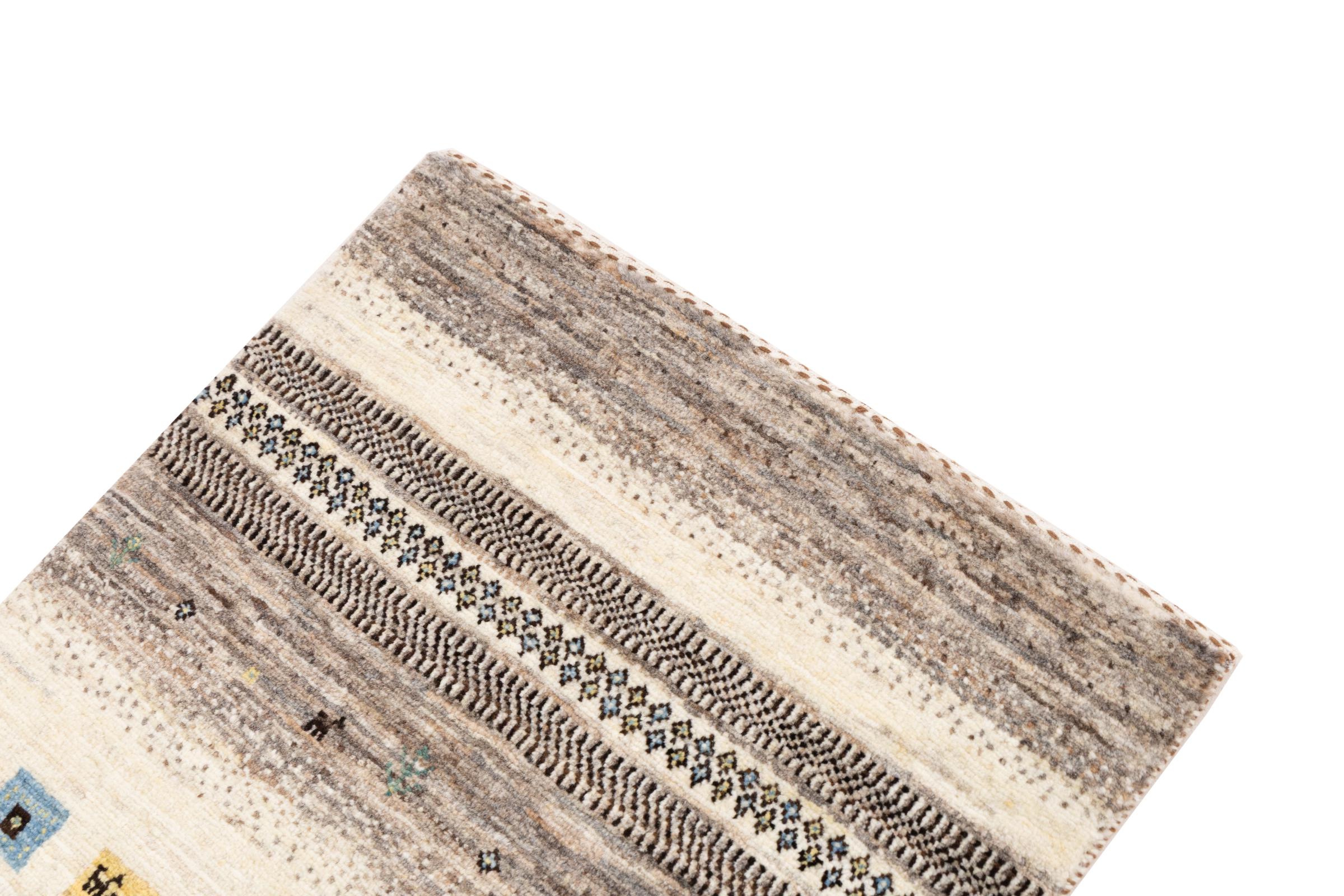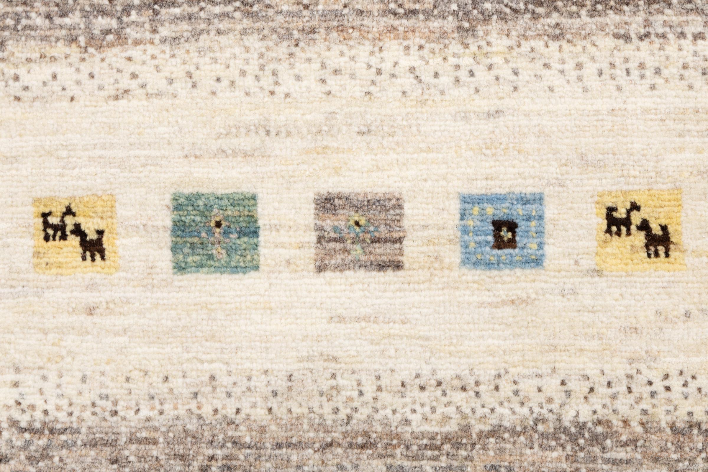 Um refinamento dos já conhecidos tapetes Gabbeh: É este Gabbeh Loribaft persa. Com a sua trama mais fina e o seu belo design, sabe como impressionar. Foi feito à mão por Loren, no sul da Pérsia, com a melhor lã de ovelha fiada à mão. Apenas são utilizados corantes vegetais puros para tingir a lã. Com este tapete, você obtém o mais alto padrão de um tapete Gabbeh para sua casa.