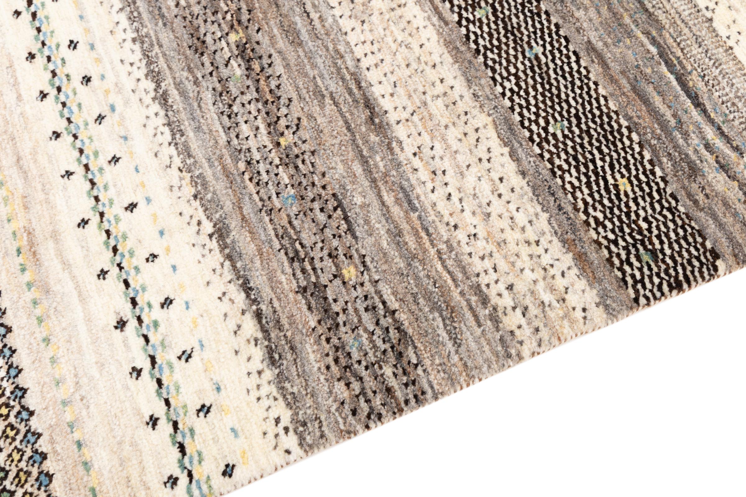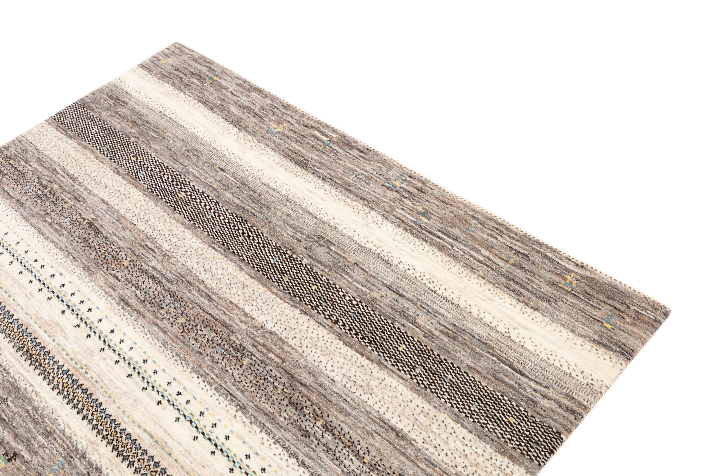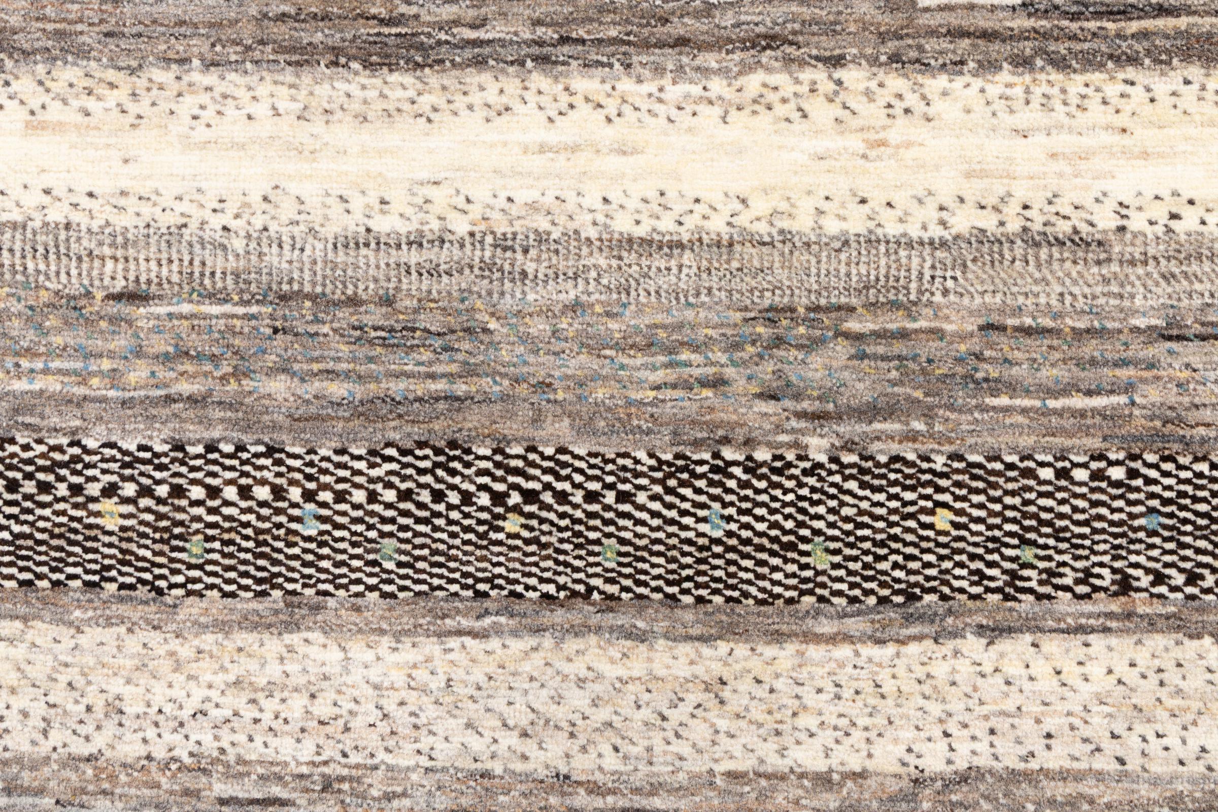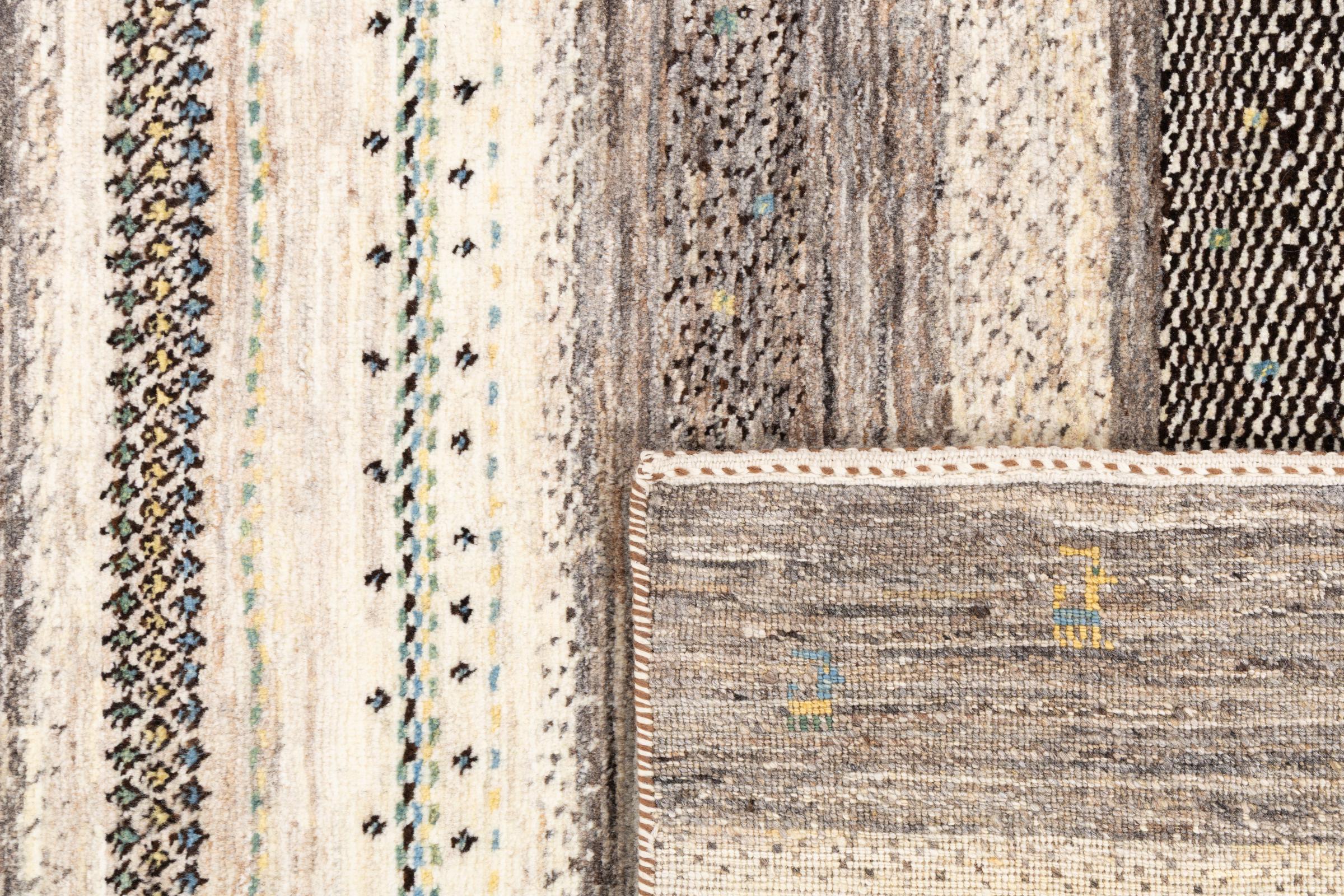Um refinamento dos já conhecidos tapetes Gabbeh: É este Gabbeh Loribaft persa. Com a sua trama mais fina e o seu belo design, sabe como impressionar. Foi feito à mão por Loren, no sul da Pérsia, com a melhor lã de ovelha fiada à mão. Apenas são utilizados corantes vegetais puros para tingir a lã. Com este tapete, você obtém o mais alto padrão de um tapete Gabbeh para sua casa.