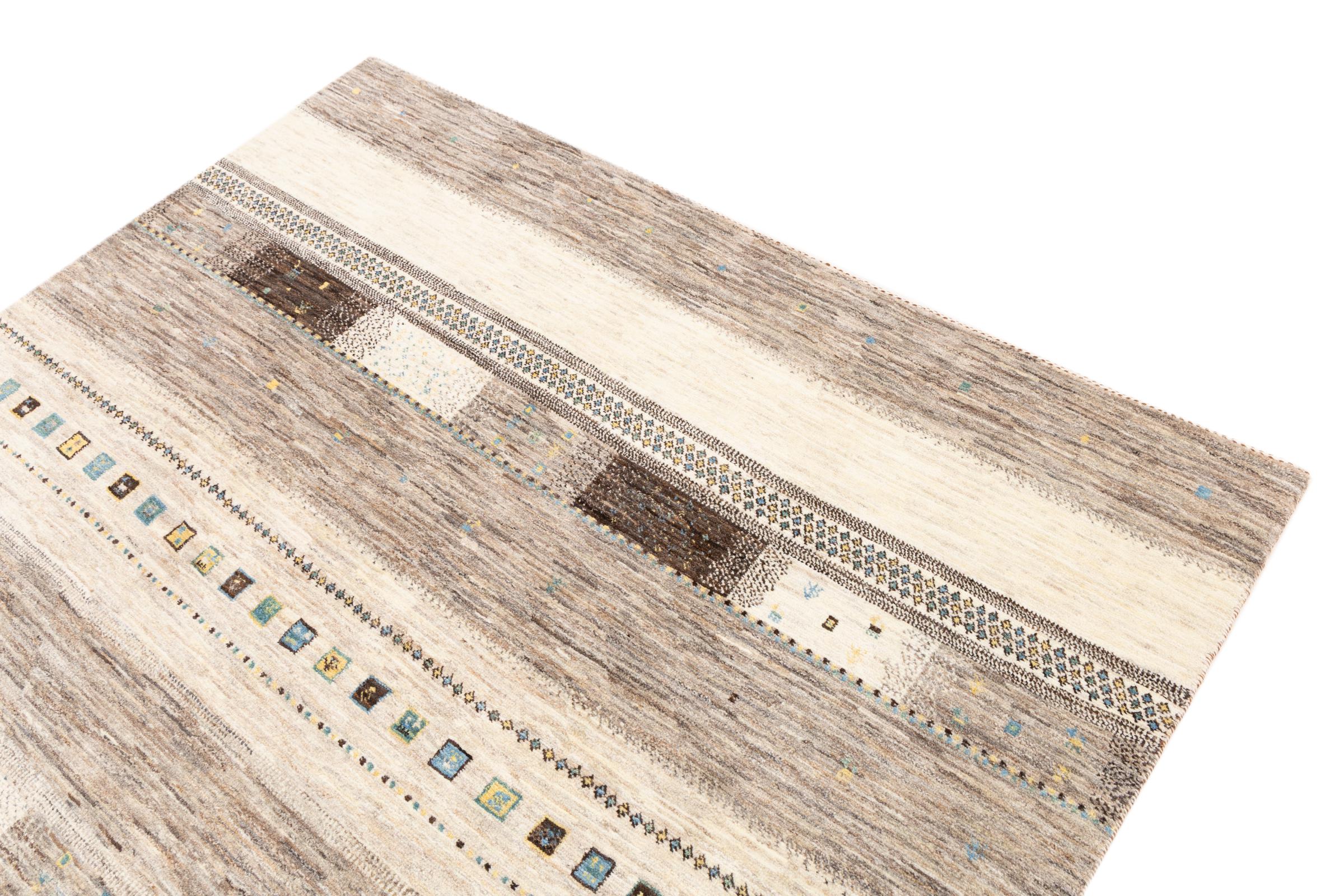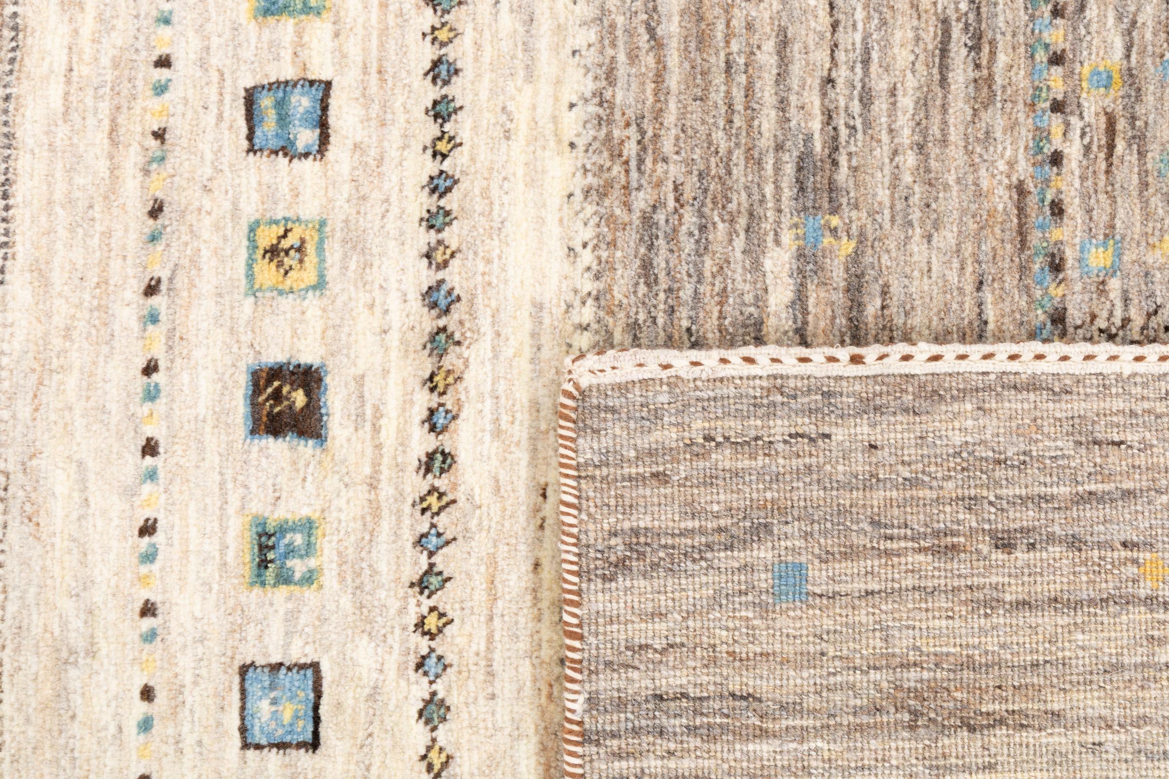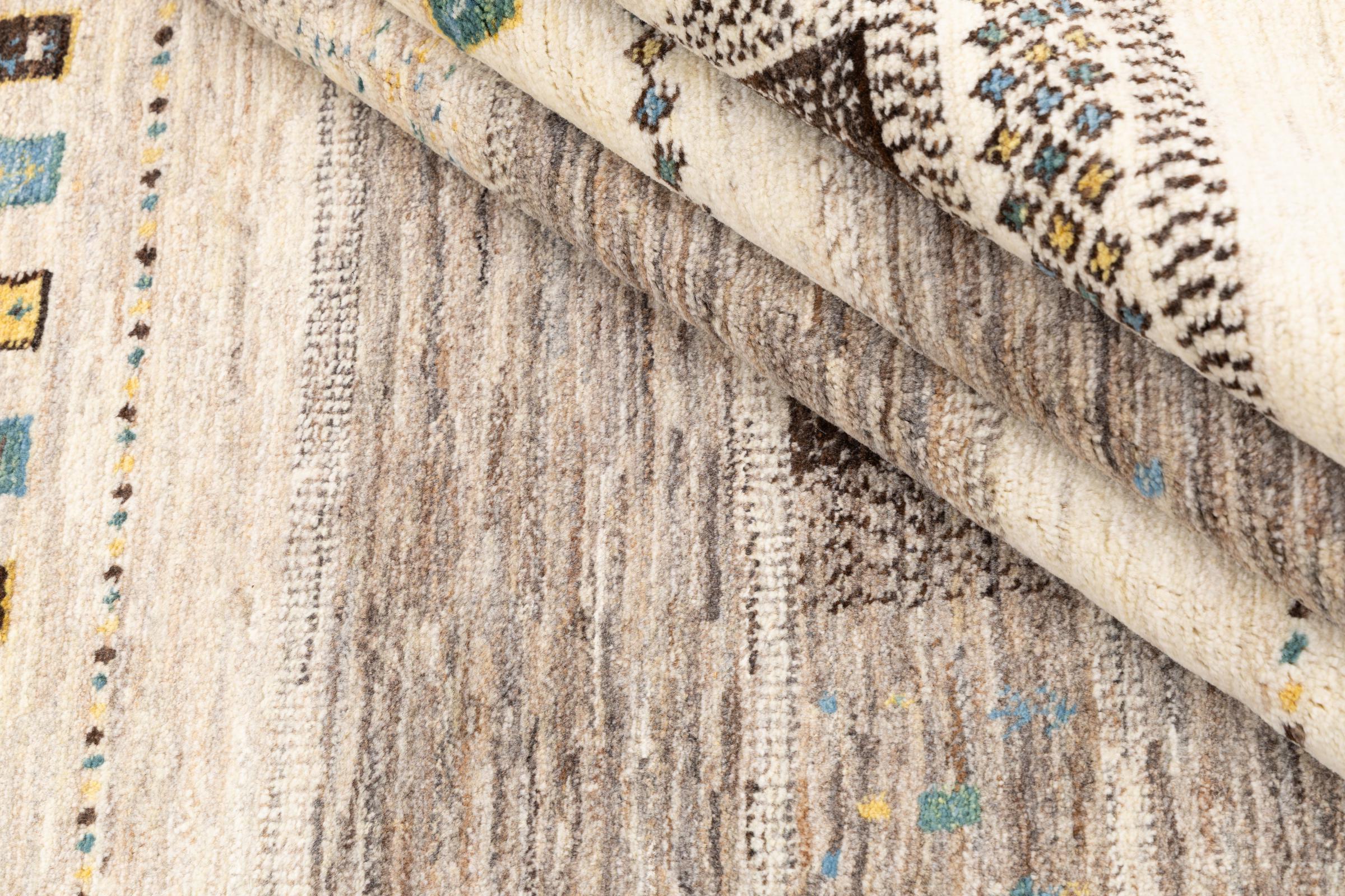Um refinamento dos já conhecidos tapetes Gabbeh: É este Gabbeh Loribaft persa. Com a sua trama mais fina e o seu belo design, sabe como impressionar. Foi feito à mão por Loren, no sul da Pérsia, com a melhor lã de ovelha fiada à mão. Apenas são utilizados corantes vegetais puros para tingir a lã. Com este tapete, você obtém o mais alto padrão de um tapete Gabbeh para sua casa.