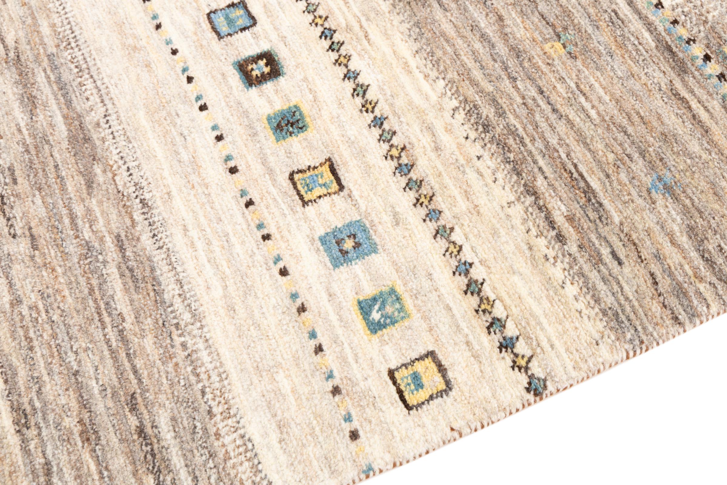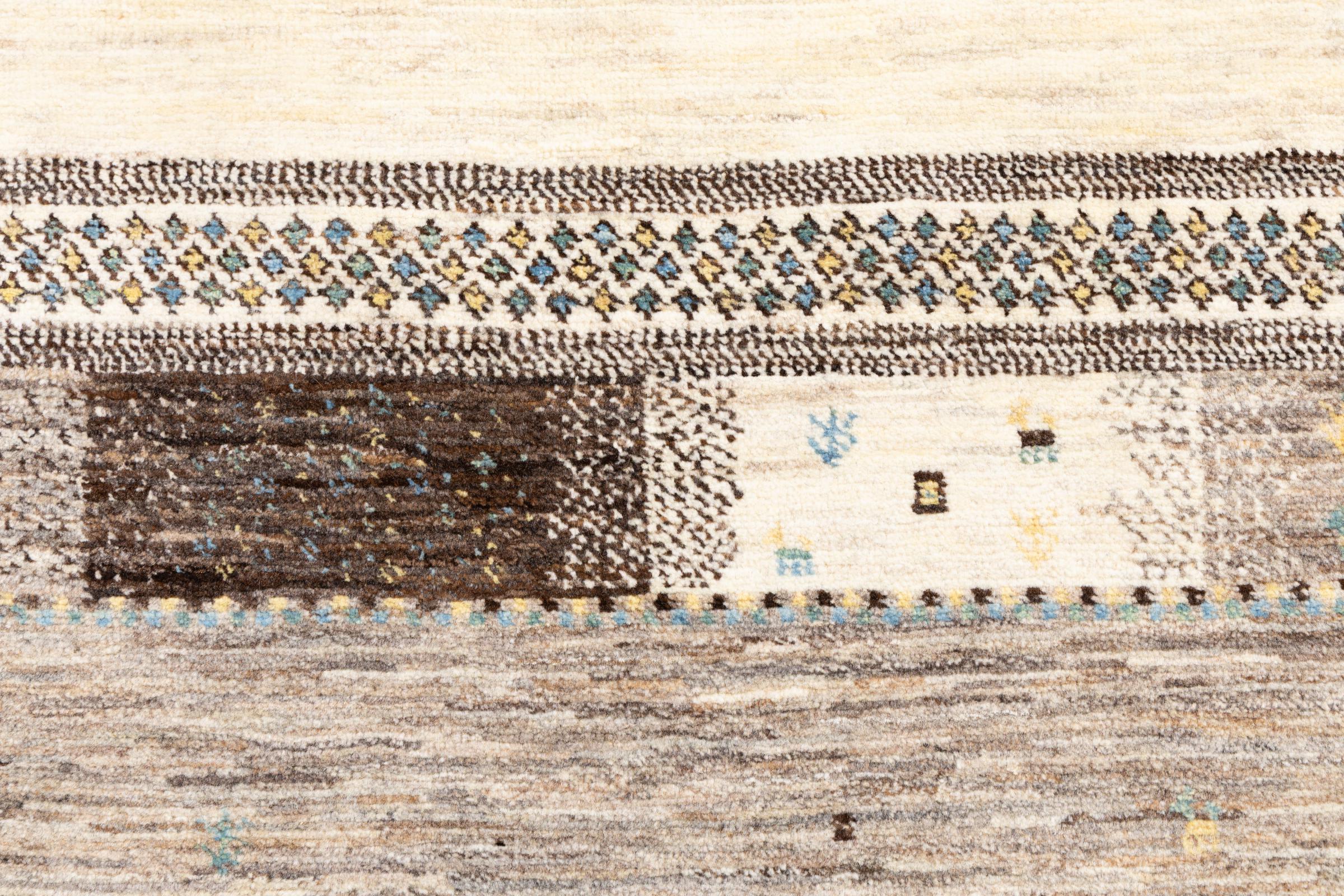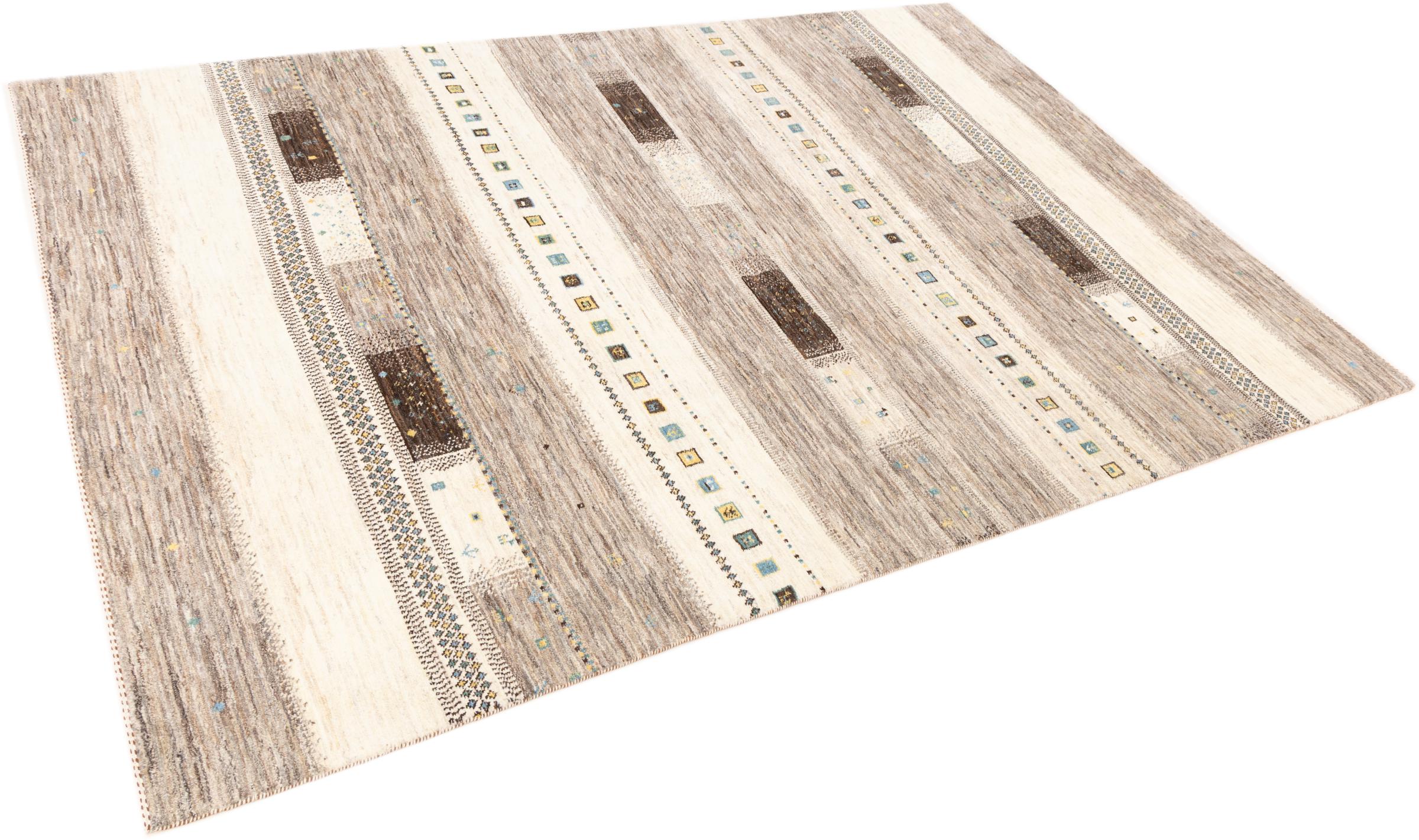 Um refinamento dos já conhecidos tapetes Gabbeh: É este Gabbeh Loribaft persa. Com a sua trama mais fina e o seu belo design, sabe como impressionar. Foi feito à mão por Loren, no sul da Pérsia, com a melhor lã de ovelha fiada à mão. Apenas são utilizados corantes vegetais puros para tingir a lã. Com este tapete, você obtém o mais alto padrão de um tapete Gabbeh para sua casa.