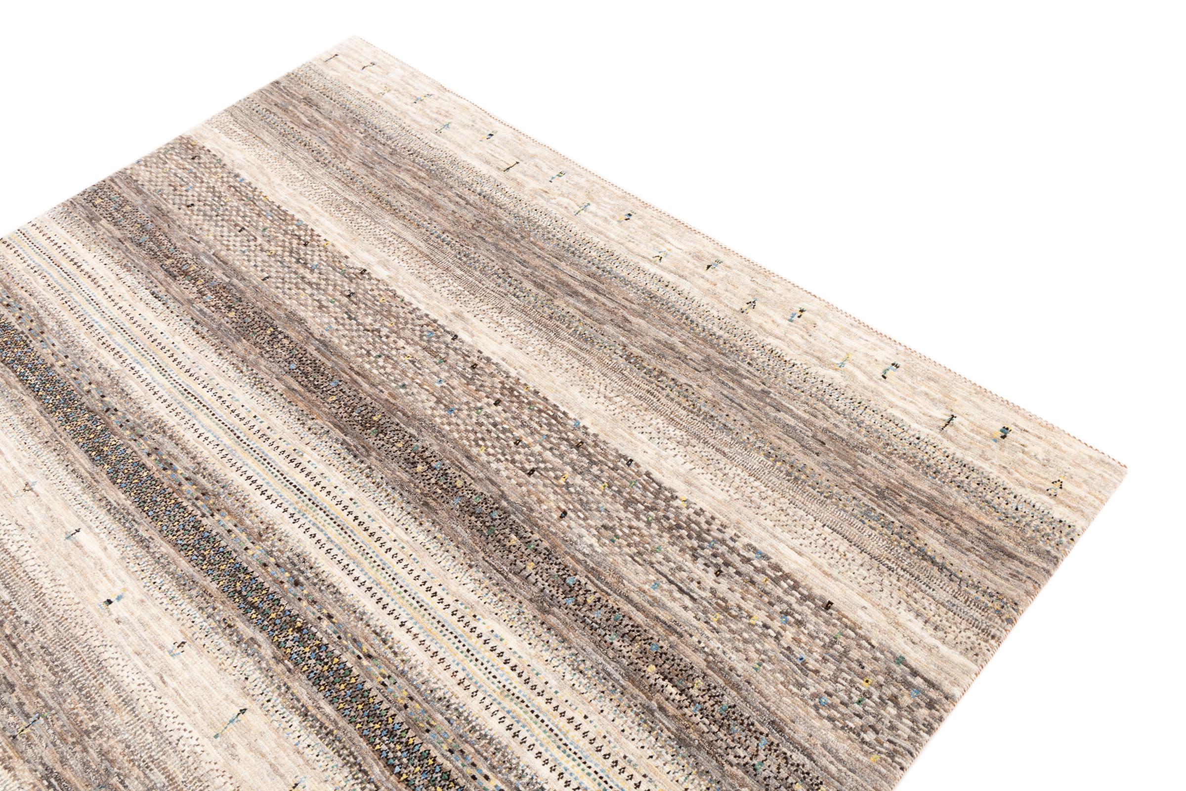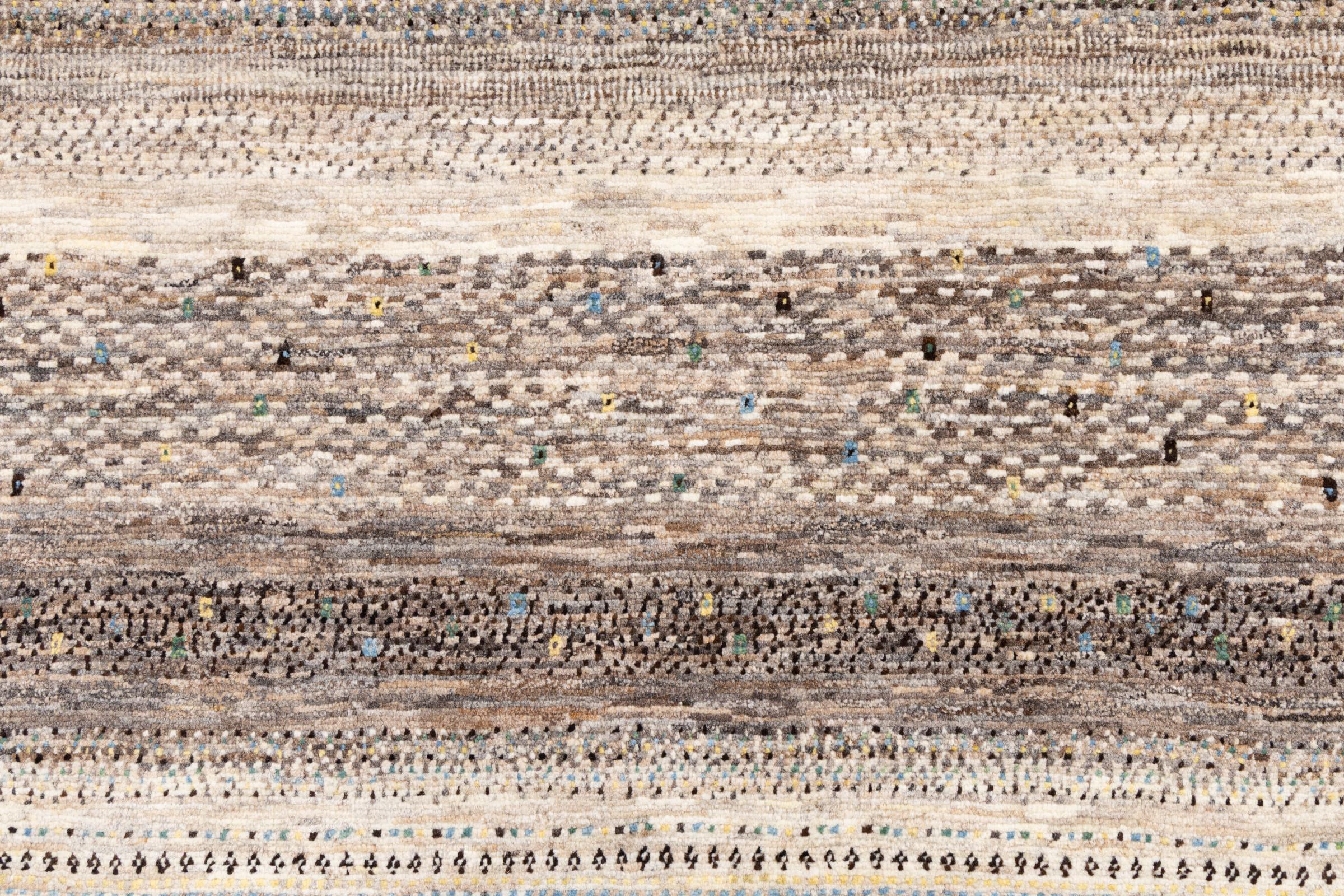 Um refinamento dos já conhecidos tapetes Gabbeh: É este Gabbeh Loribaft persa. Com a sua trama mais fina e o seu belo design, sabe como impressionar. Foi feito à mão por Loren, no sul da Pérsia, com a melhor lã de ovelha fiada à mão. Apenas são utilizados corantes vegetais puros para tingir a lã. Com este tapete, você obtém o mais alto padrão de um tapete Gabbeh para sua casa.