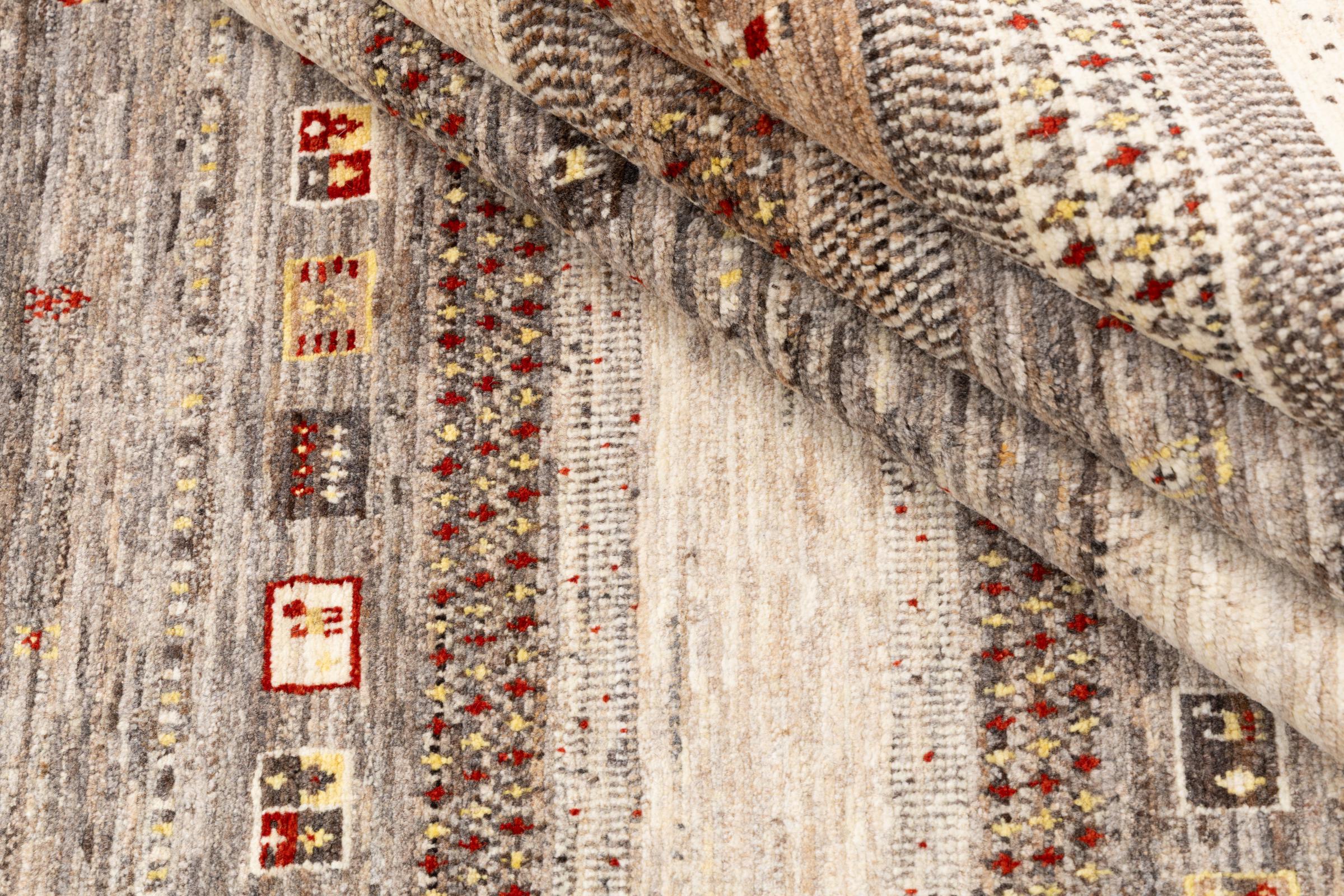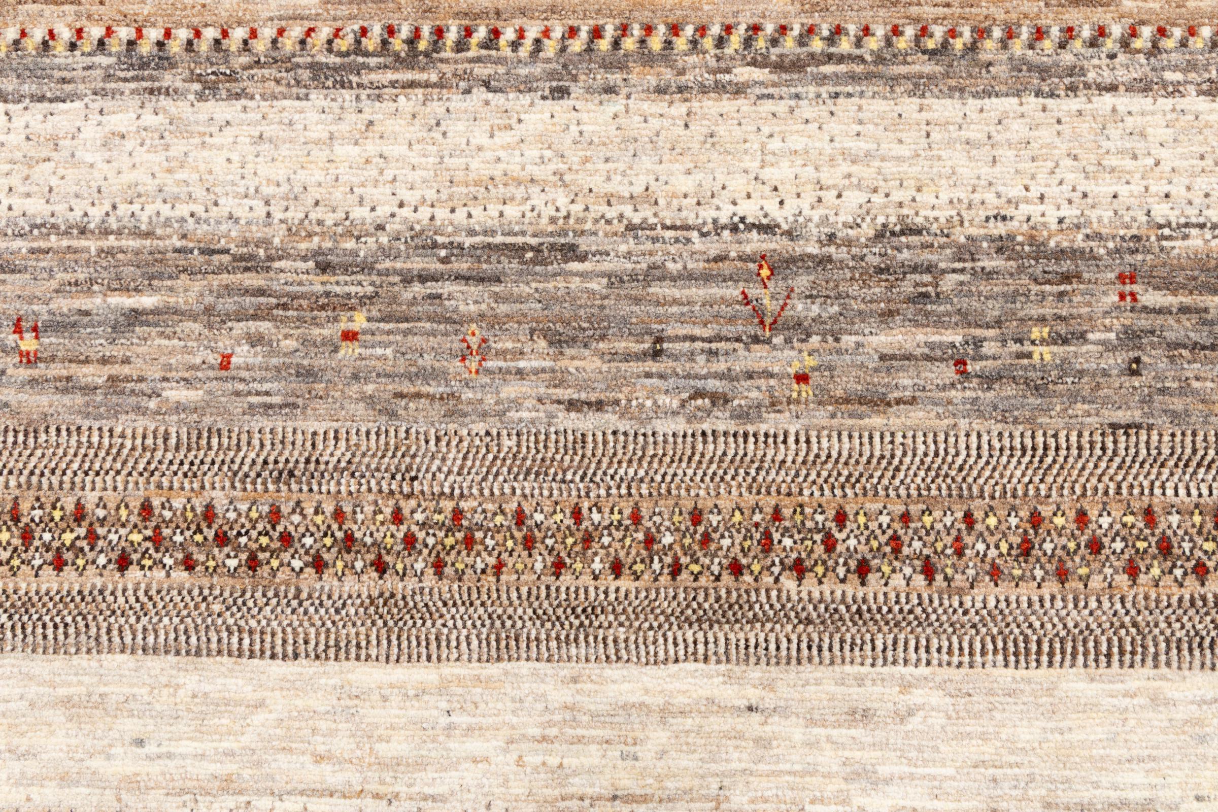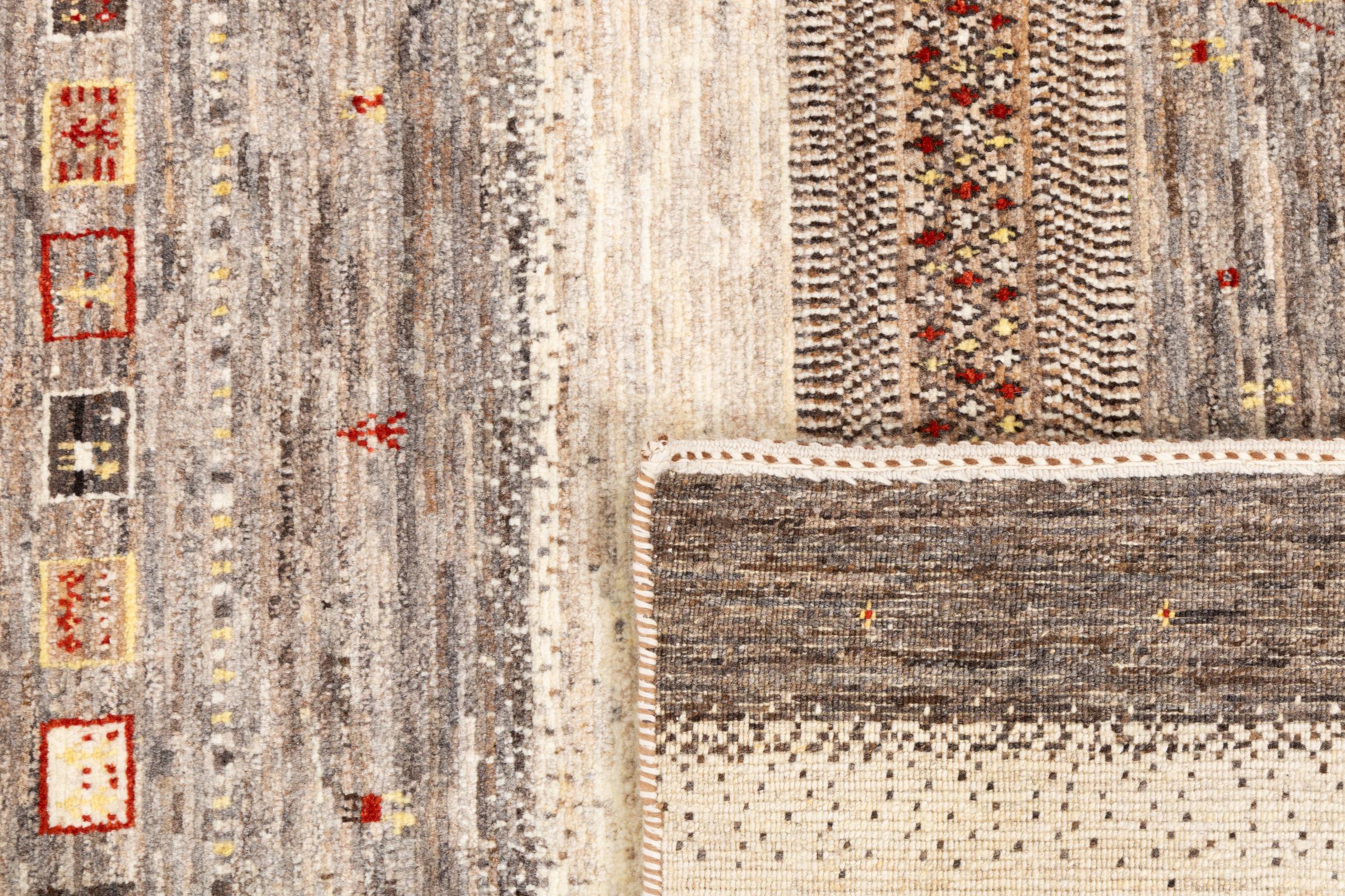 Um refinamento dos já conhecidos tapetes Gabbeh: É este Gabbeh Loribaft persa. Com a sua trama mais fina e o seu belo design, sabe como impressionar. Foi feito à mão por Loren, no sul da Pérsia, com a melhor lã de ovelha fiada à mão. Apenas são utilizados corantes vegetais puros para tingir a lã. Com este tapete, você obtém o mais alto padrão de um tapete Gabbeh para sua casa.