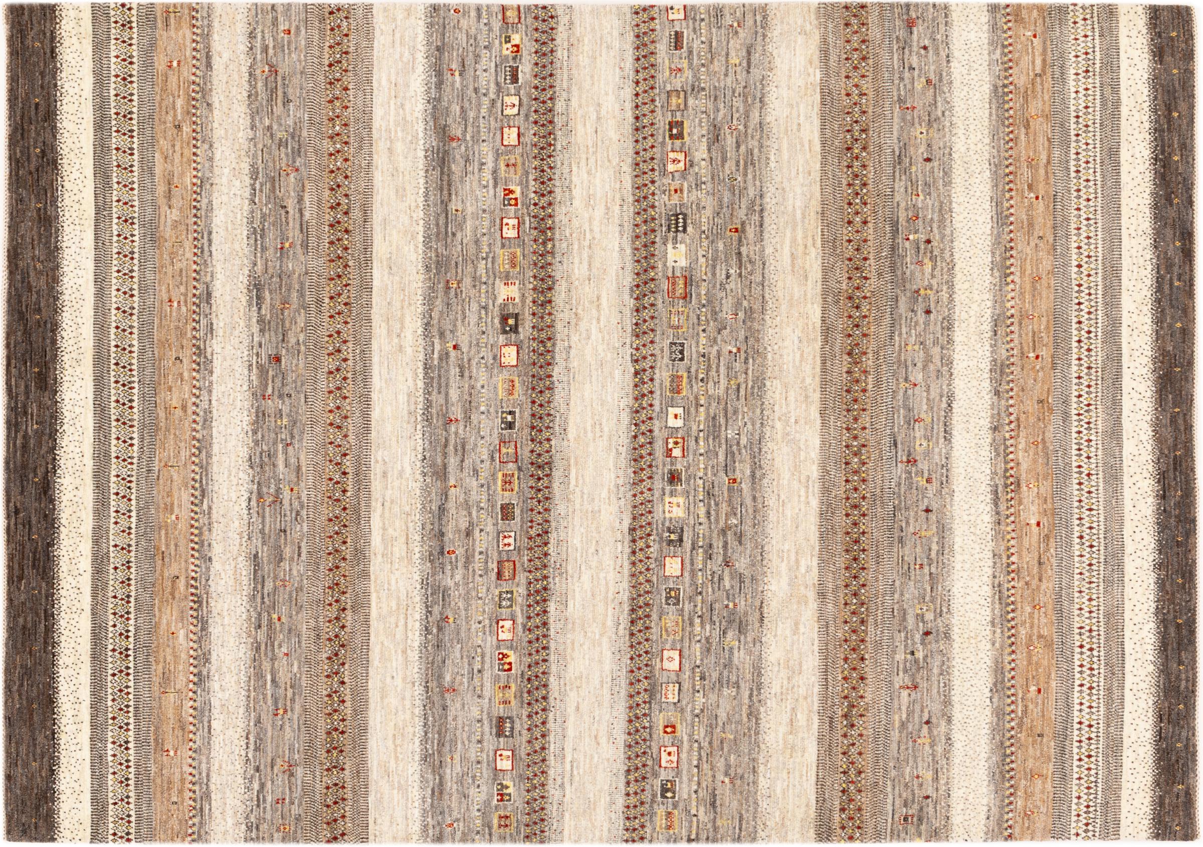 Este belo tapete é um Gabbeh persa e por isso pertence aos tapetes Gabbeh da mais alta qualidade. Os tapetes são atados por nómadas ou semi-nómadas no Irão, de acordo com o artesanato tradicional. Os simples motivos e padrões são, na sua maioria, inspirados pelo ambiente imediato dos nómadas. Por exemplo, camelos, árvores ou arbustos podem ser encontrados nos tapetes tradicionais. Os tapetes Gabbeh persa são feitos de lã proveniente de rebanhos de ovinos criados localmente. Por conseguinte, a lã ainda é, na sua maioria, fiada à mão. Assim, cada um destes tapetes orientais corporiza um carácter único de cultura secular.