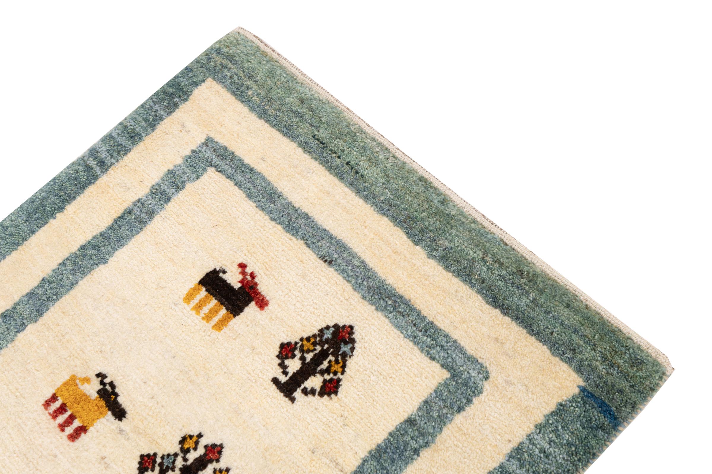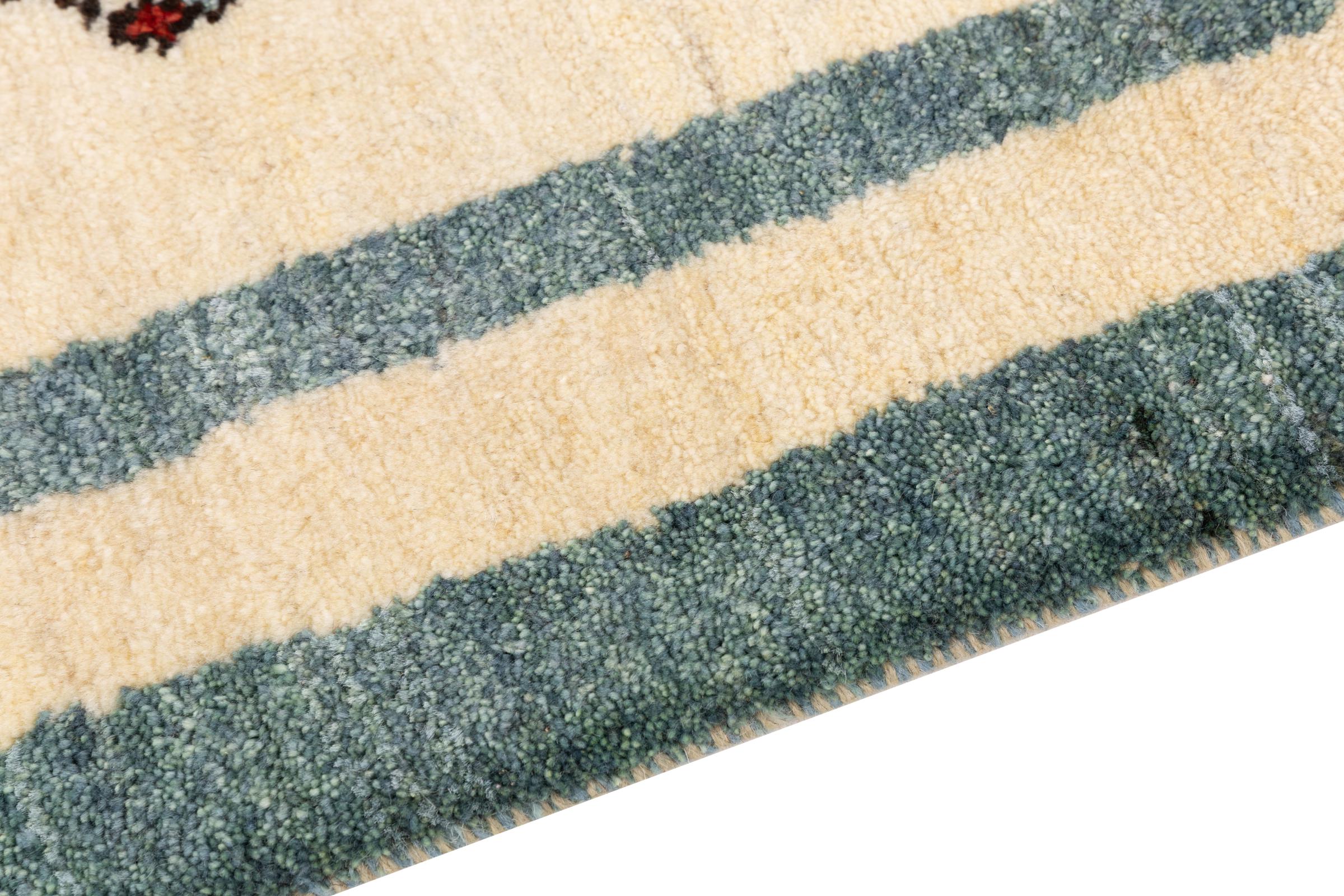 Este Gabbeh persa feito à mão conquista-o imediatamente pela sua elevada qualidade e pelo seu pelo muito robusto. Foi feito à mão por nómadas Ghashghai na província de Fars, no sul da Pérsia, a partir da melhor lã de ovelha local. São utilizados corantes vegetais naturais para tingir a lã. Este facto torna-o um complemento muito valioso para o quarto de uma criança. Este Gabbeh persa representa a classe mais elevada dos tapetes Gabbeh.