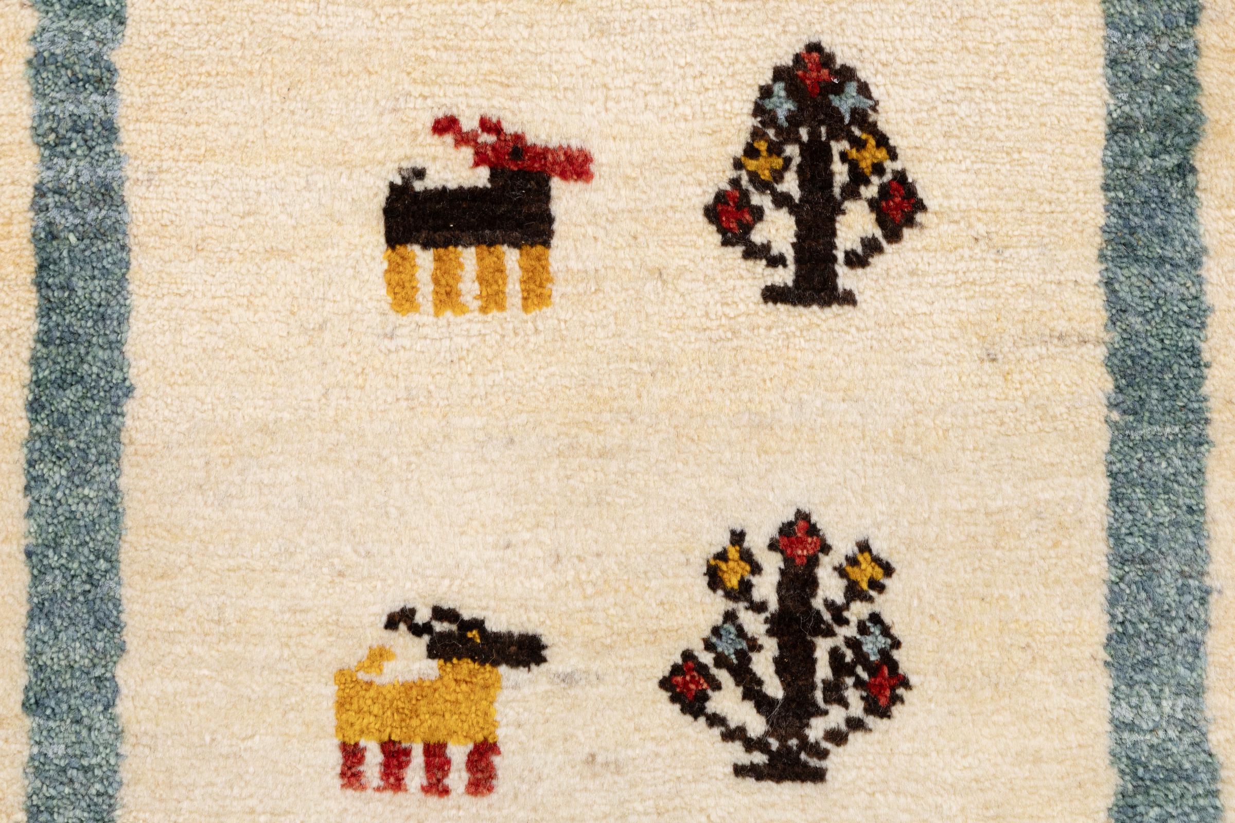 Este belo tapete é um Gabbeh persa e por isso pertence aos tapetes Gabbeh da mais alta qualidade. Os tapetes são atados por nómadas ou semi-nómadas no Irão, de acordo com o artesanato tradicional. Os simples motivos e padrões são, na sua maioria, inspirados pelo ambiente imediato dos nómadas. Por exemplo, camelos, árvores ou arbustos podem ser encontrados nos tapetes tradicionais. Os tapetes Gabbeh persa são feitos de lã proveniente de rebanhos de ovinos criados localmente. Por conseguinte, a lã ainda é, na sua maioria, fiada à mão. Assim, cada um destes tapetes orientais corporiza um carácter único de cultura secular.