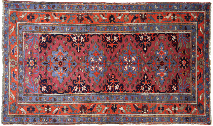 Este tapete é originário da Rússia e foi atado de acordo com o artesanato tradicional antigo. Foi utilizada lã de alta qualidade de ovelhas criadas localmente. O tapete tem padrões e ornamentos tipicamente russos que fazem lembrar o Tsardom.